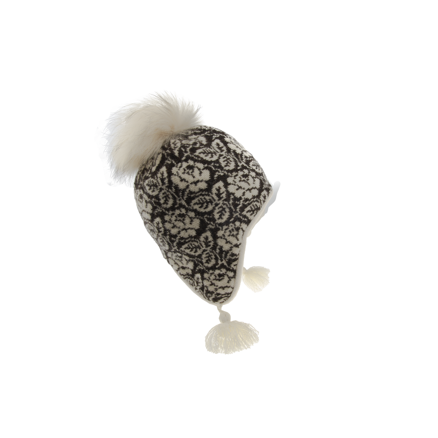 Čepice hnědé barvy a nadčasového stylu s romantickým motivem bílých květů bude ozdobou každého zimního outfitu. Módní prvek v podobě bílé kožešinové bambule dodává čepici na eleganci a originalitě. Čepice se skvěle doplňuje se sportovně elegantním outfitem. Čepice je vybavena fleecovou podšívkou. Výrobek obsahuje netextilní části živočišného původu.