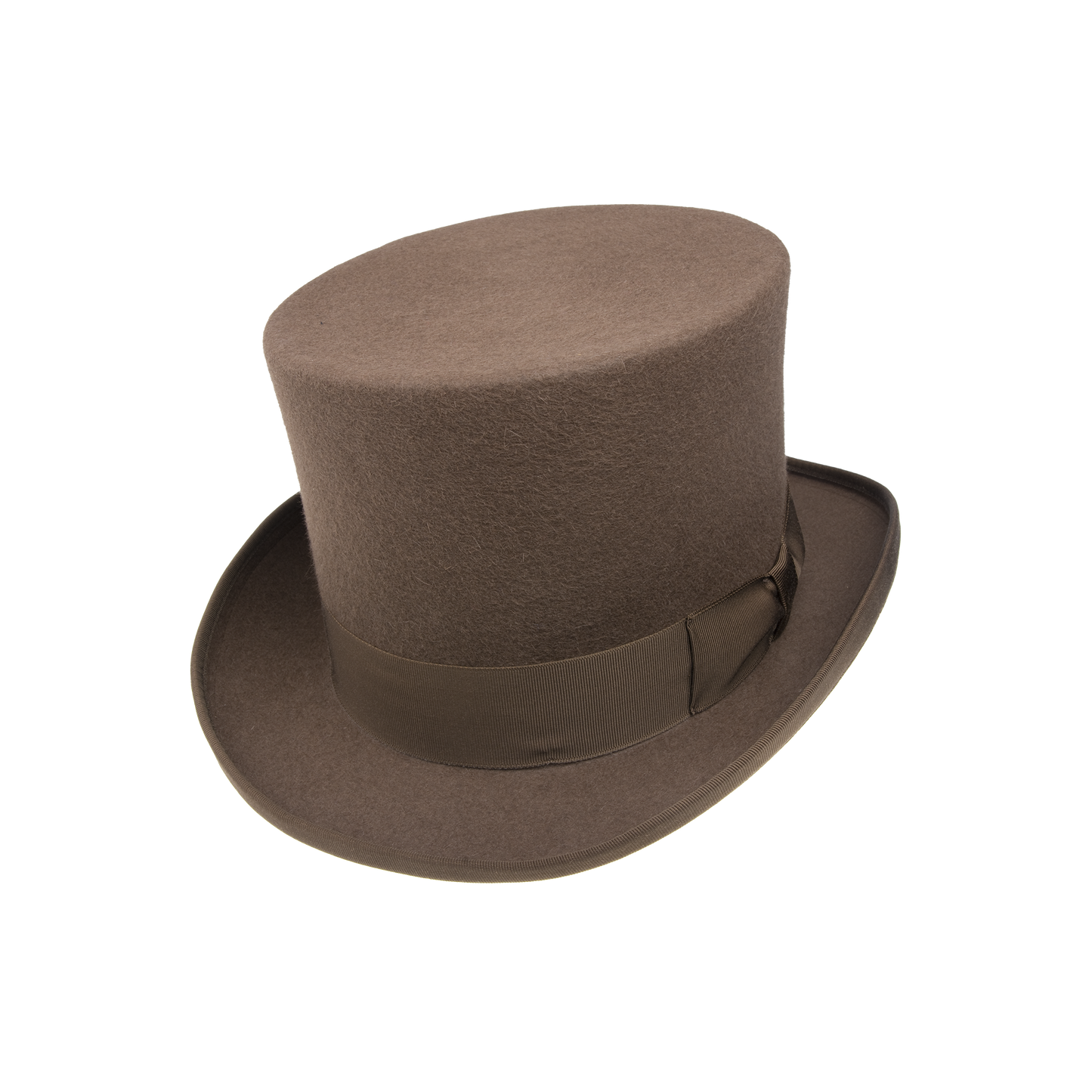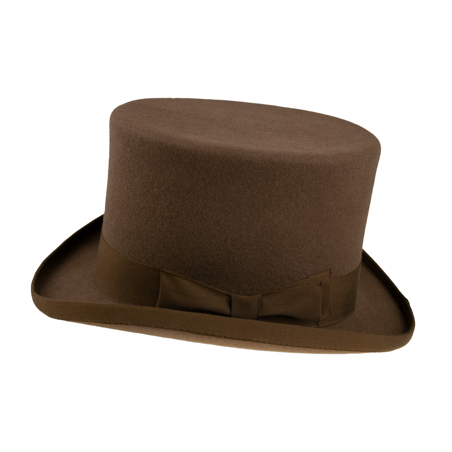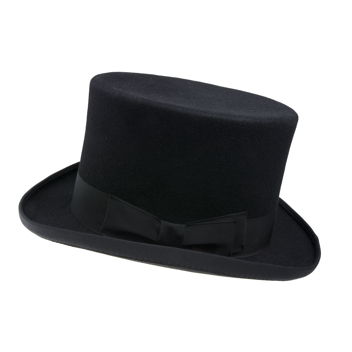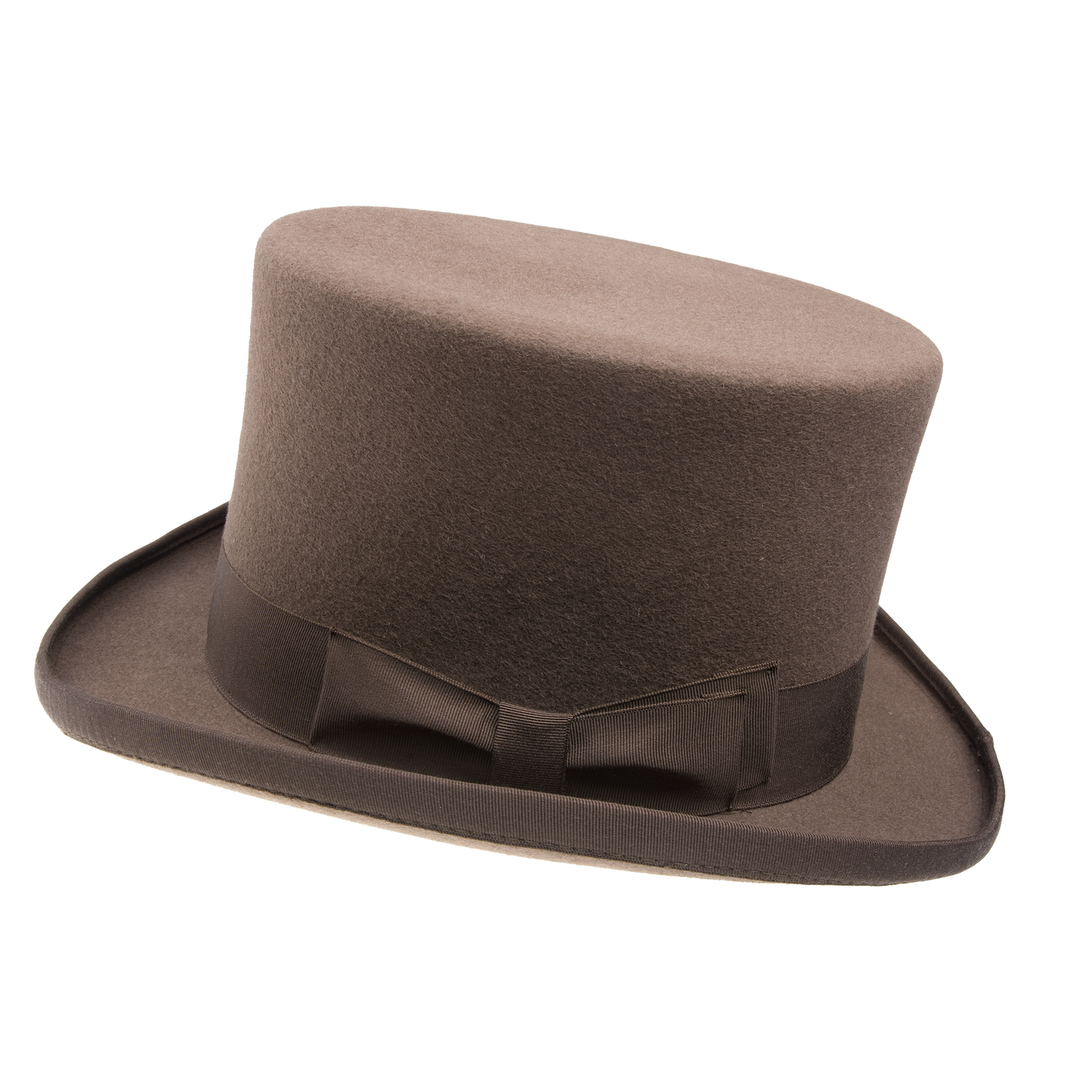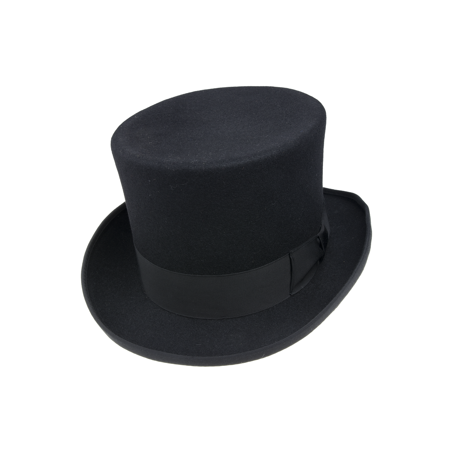 English top hat with the leather sweatband and lining height 14 cm. Contains non-textile parts of animal origin.