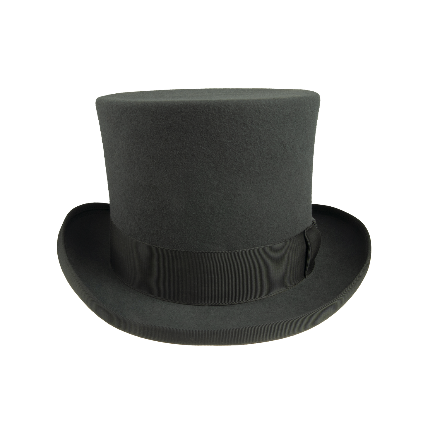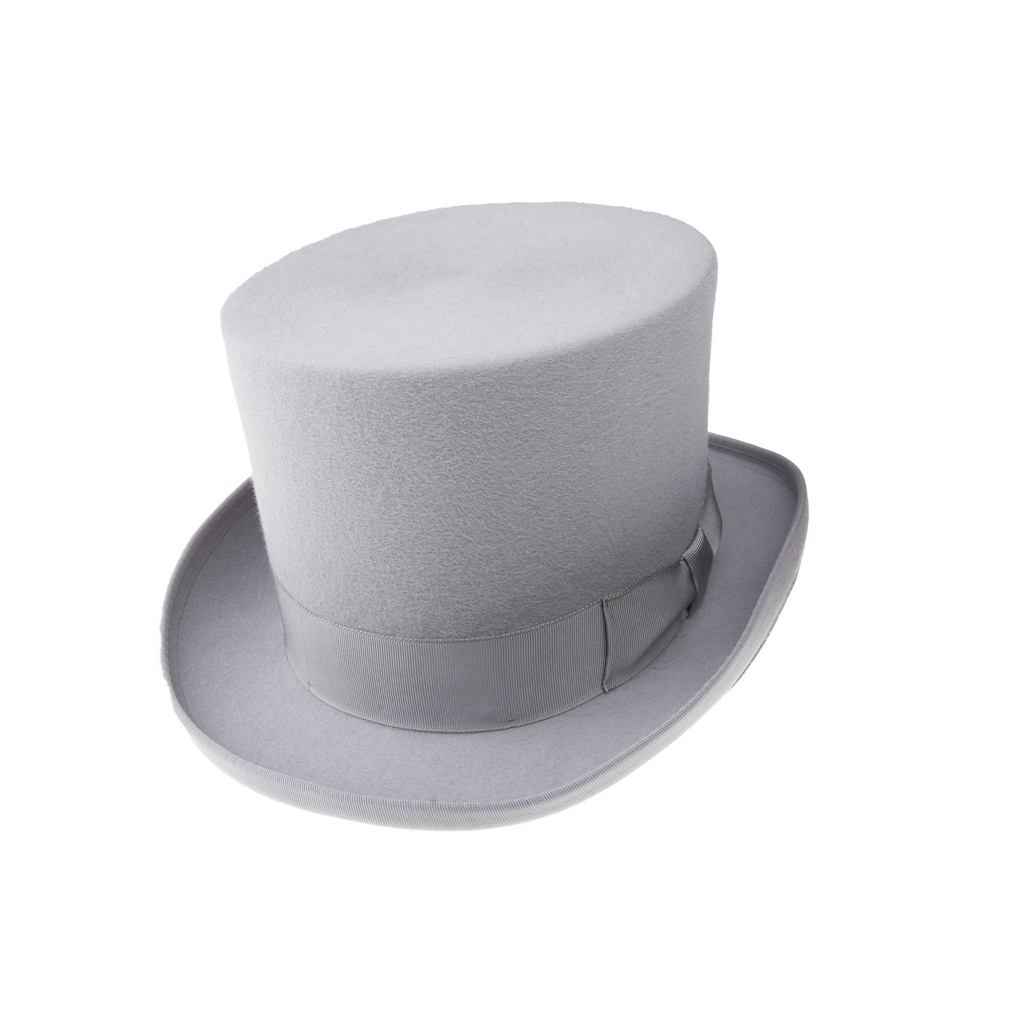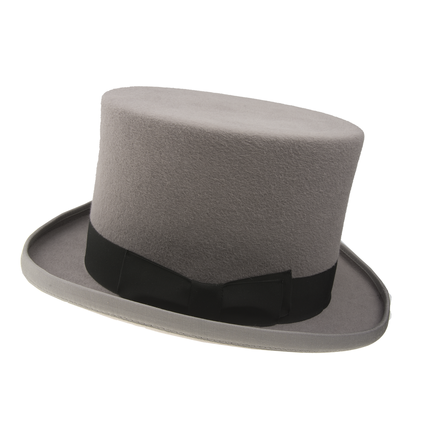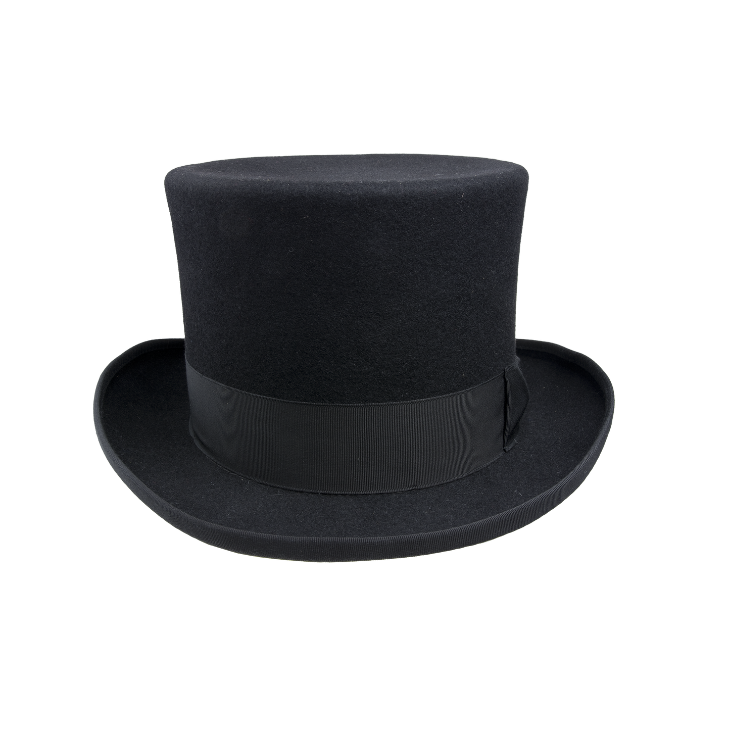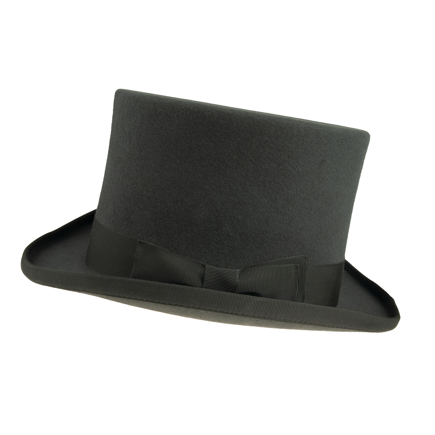 English top hat with the leather sweatband and lining height 14 cm. Contains non-textile parts of animal origin.
