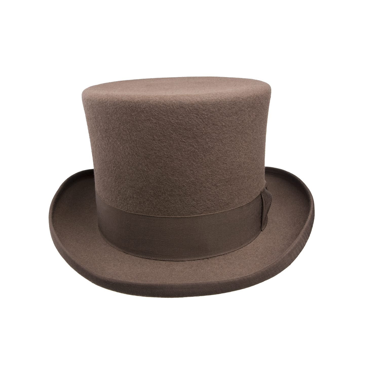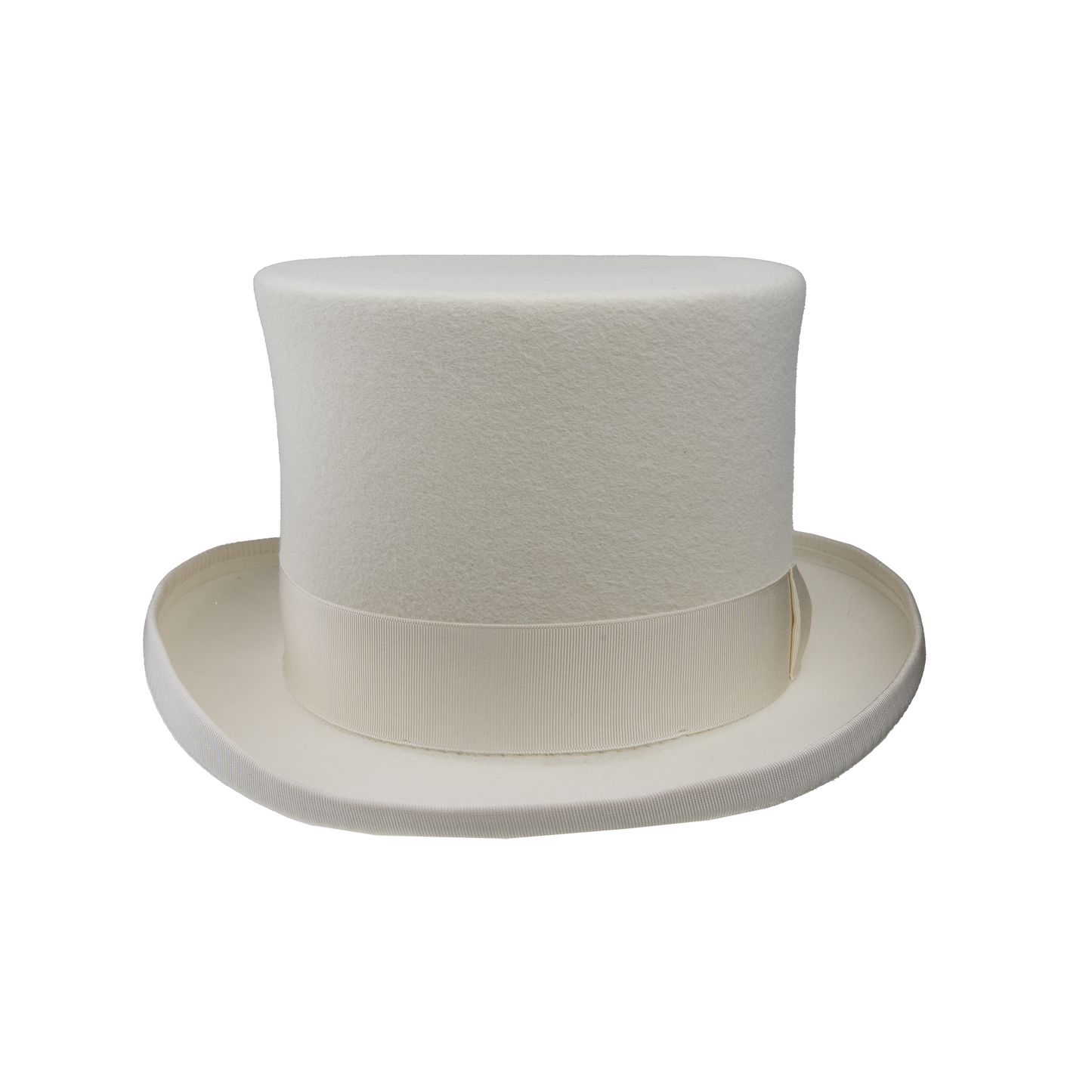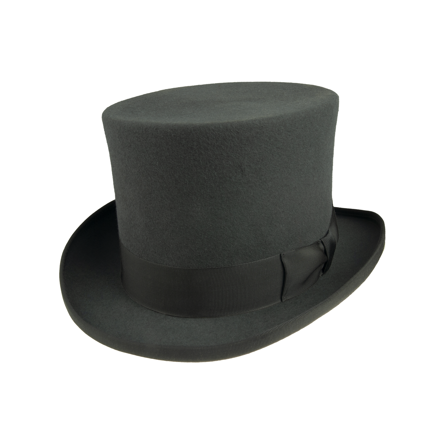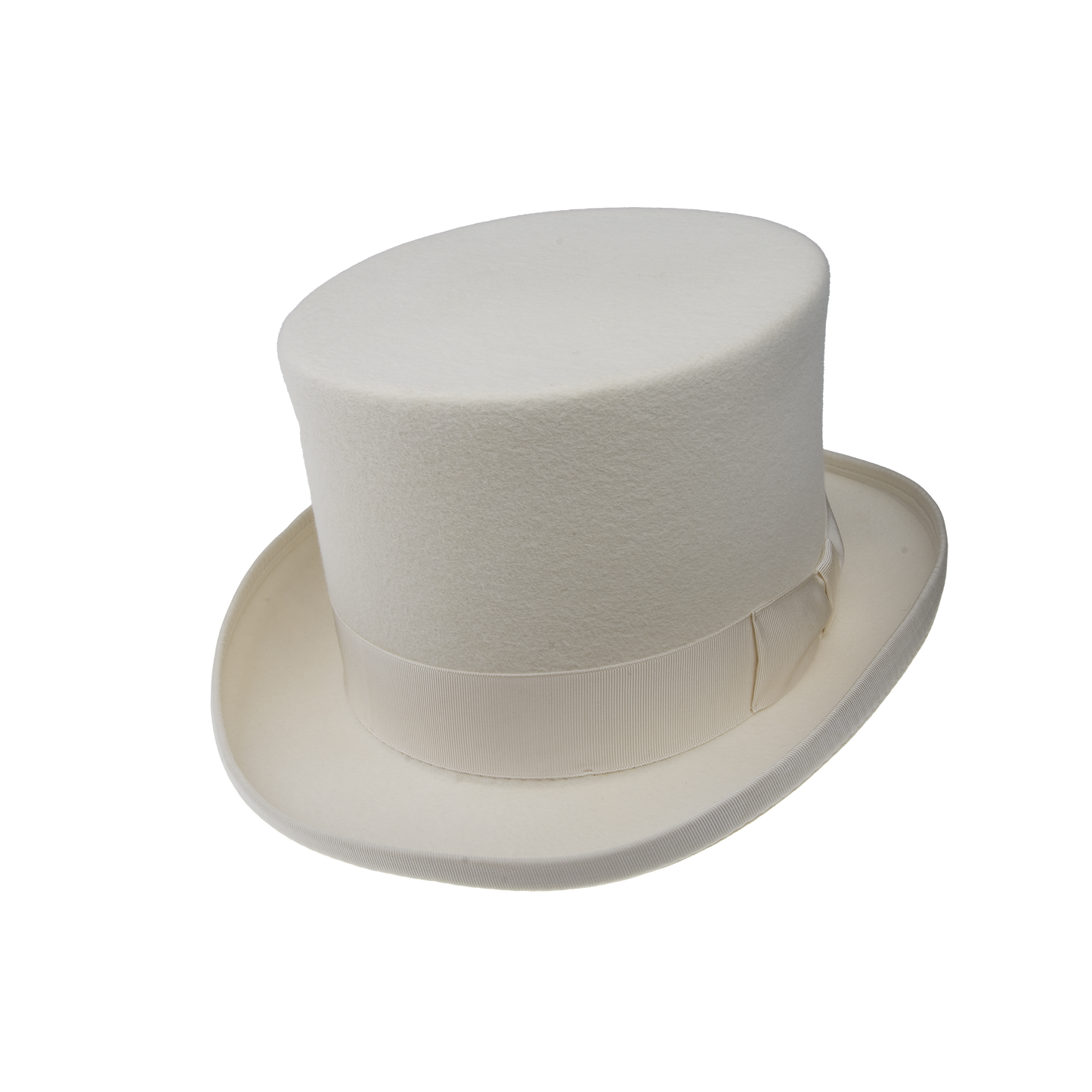 English top hat with the leather sweatband and lining height 14 cm. Contains non-textile parts of animal origin.