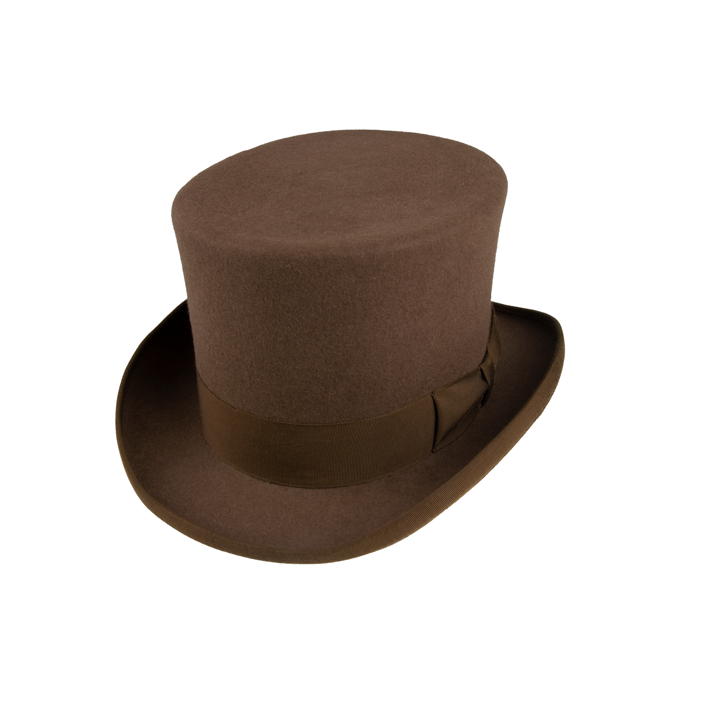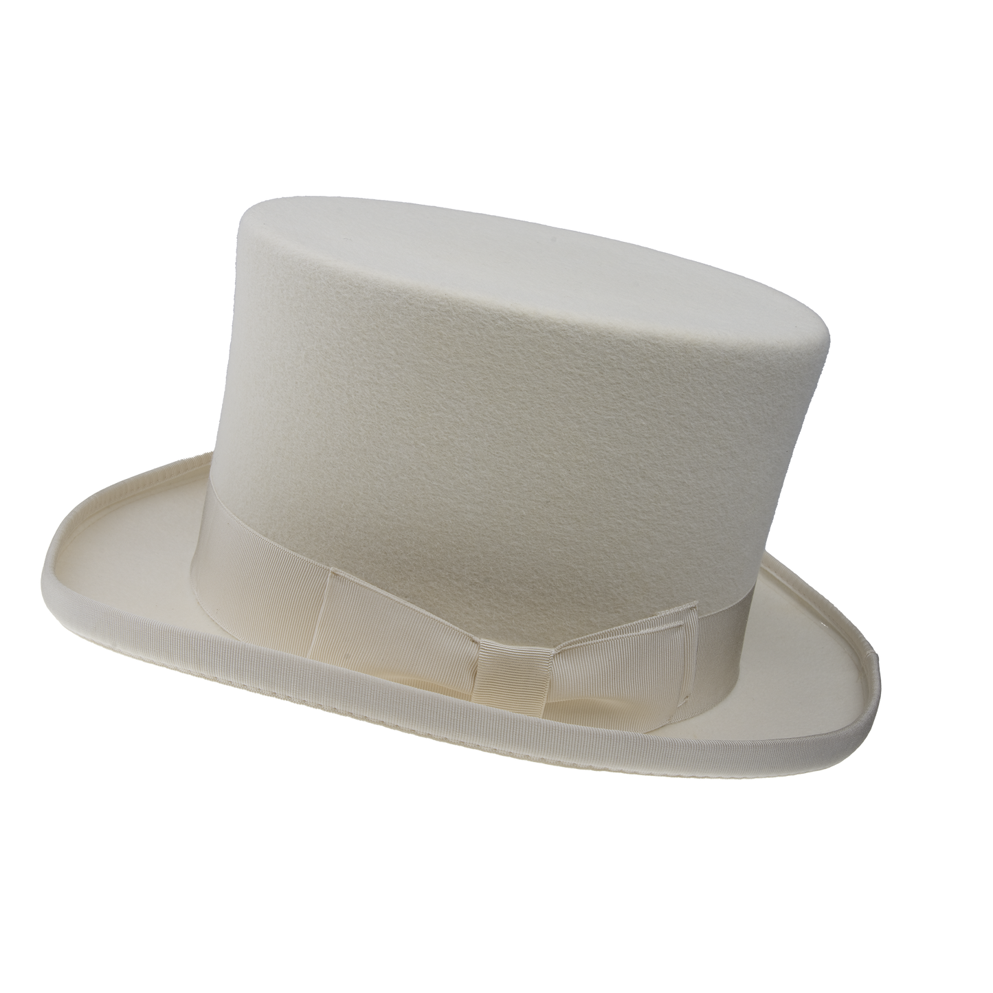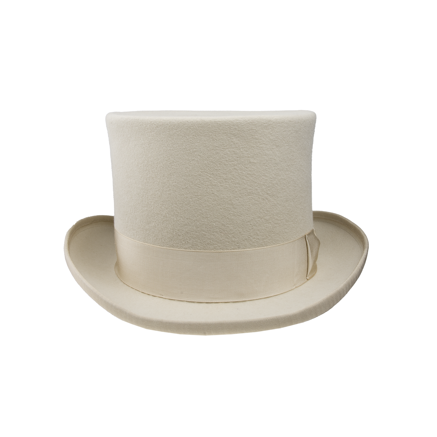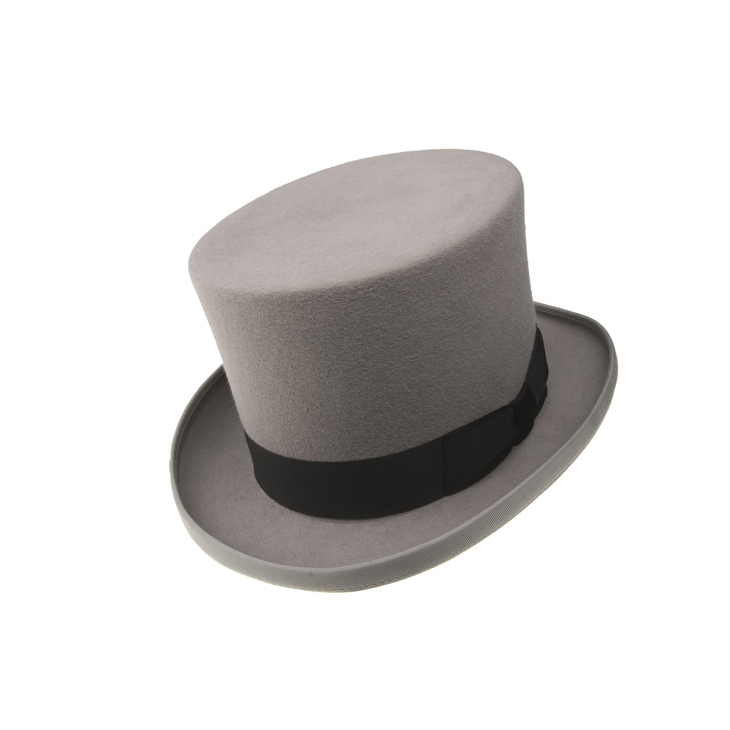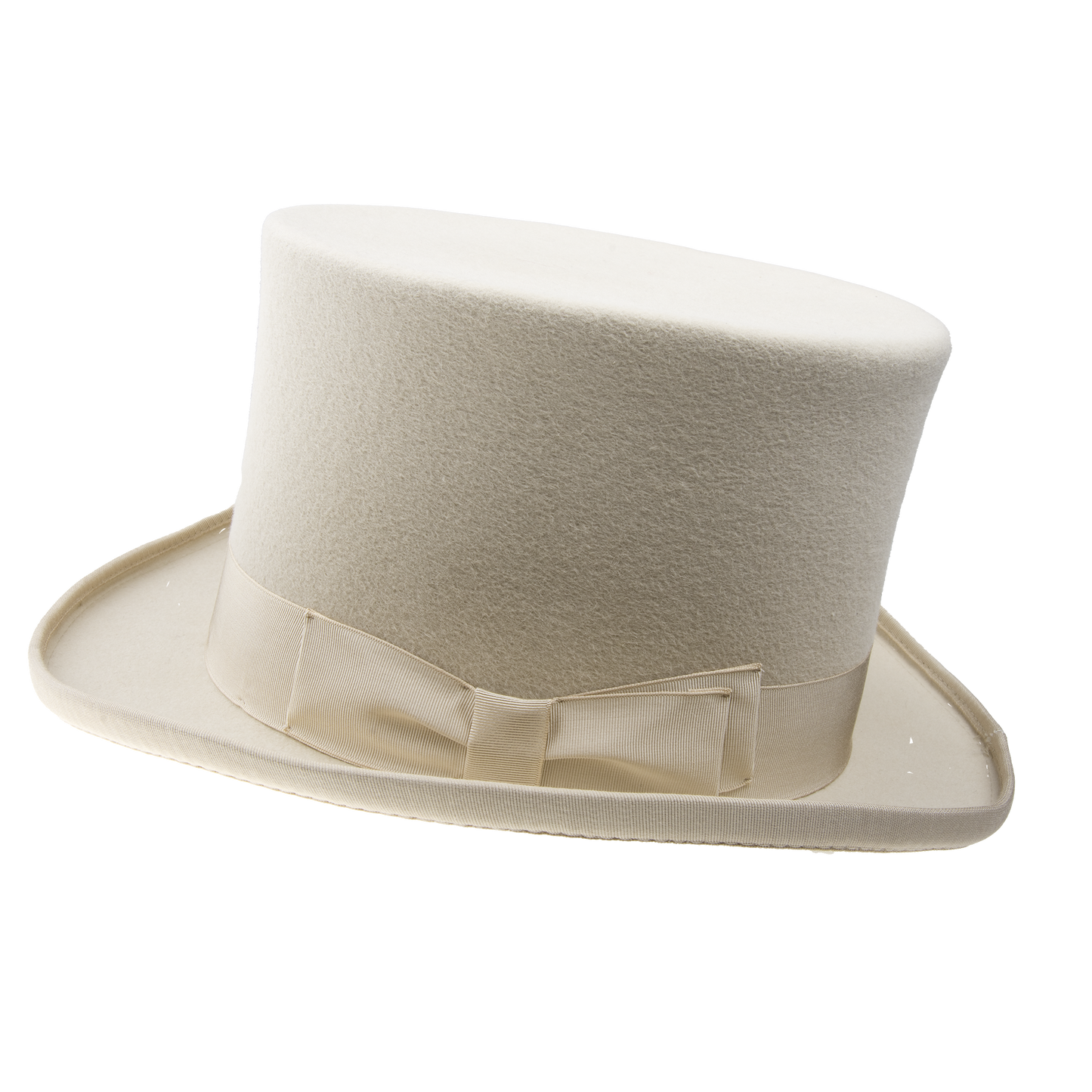 English top hat with the leather sweatband and lining height 14 cm. Contains non-textile parts of animal origin.