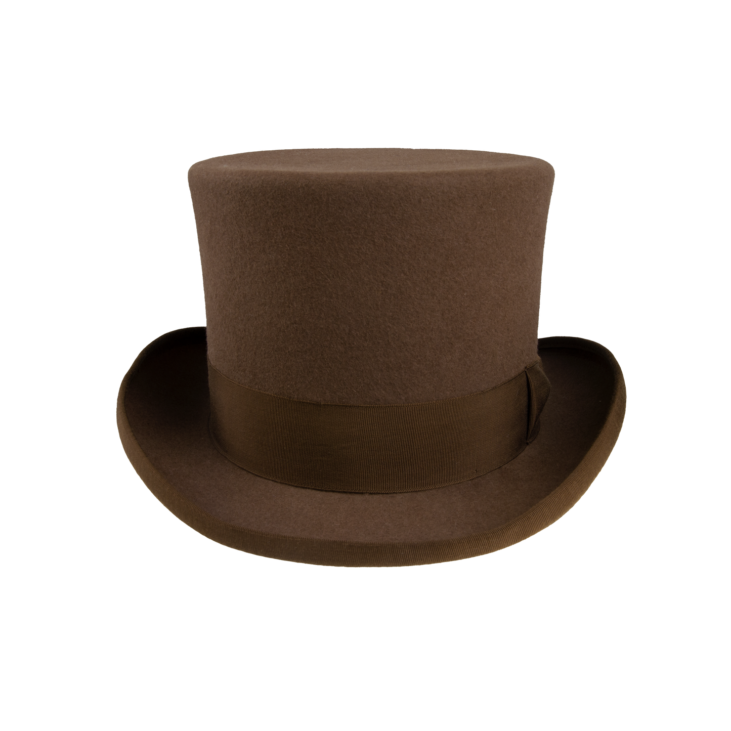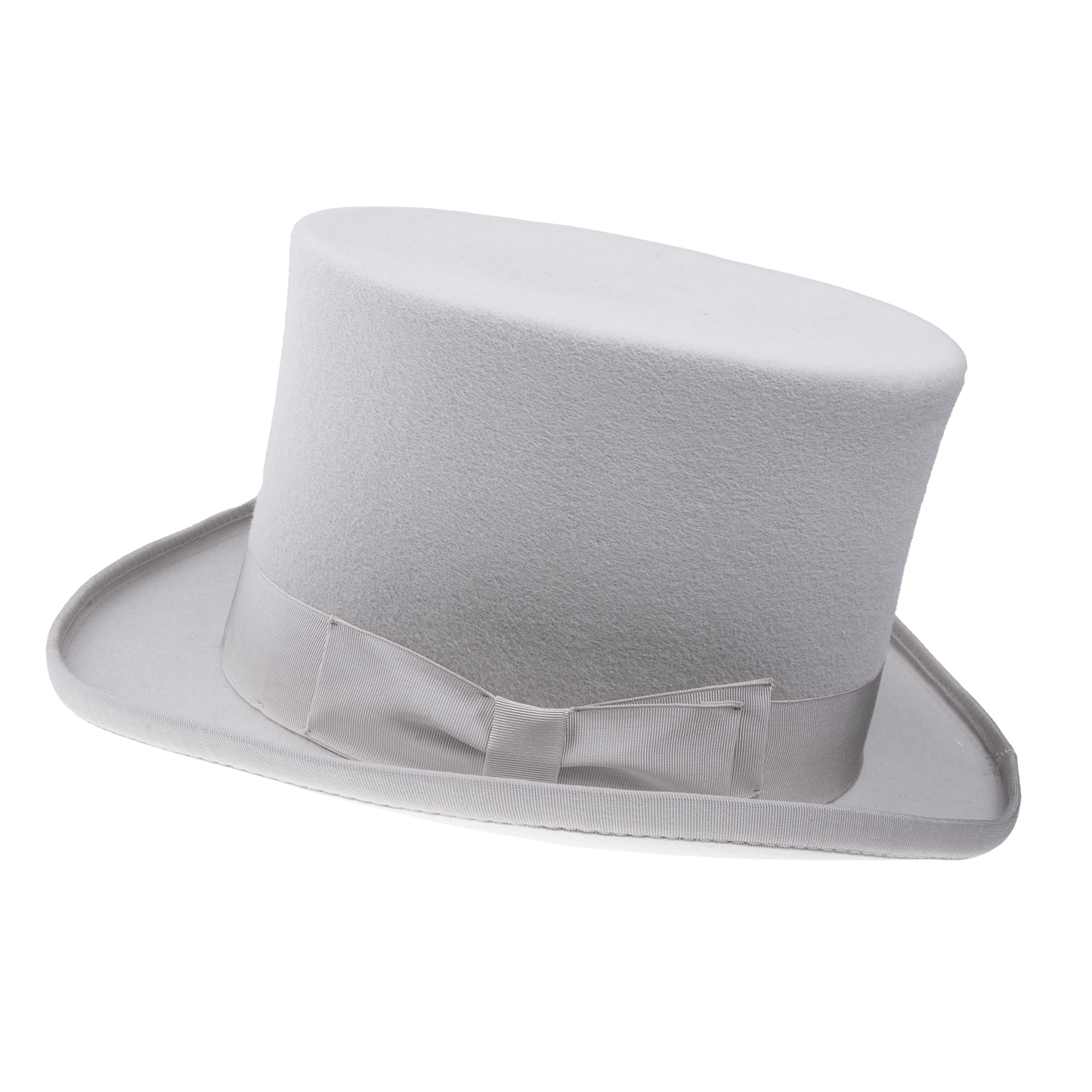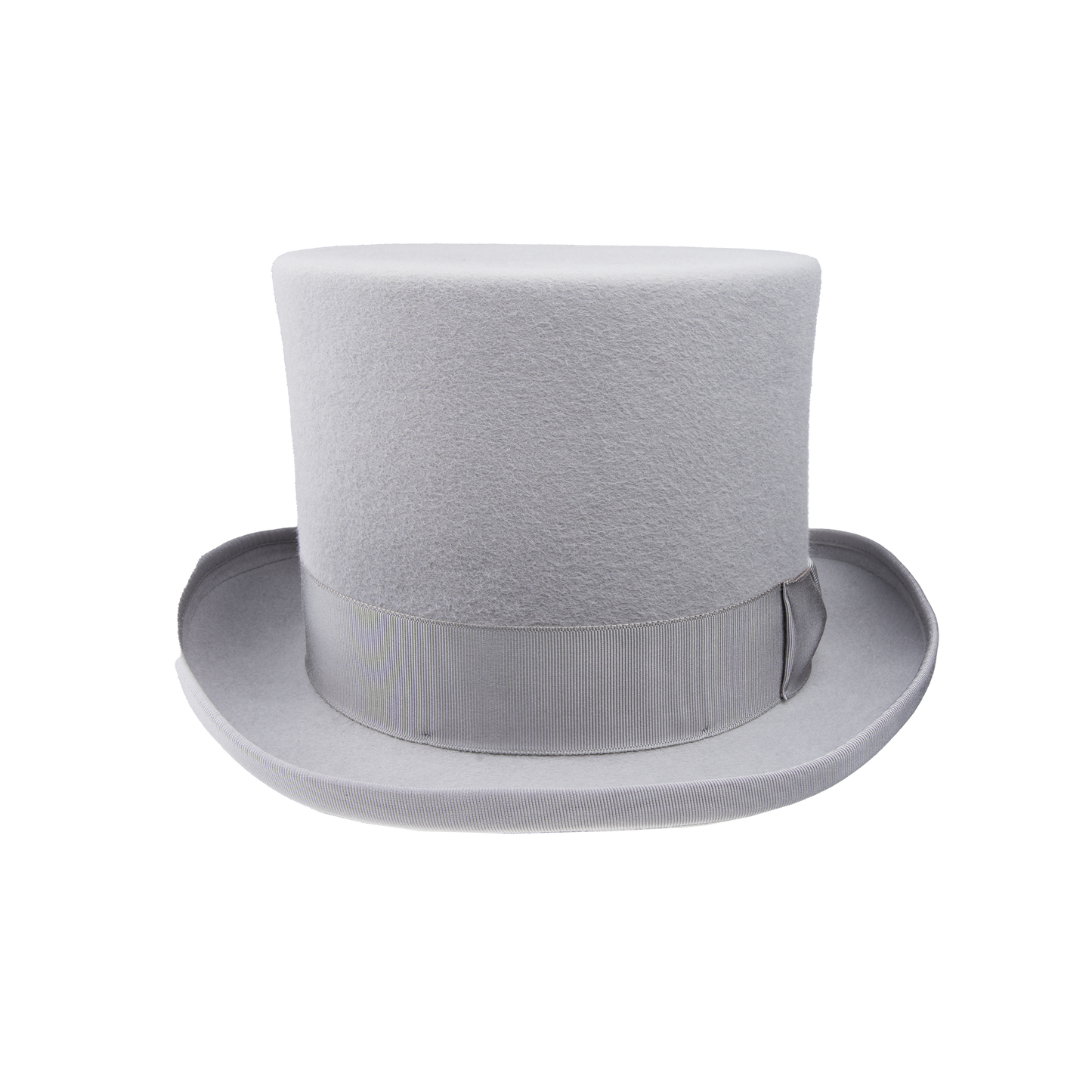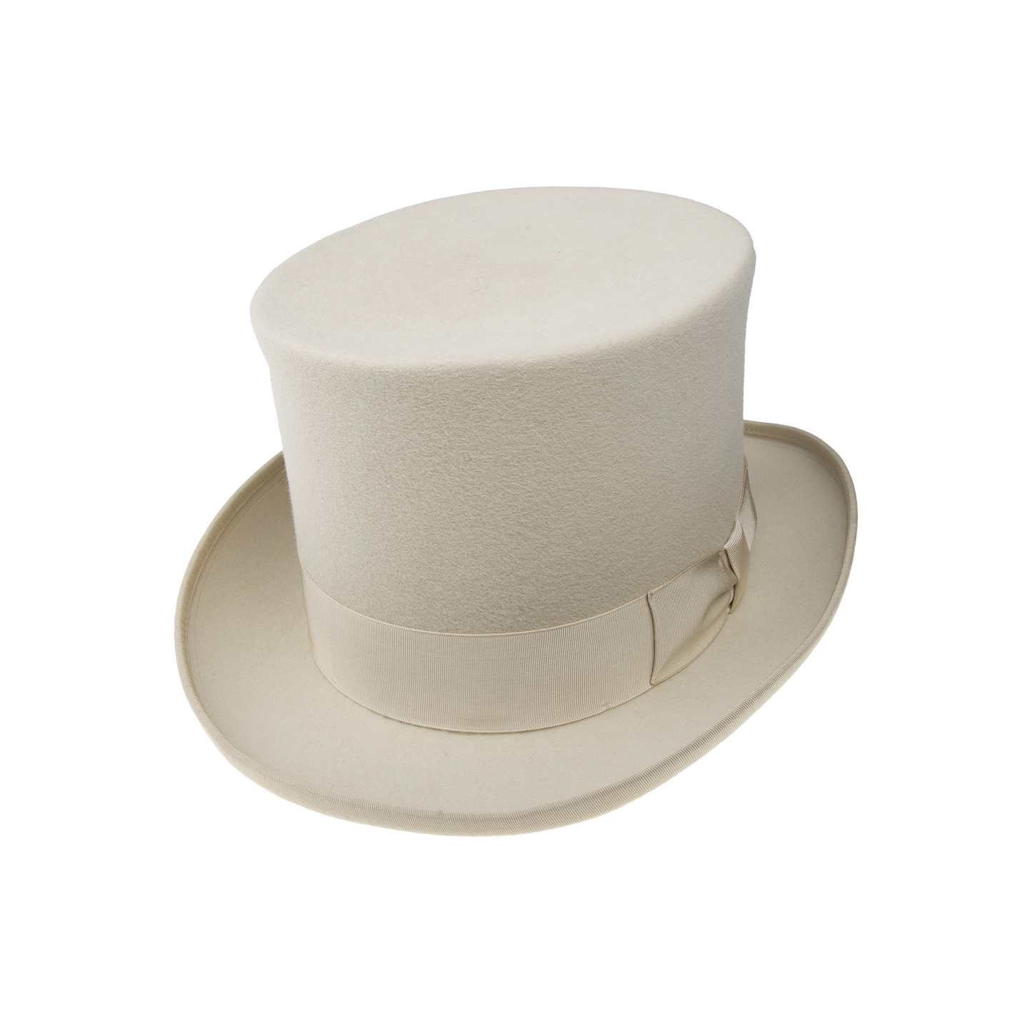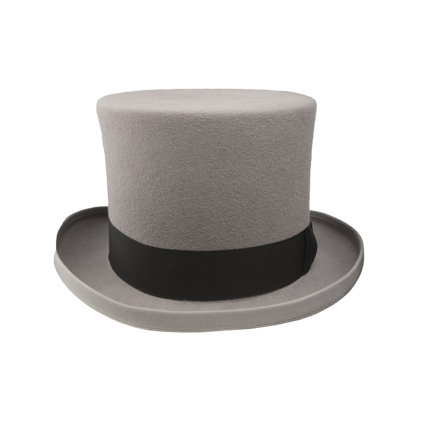 English top hat with the leather sweatband and lining height 14 cm. Contains non-textile parts of animal origin.
