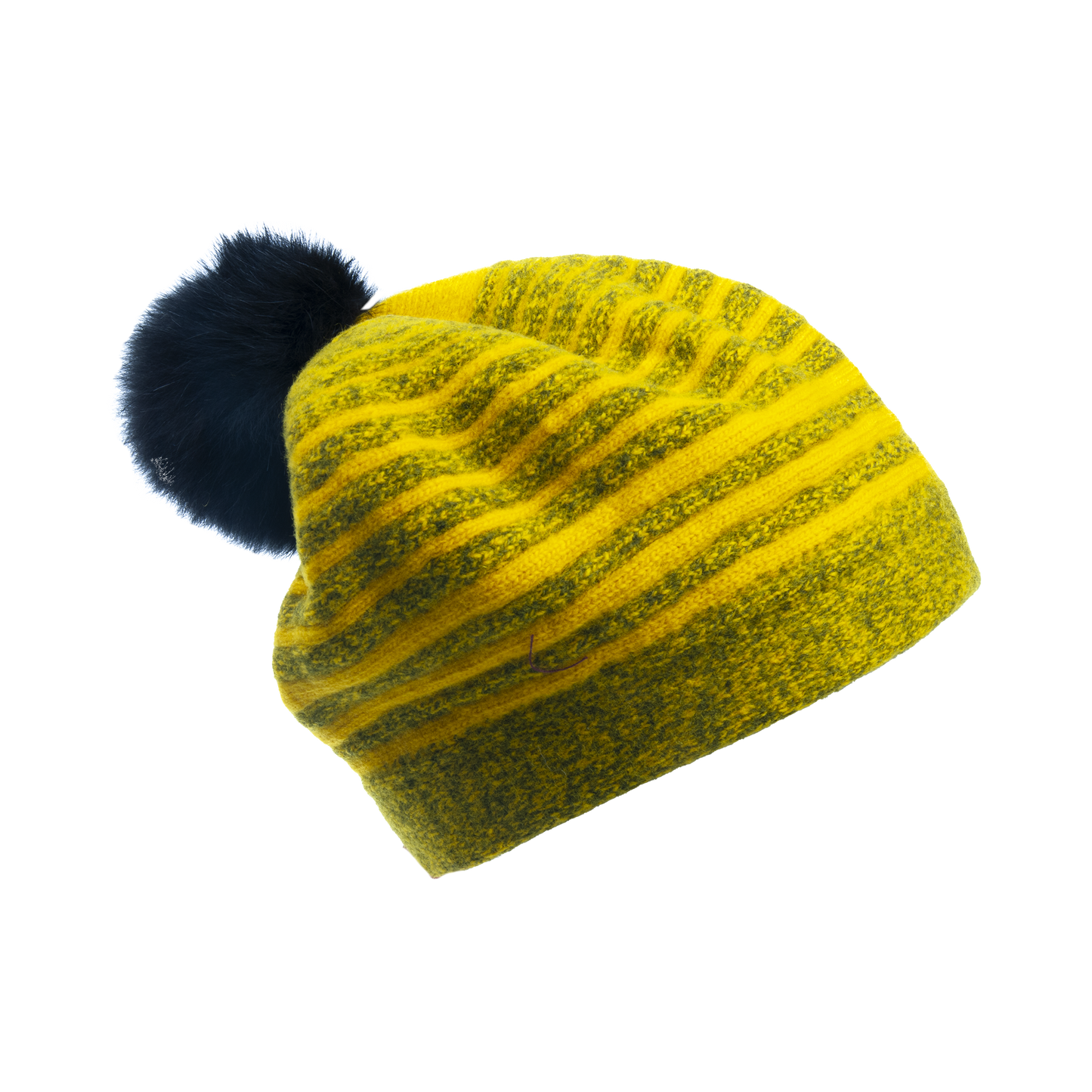 Women who prefer strong colours quality design and originality will surely appreciate this winter beret with its elegant fur pompon. Inspire your settings with its unmistakable style. It contains non-textile parts iof animal origin.
