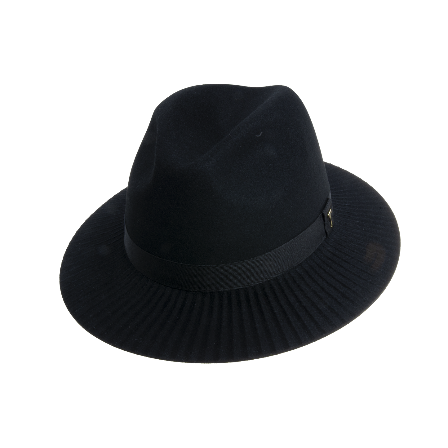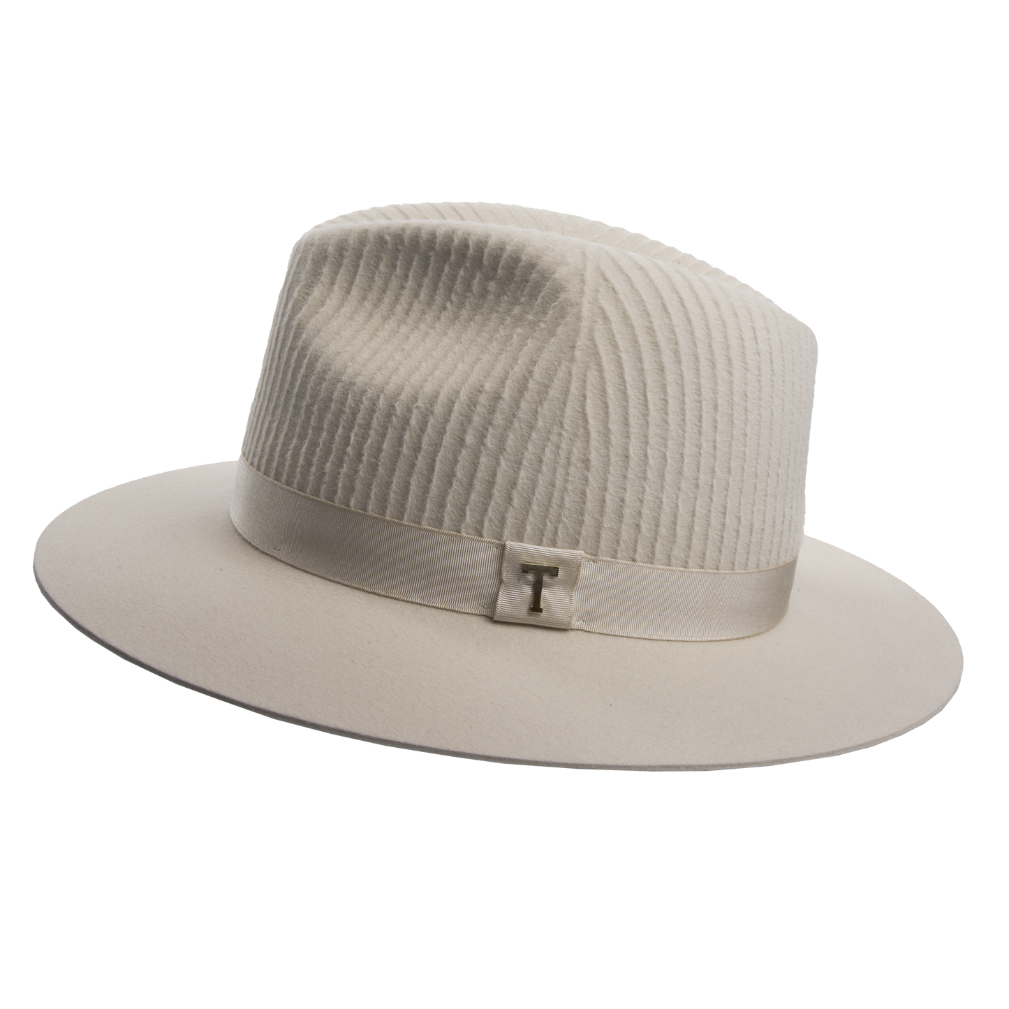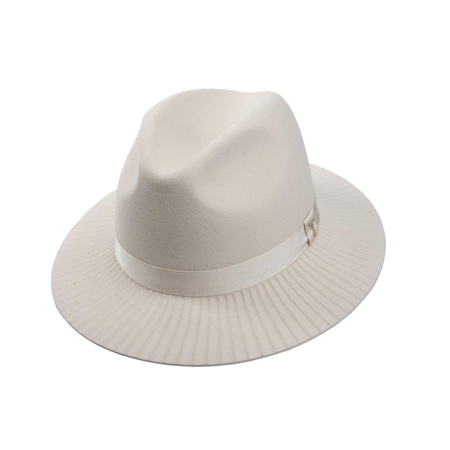 This classic Fedora with a medium wide brim (6,5 cm) is original thanks to the textured indentation. This finish makes the Fedora Esprite Vertical a unique model and slightly different from the black or cream hat.