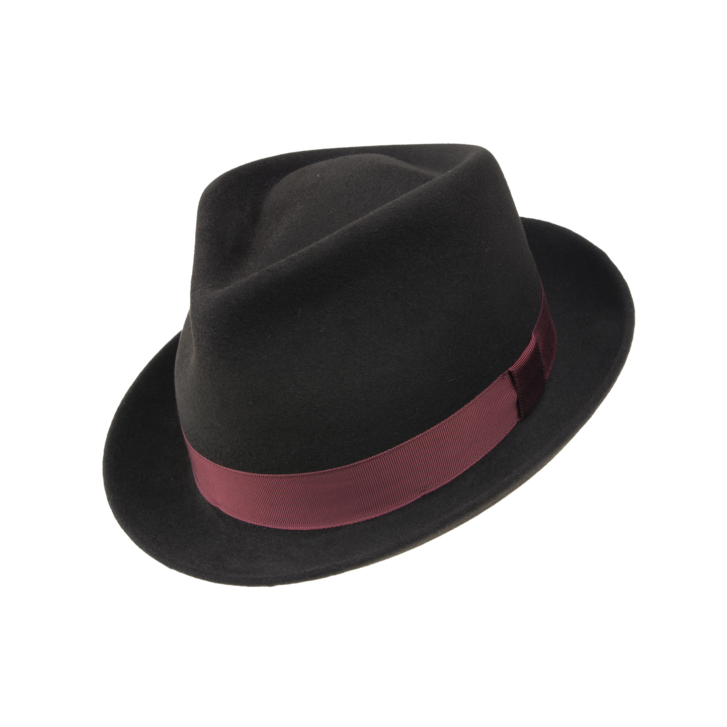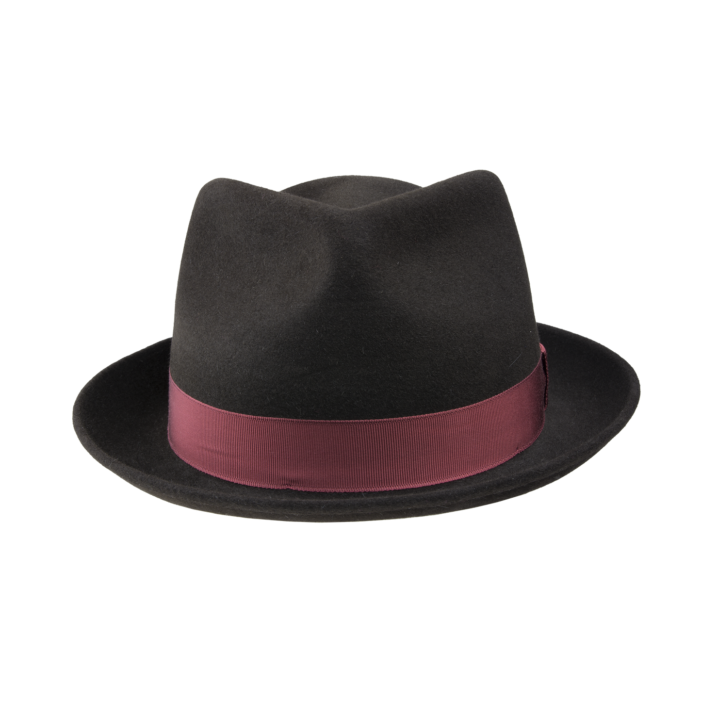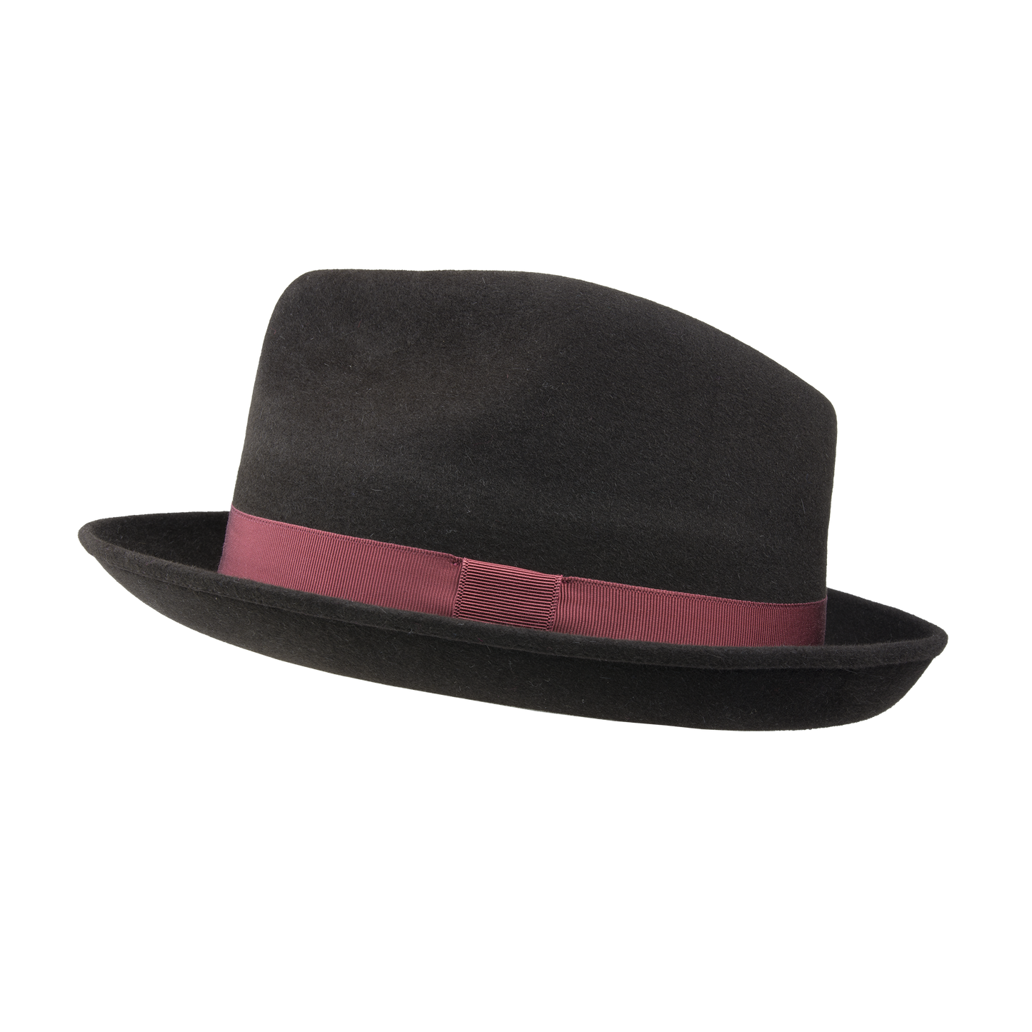 Felt hat with the fabric sweat band trimmed with the contrast ribbon. The width of the brim 4,5 cm.