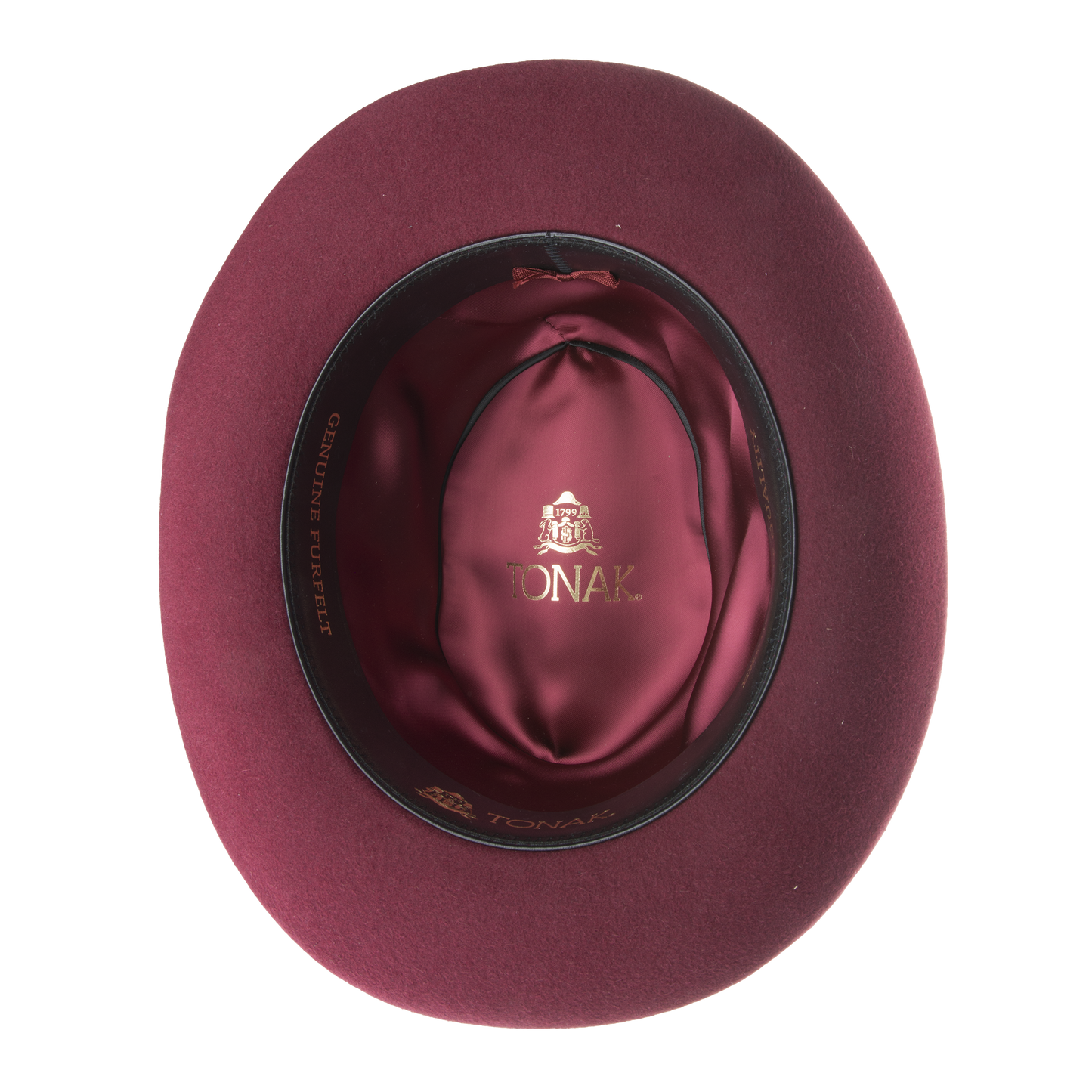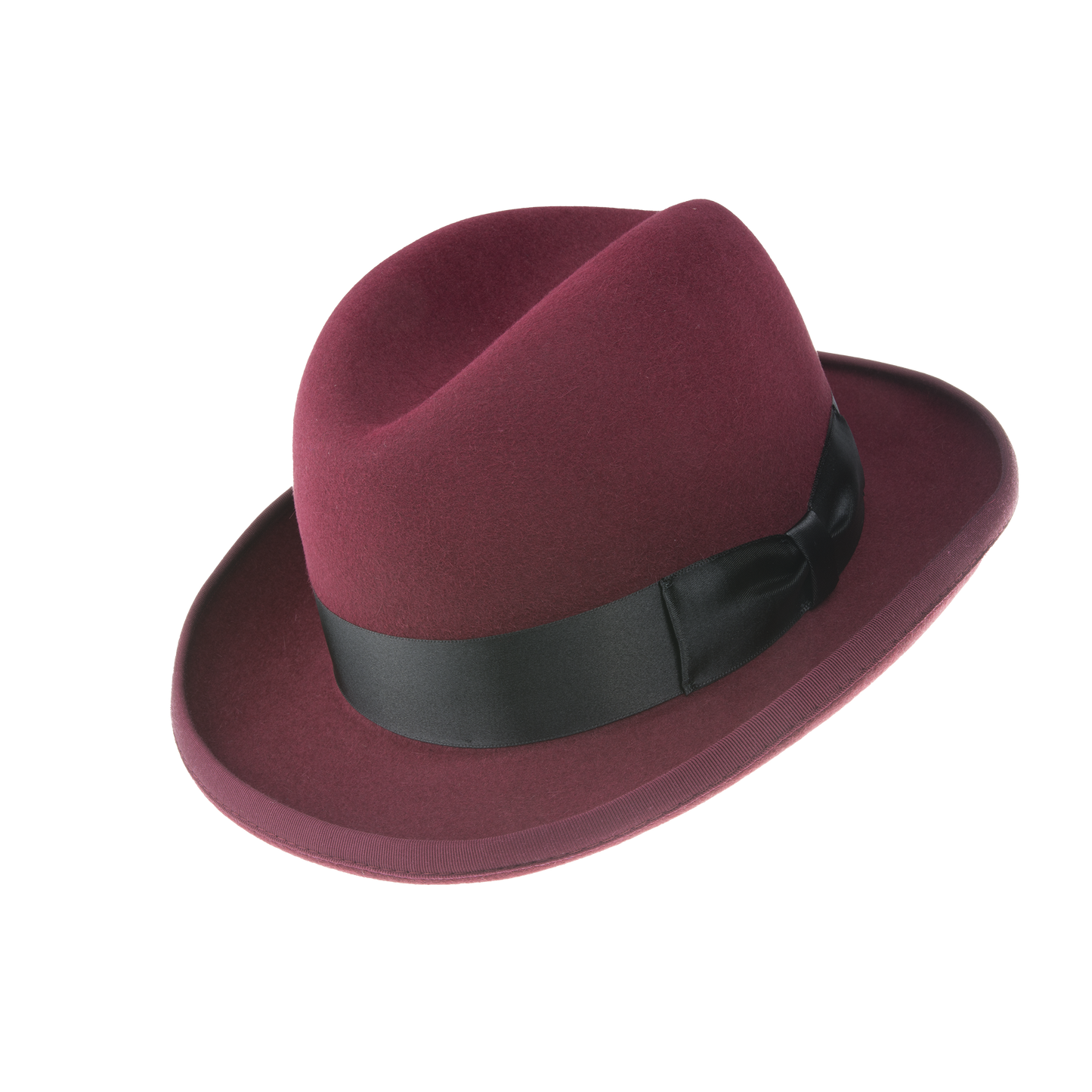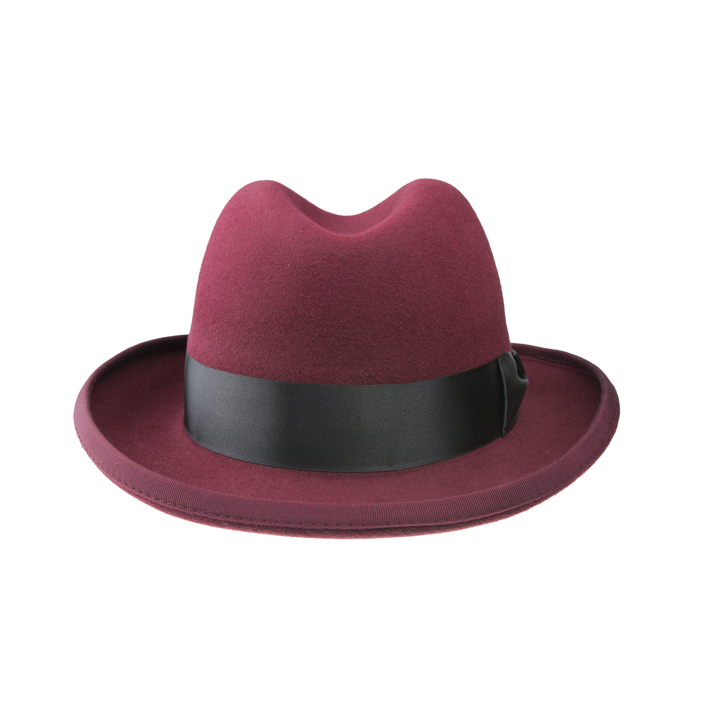 Luxury suede hat "homburg" wiht the leather sweat band and lining. It is trimmed with the satin ribbon.