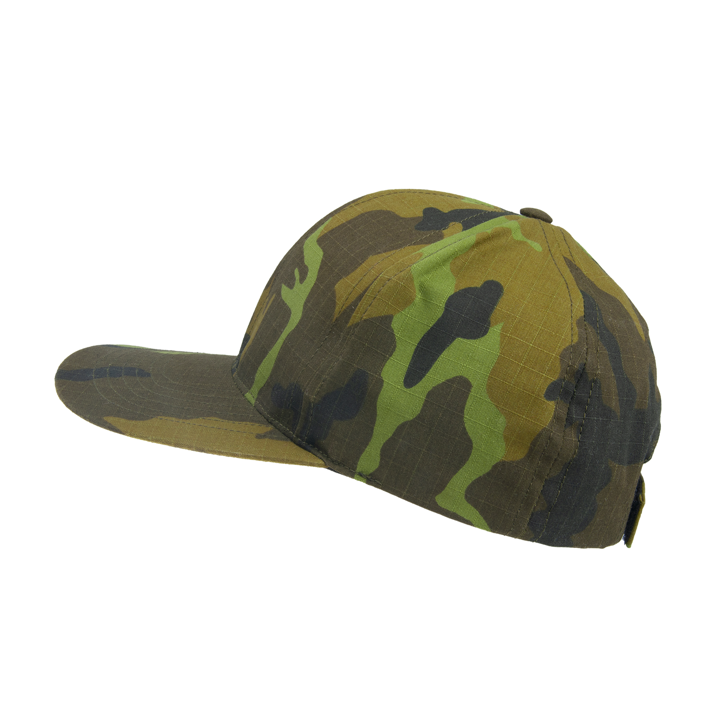 Camouflage cap without the lining with the cotton sweat band. The size is universal - it is set with the velcro on the back.