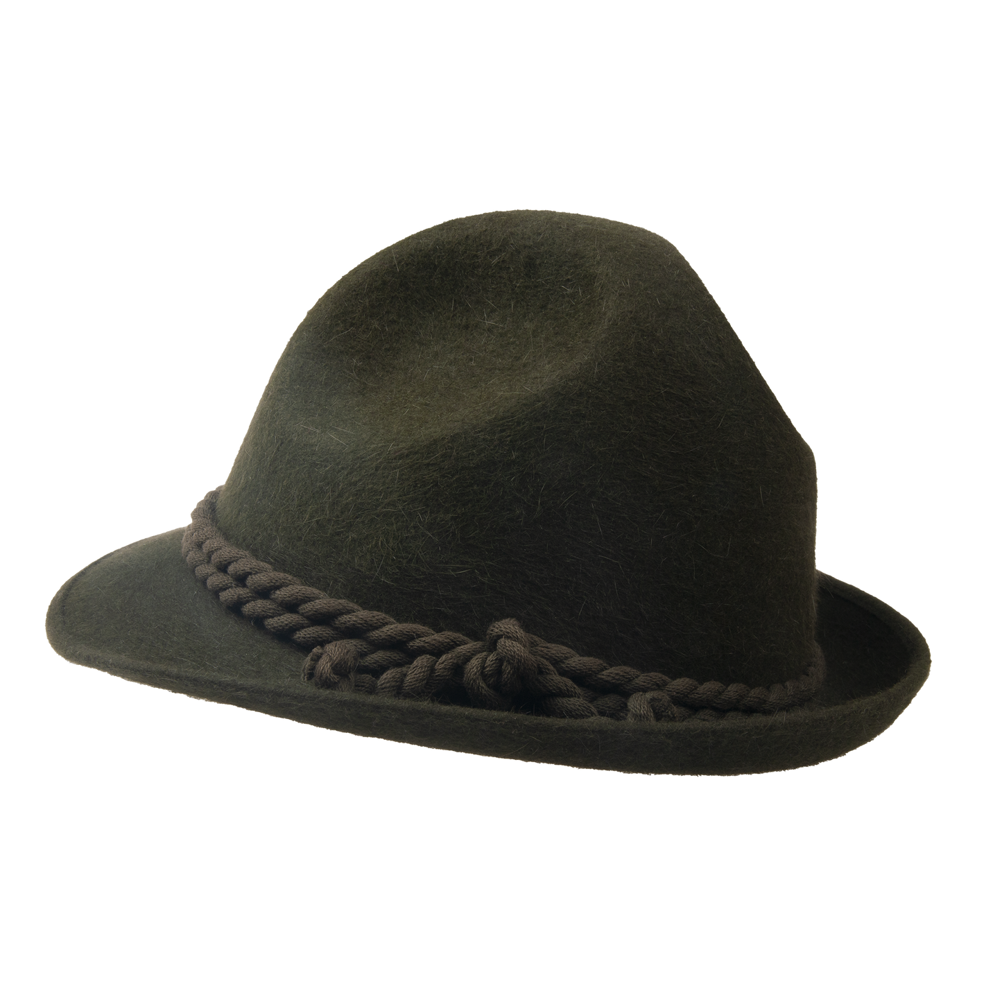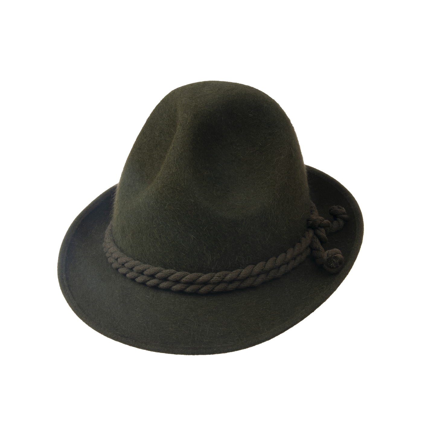 Hunting hat with three creases and stretch sweatband trimmed with the twisted cord.