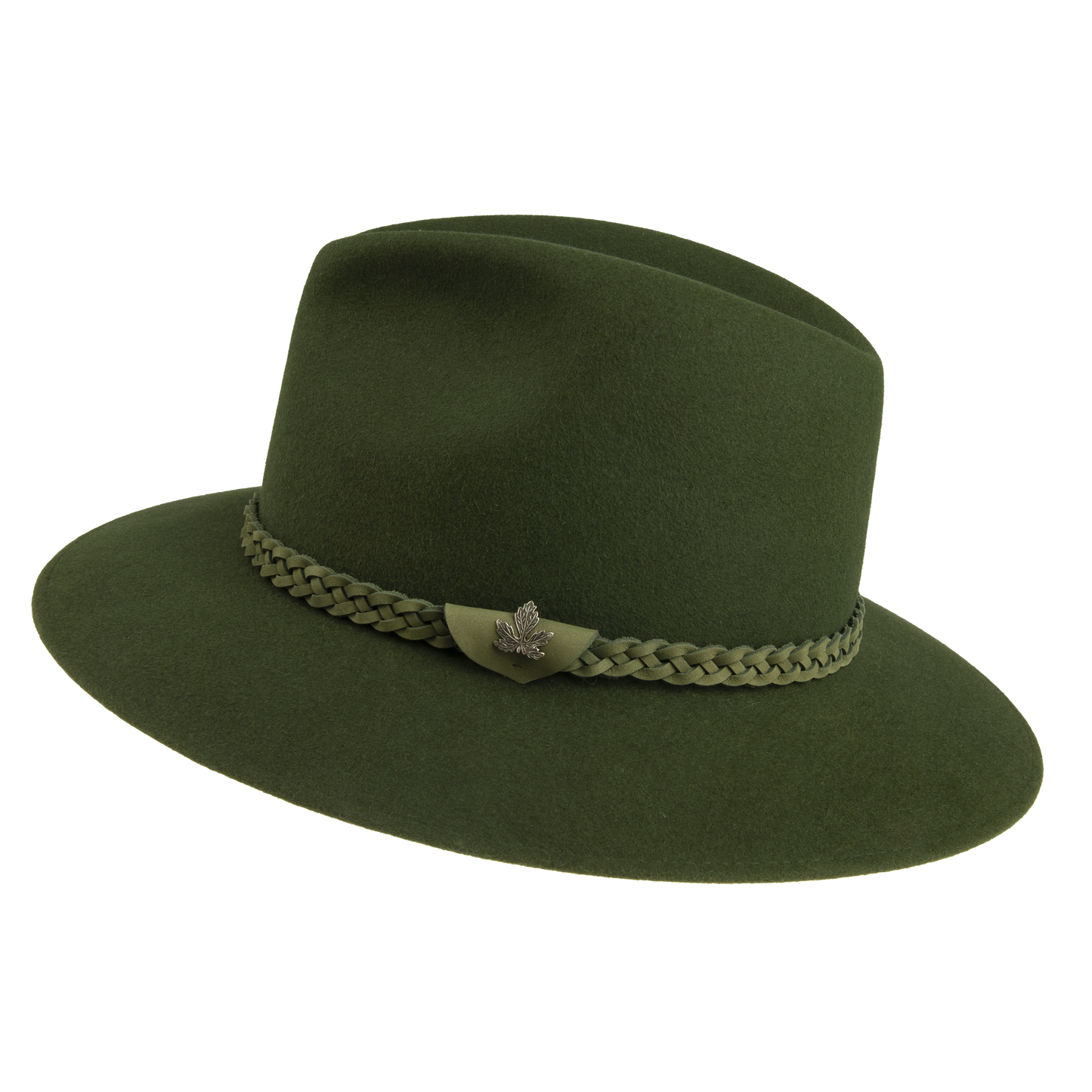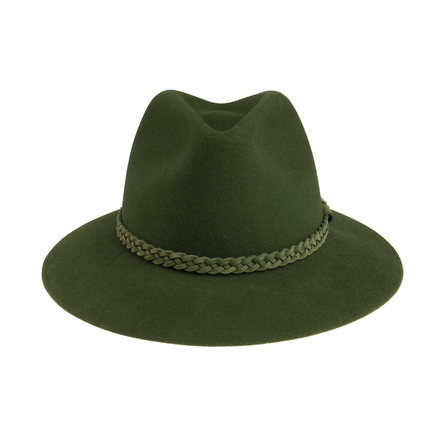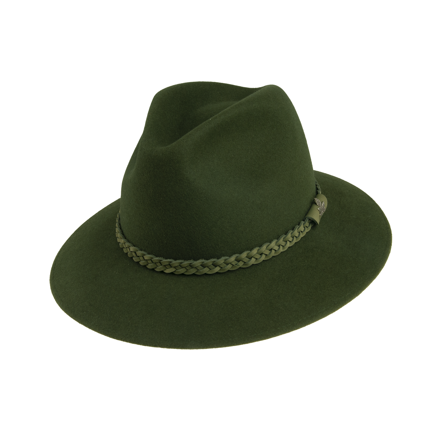 This hunting hat stands out with a braided band decorated with stylish jewelry. It combines a traditional look with a modern accent making it an ideal accessory for every hunter. The sweatband ensures comfortable wear even during long days in nature.