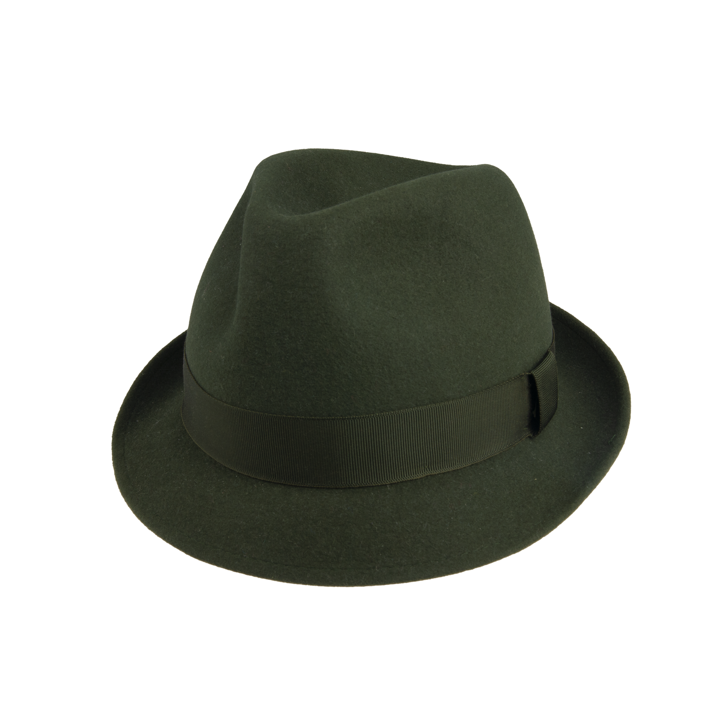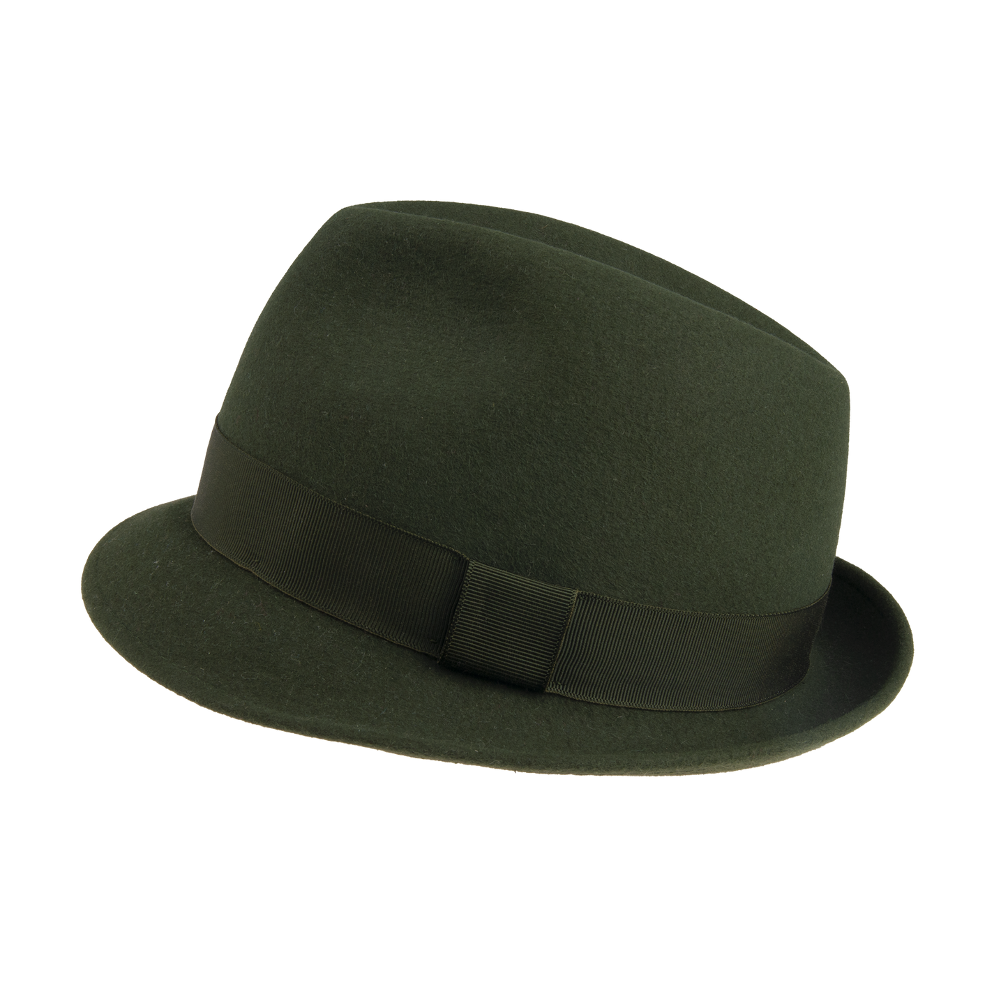 A high-quality felt hunting hat available in children's sizes. The hat is adorned with a simple ribbon in the same color and the sweatband features a print with the text "My First Hat". Ideal as a cute accessory for the little hunters