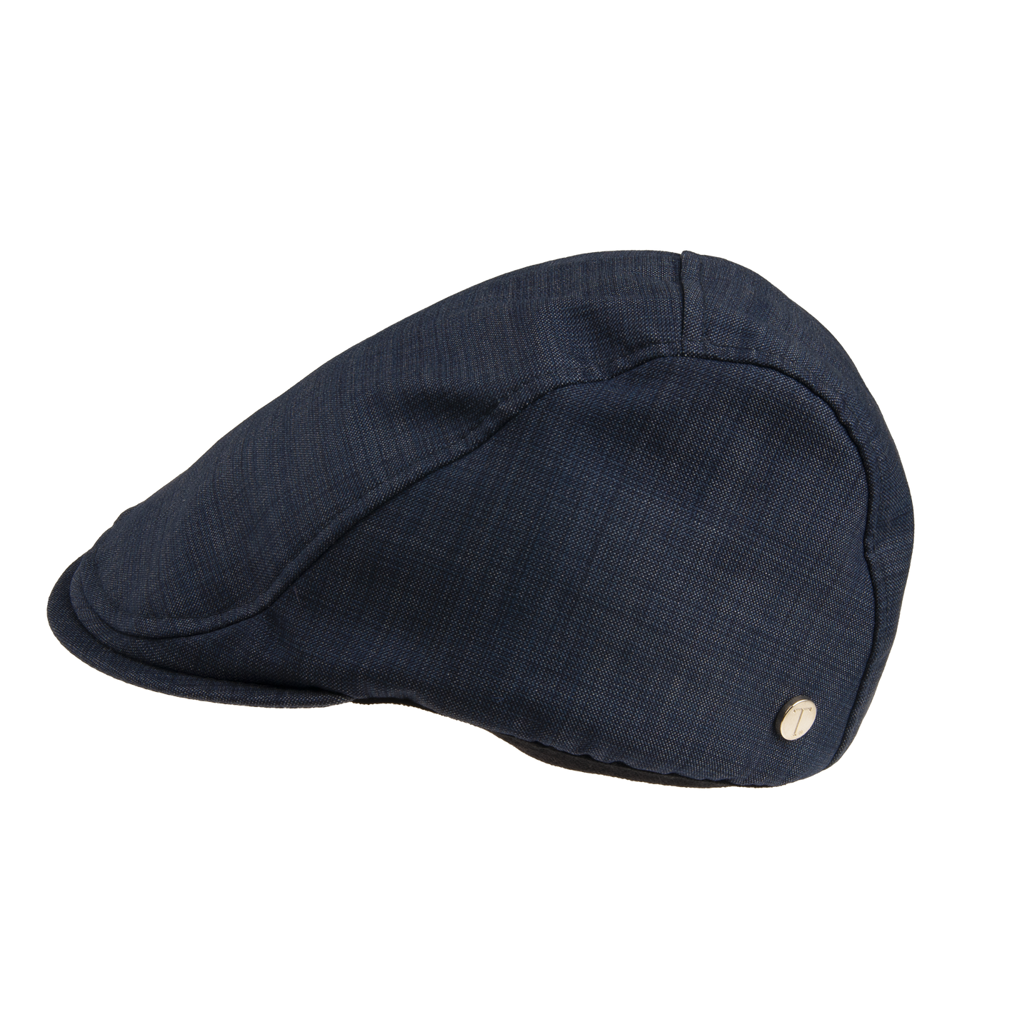 A men's summer flat cap Curtis . The lightweight woolen material with a breathable lining is suitable even for warmer summer days. The cap is adorned with an iconic gold pin with a logo.