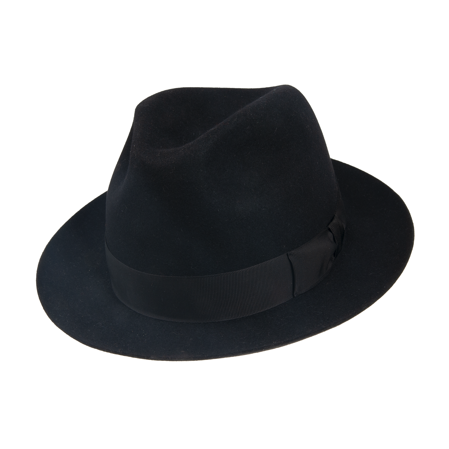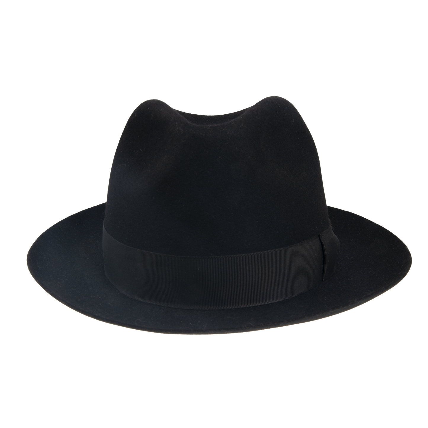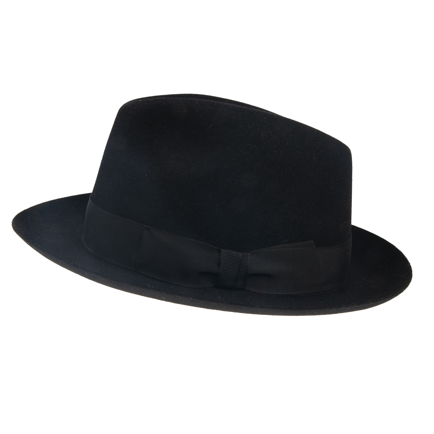 Felt hat trimmed with the hat ribbon. It has the lining and the fabric sweat band. The width of the brim 5 - 5,5 cm.