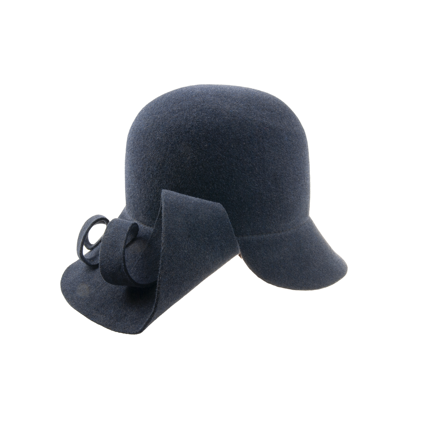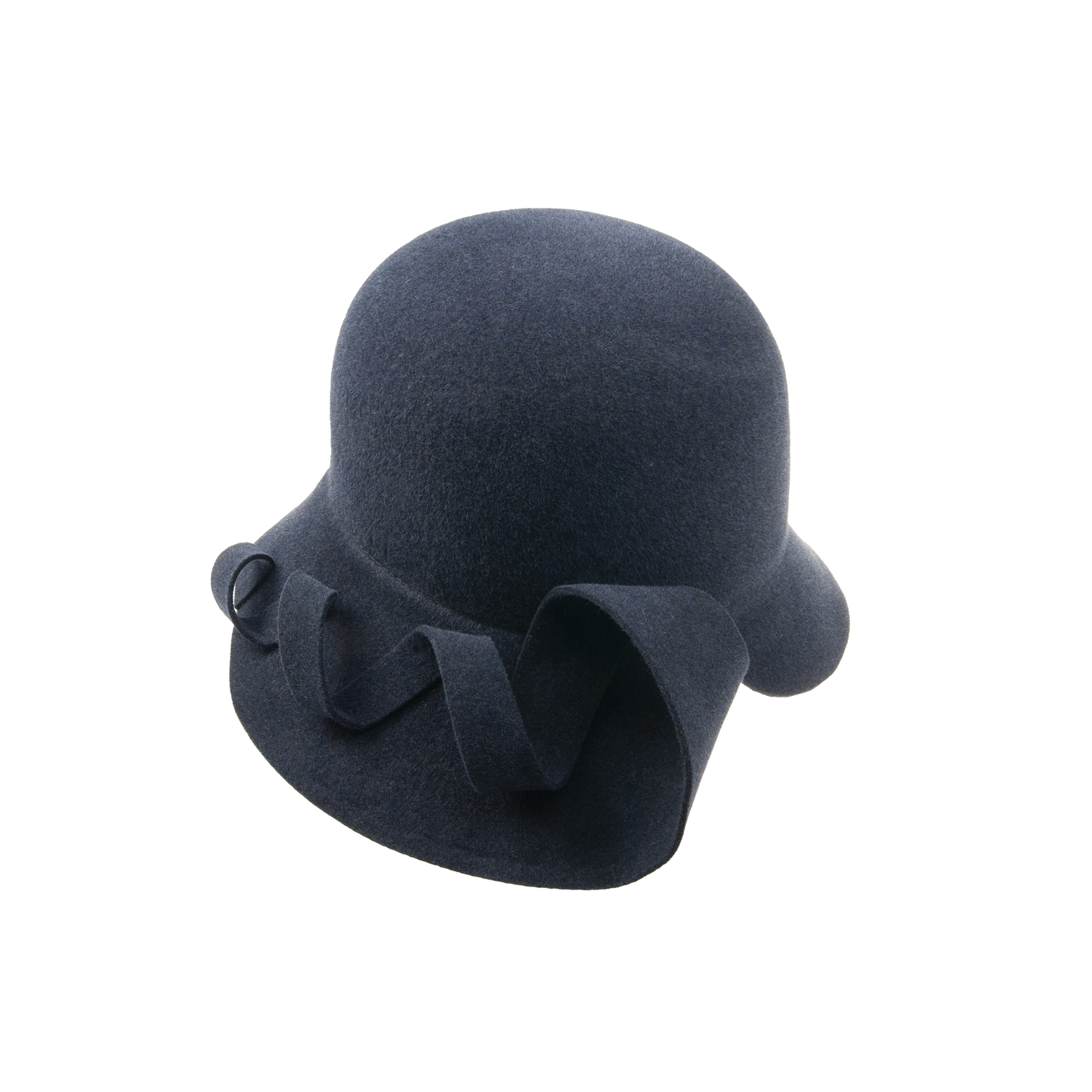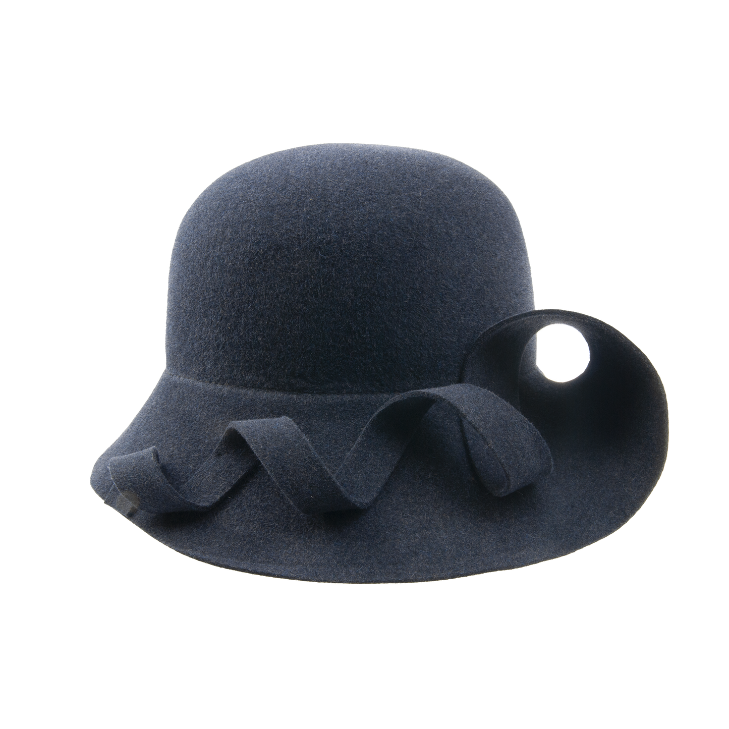 Fine suede hat with an elastic sweatband decorated with a scalloped brim.