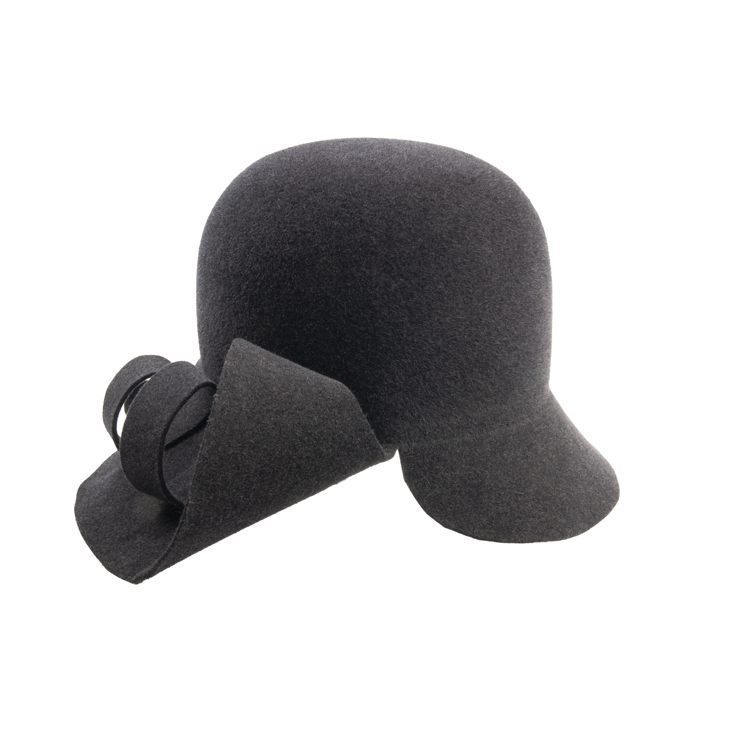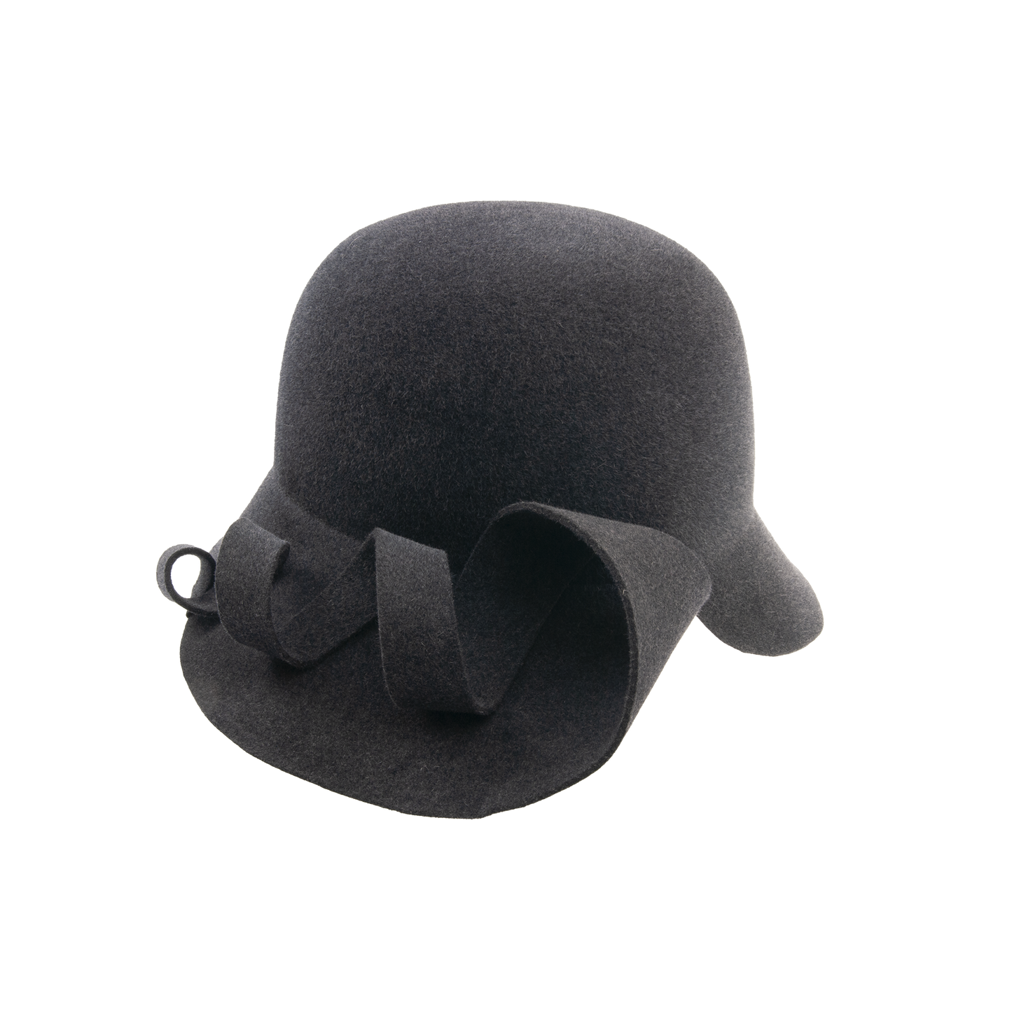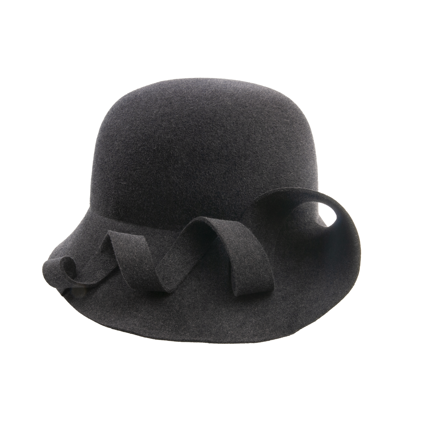 Fine suede hat with an elastic sweatband decorated with a scalloped brim.