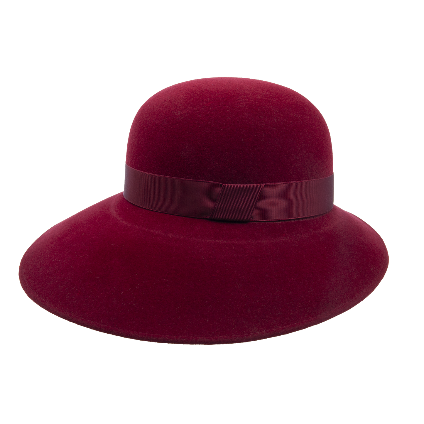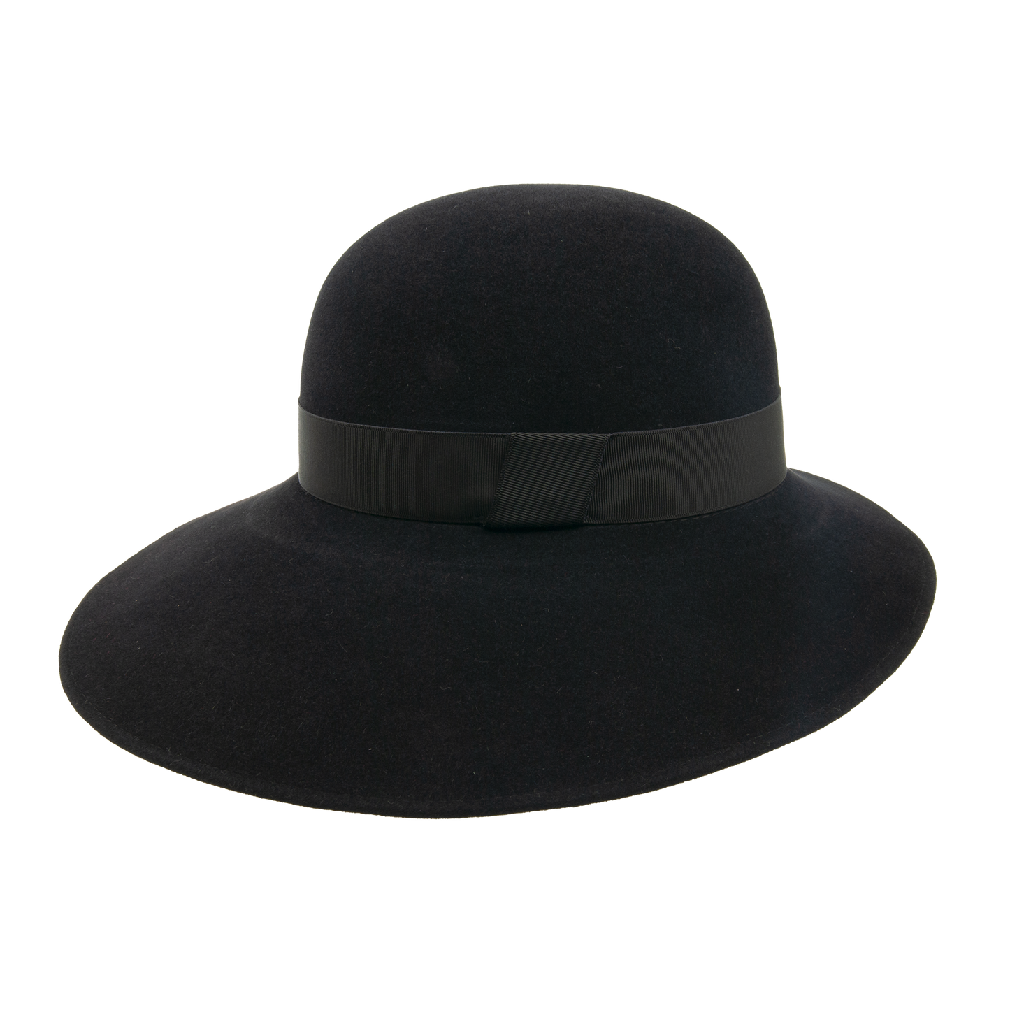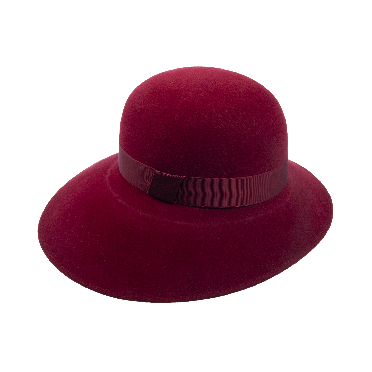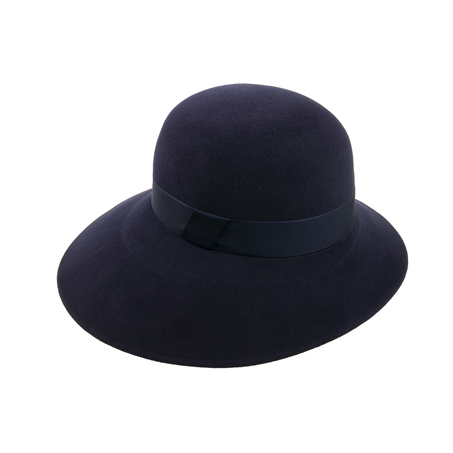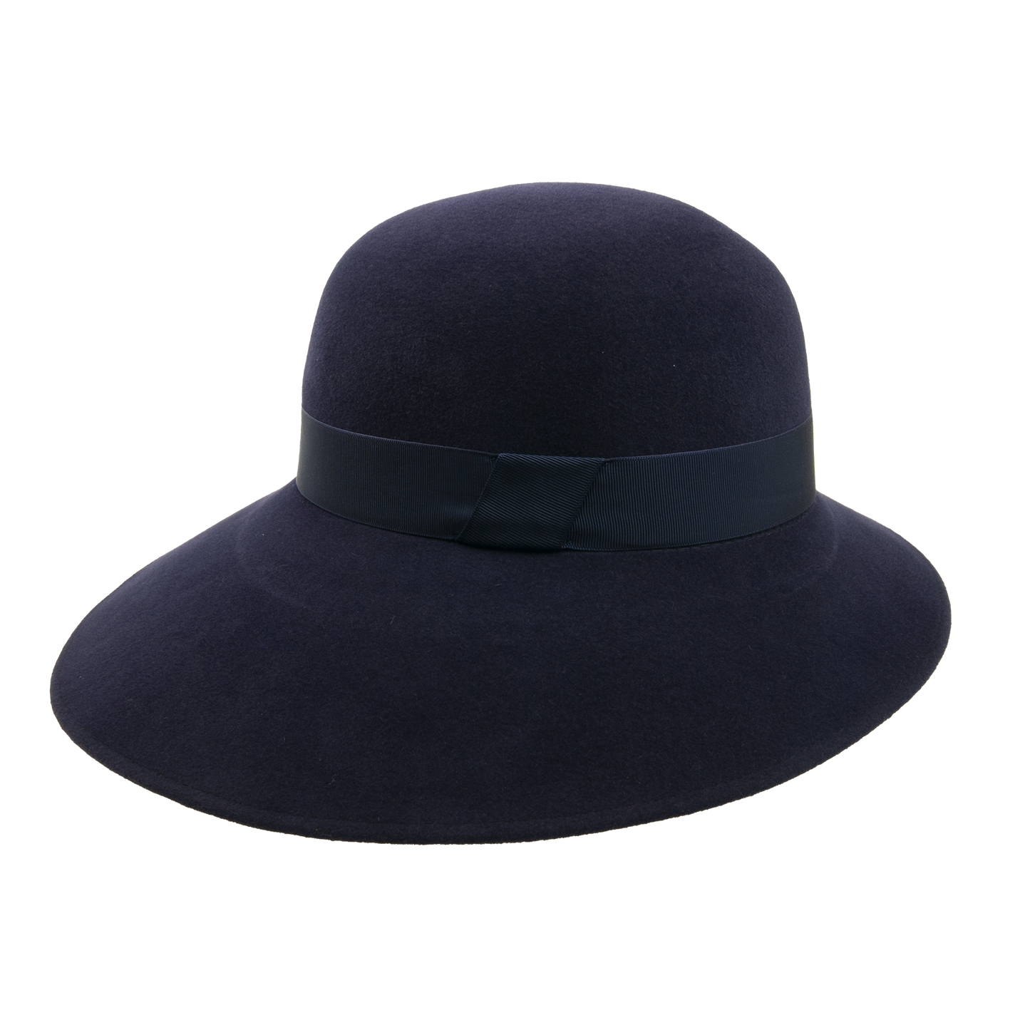 Felt asymmetric hat trimmed with the hat ribbon. It has stretch sweat band. The width of the brim 7 - 12 cm.
