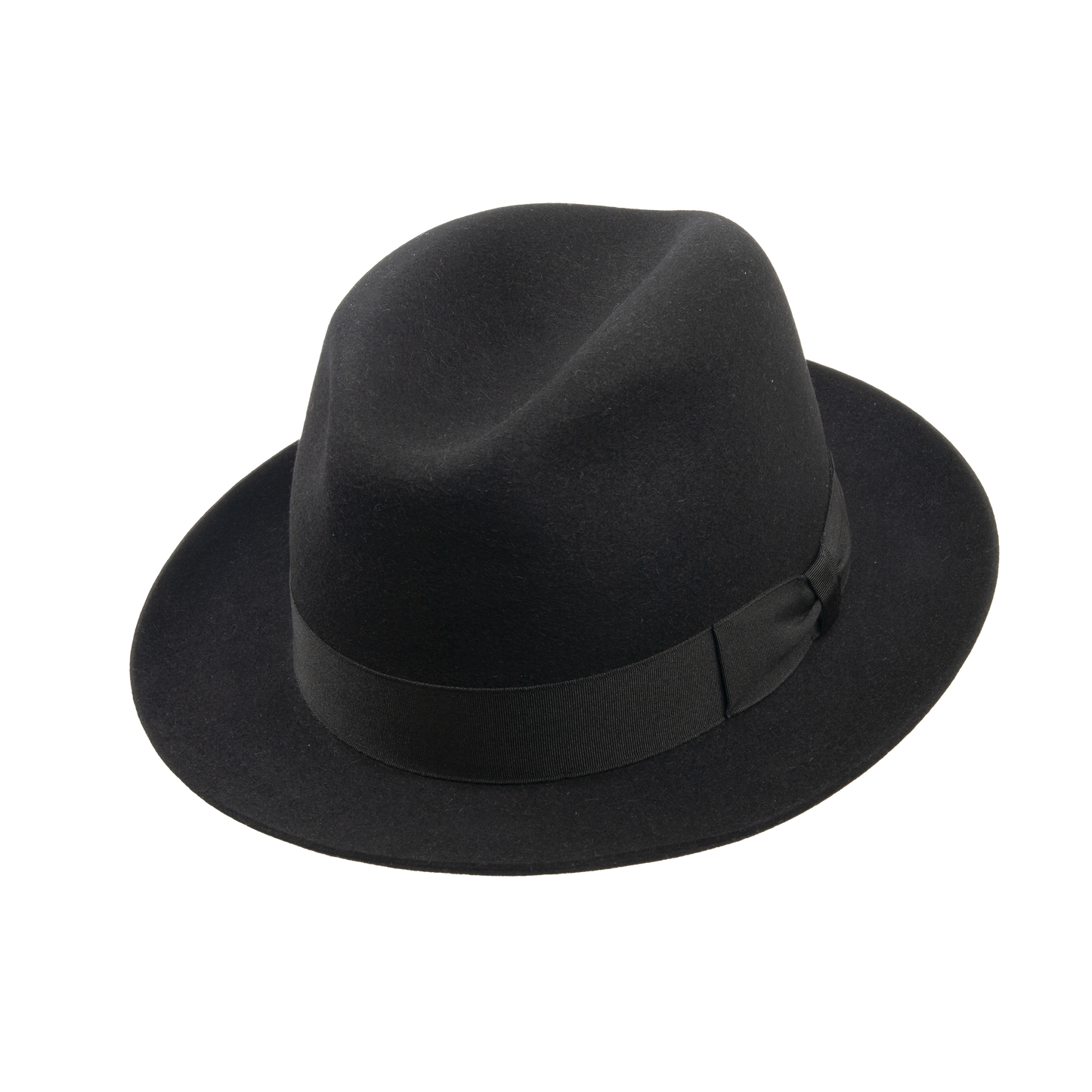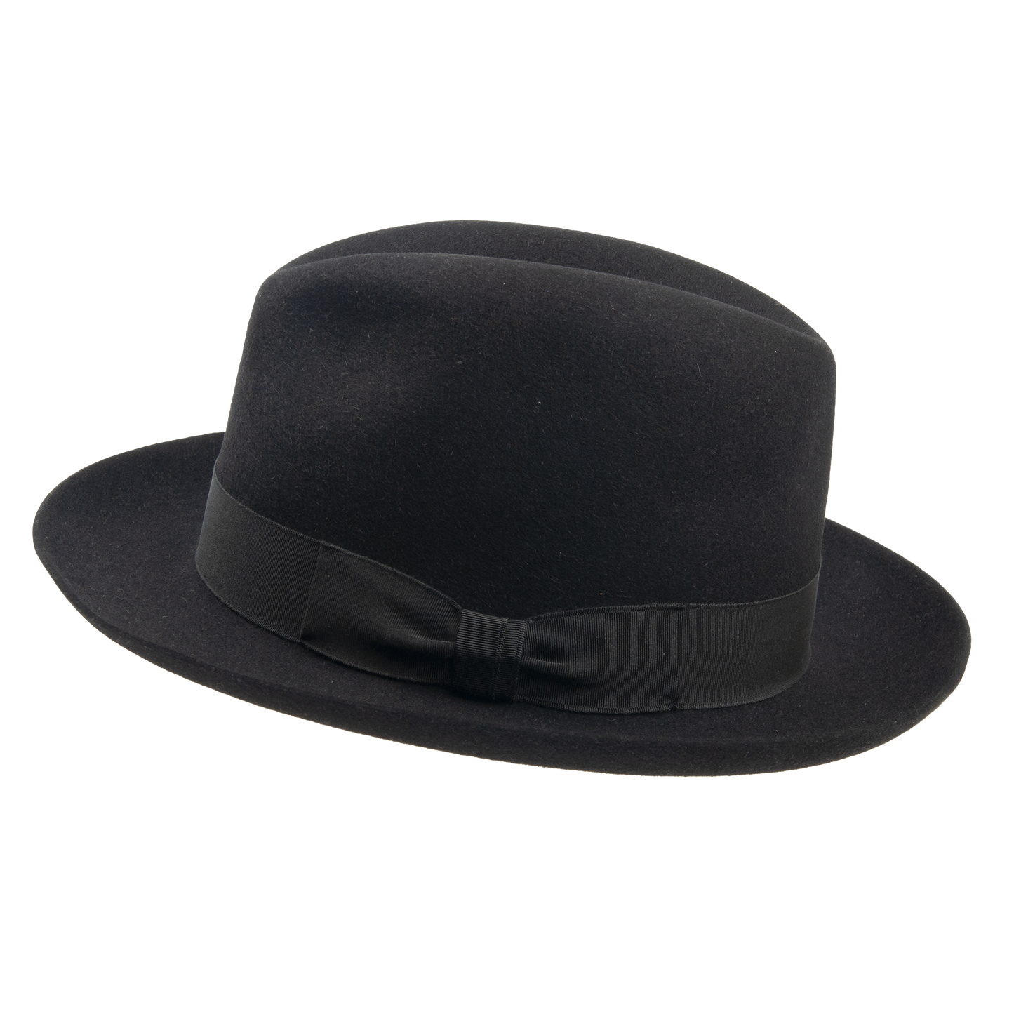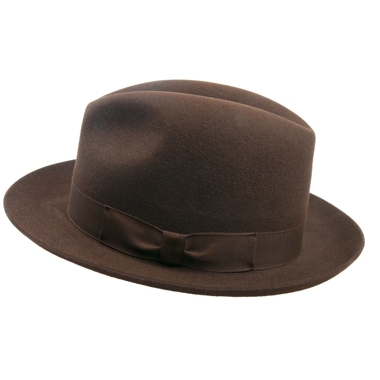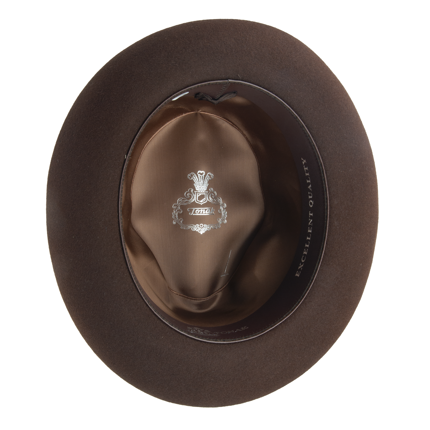Men's hat with leather sweat band trimmed with the hat ribbon. The brim width 5,5-6 cm. It contains non-textile parts of animal origin.