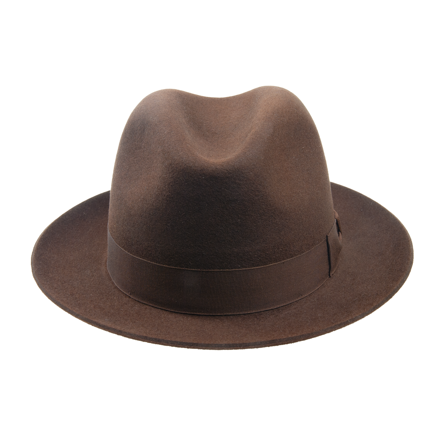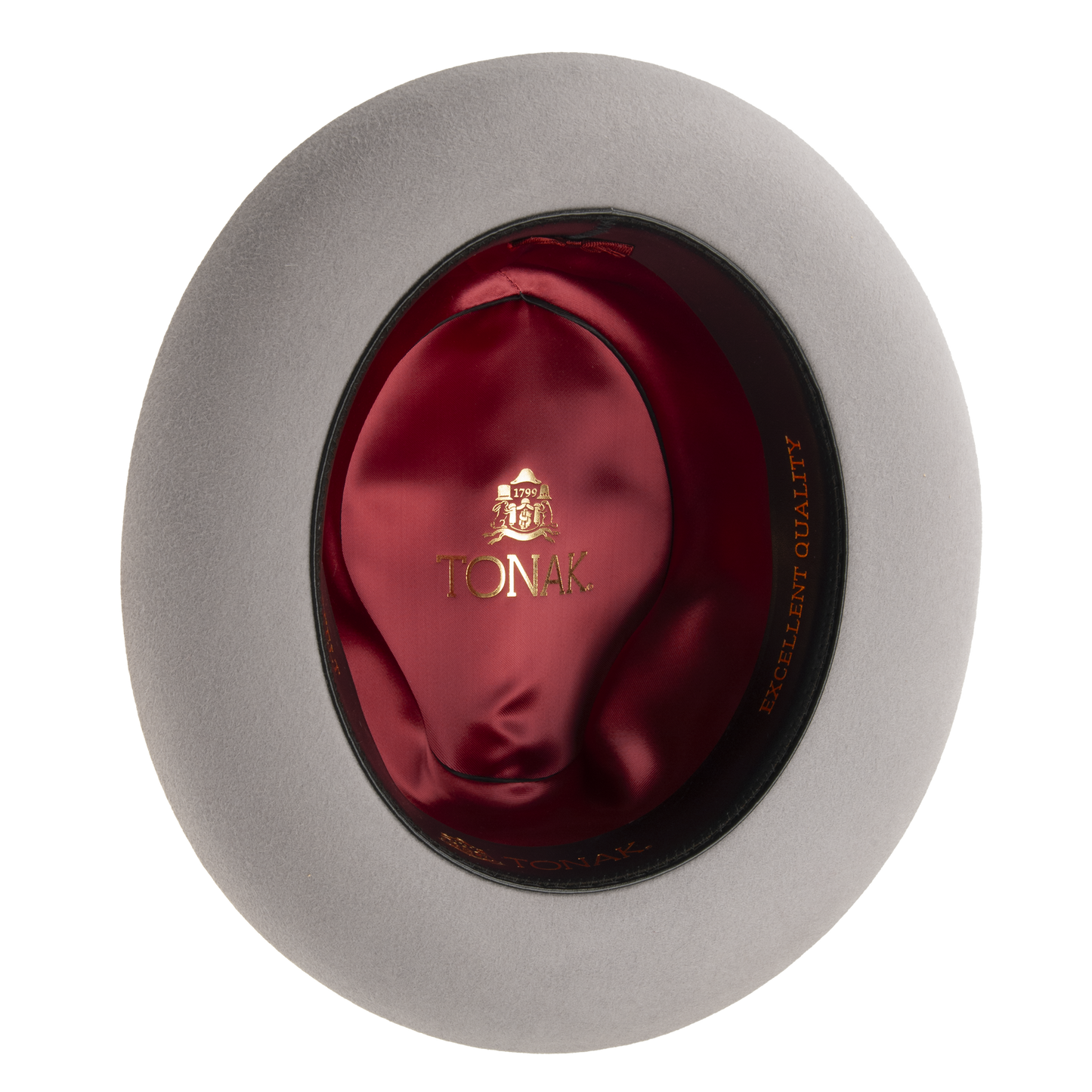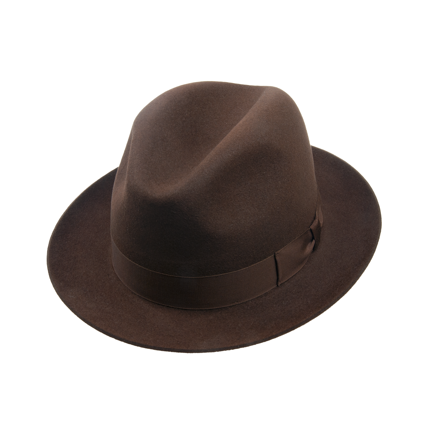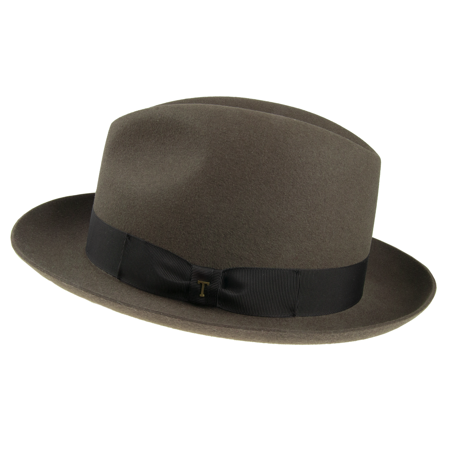 Men's hat with leather sweat band trimmed with the hat ribbon. The brim width 5,5-6 cm. It contains non-textile parts of animal origin.