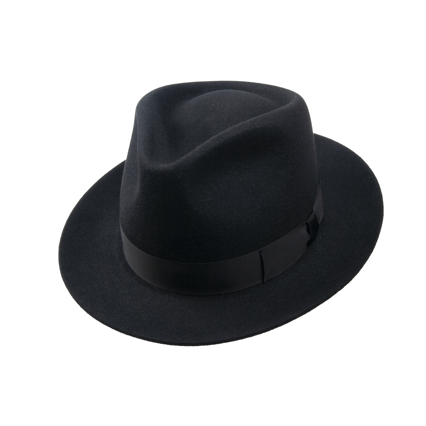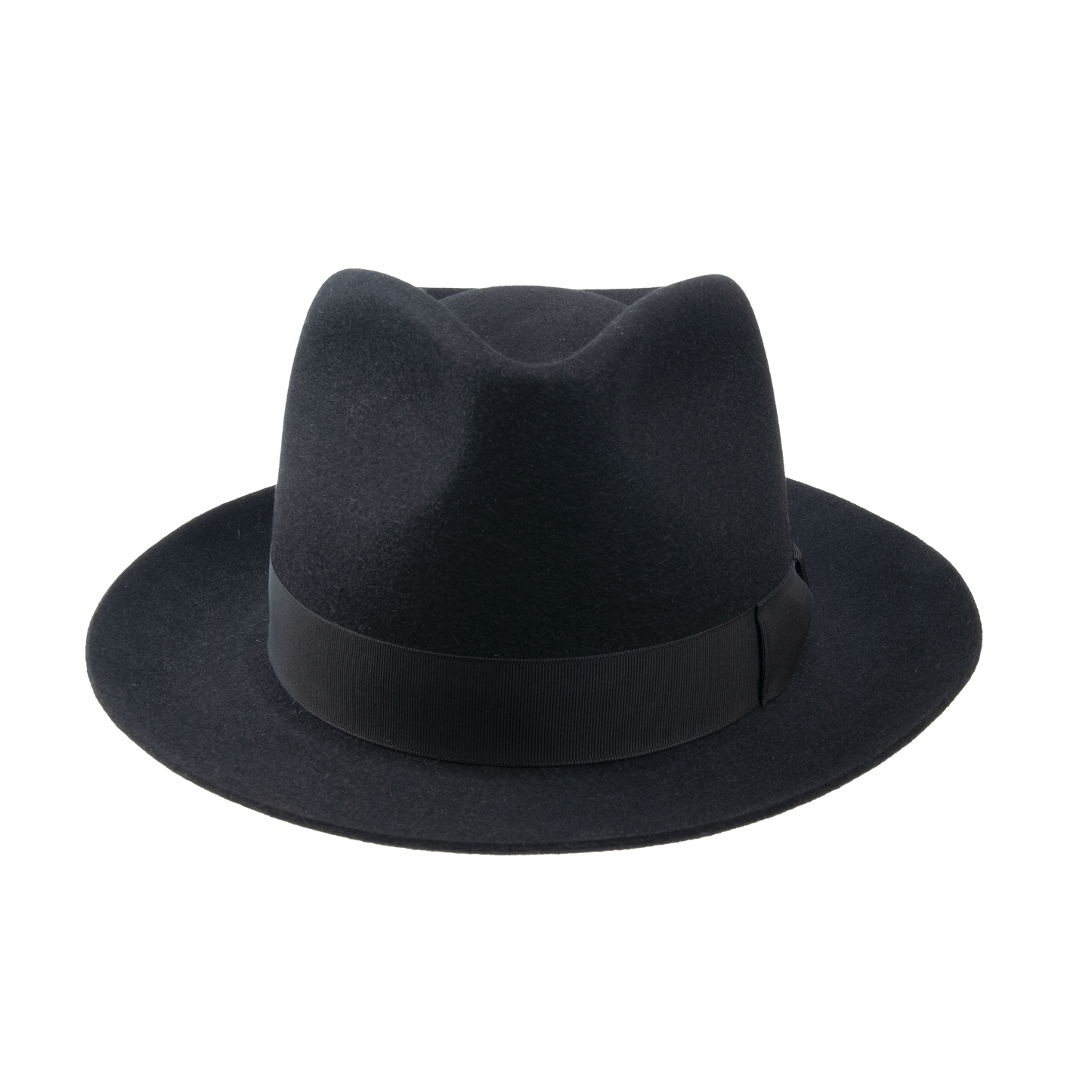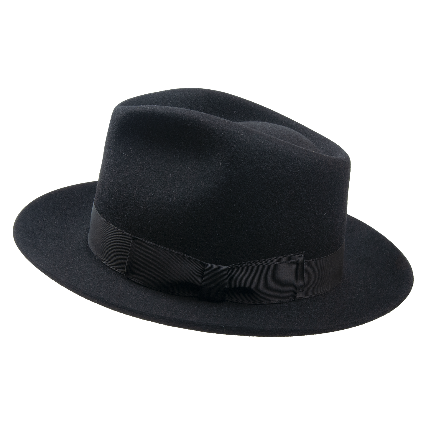 Felt hat with the stretch sweat band trimmed with the hat ribbon and the bow. The width of the brim 6 - 6,5 cm.