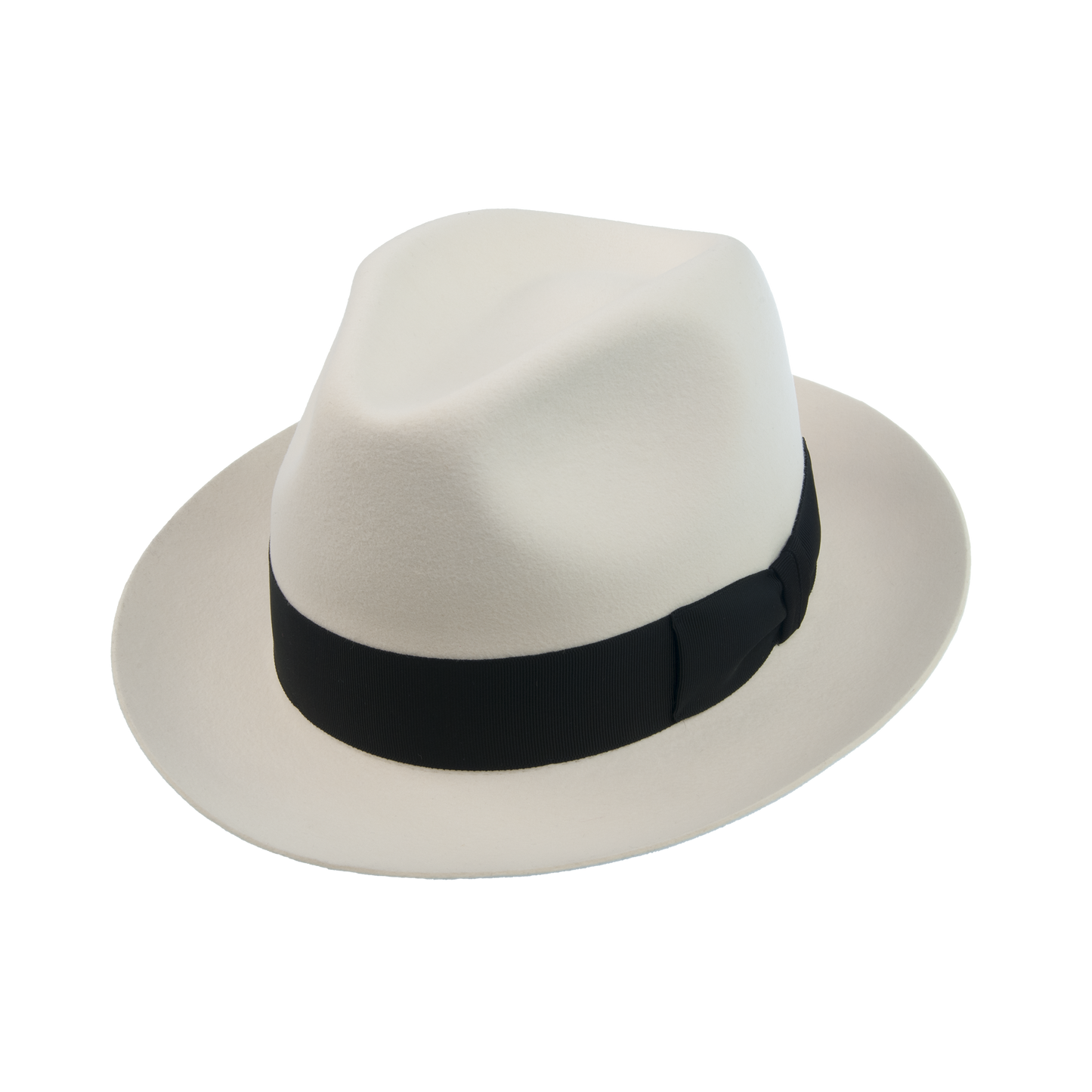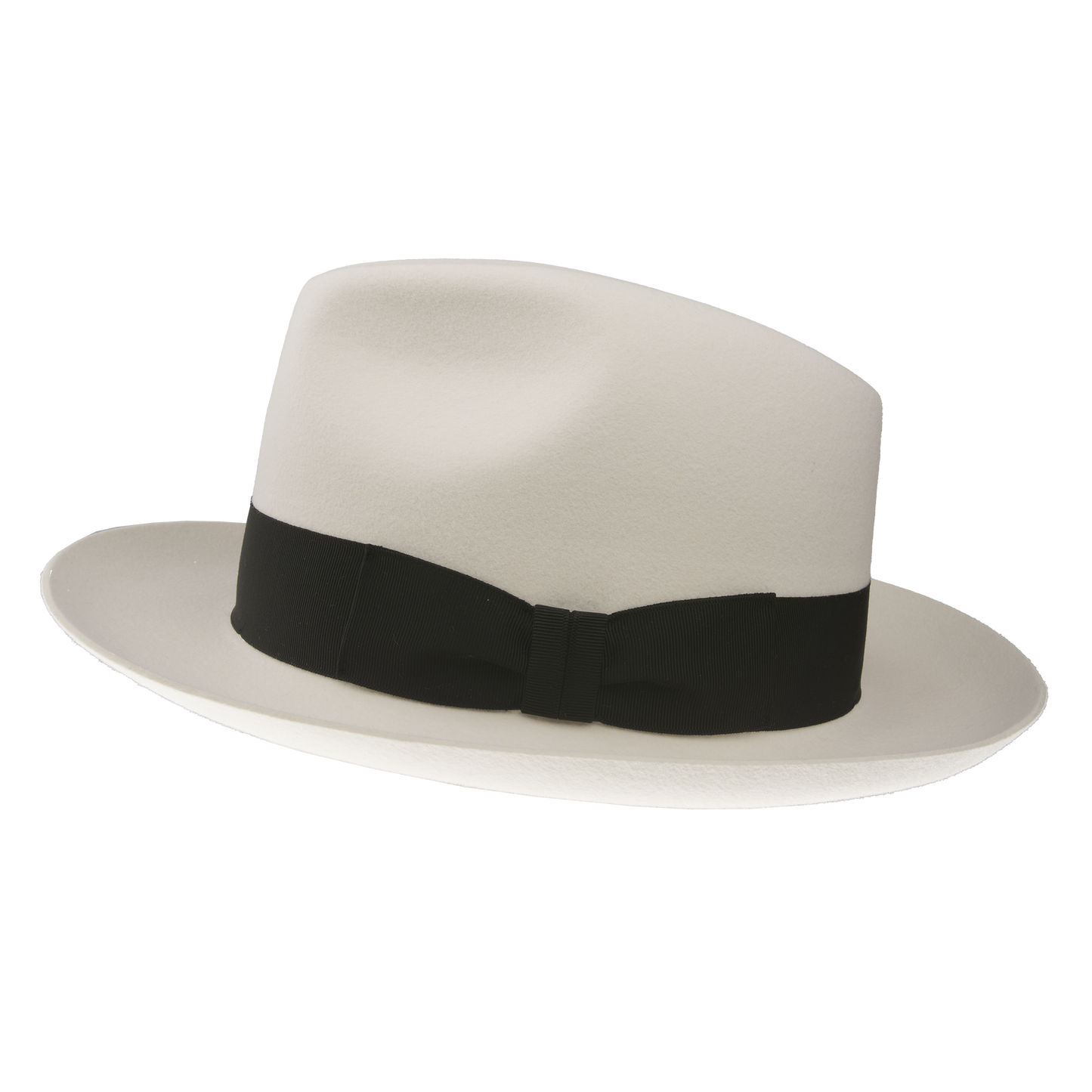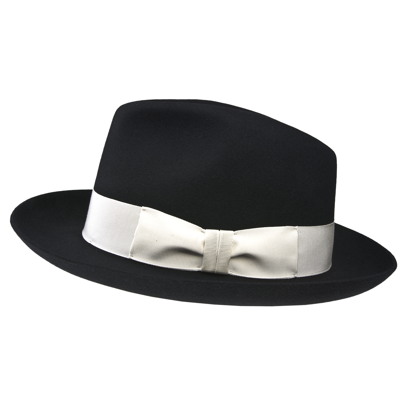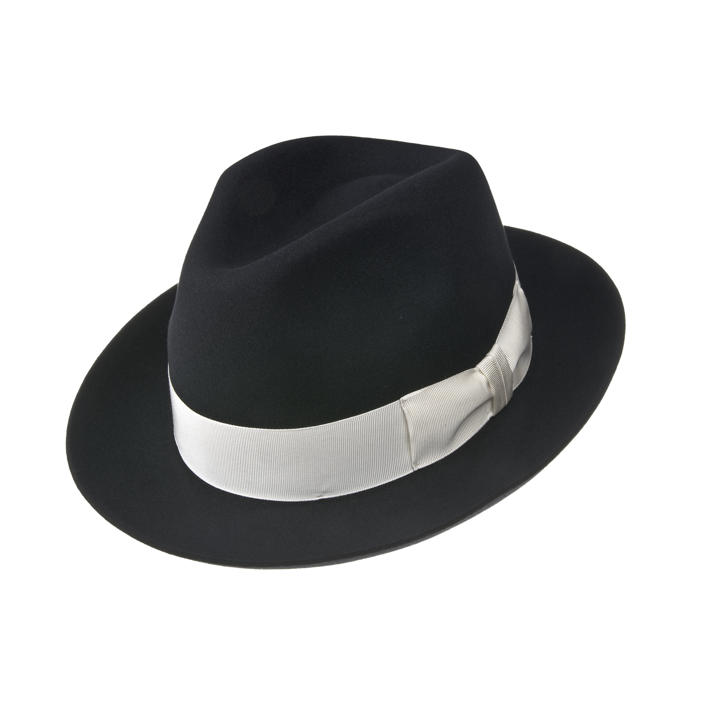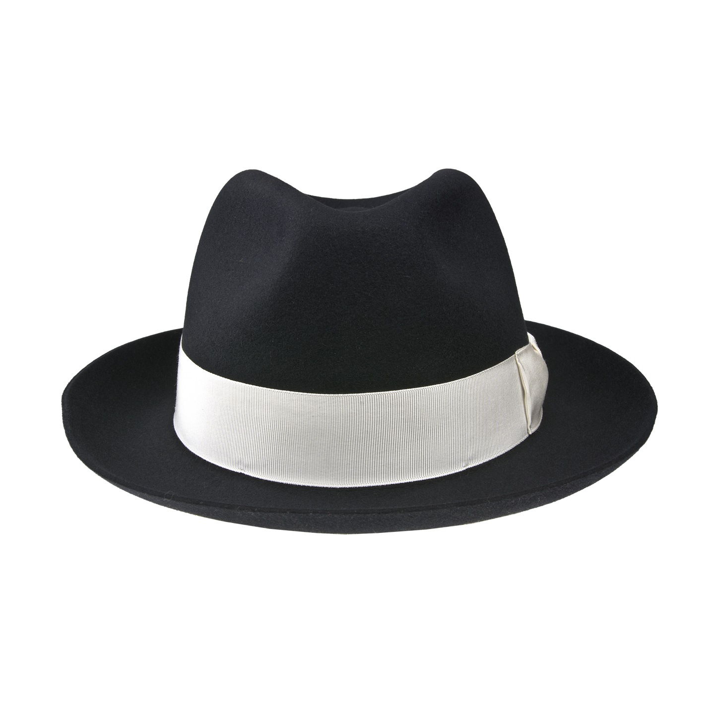 Felt hat with the stretch sweat band trimmed with the hat ribbon. The width of the brim 6 cm.