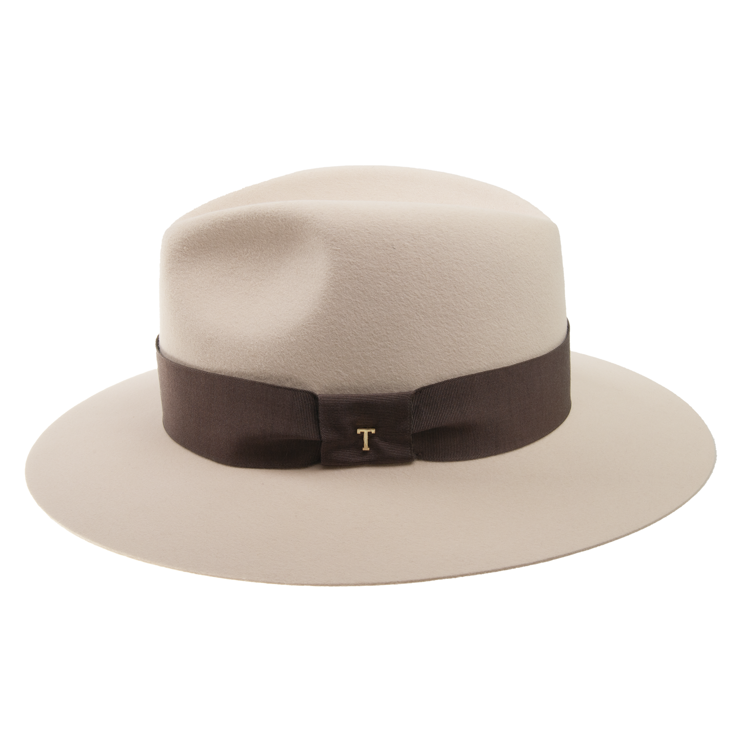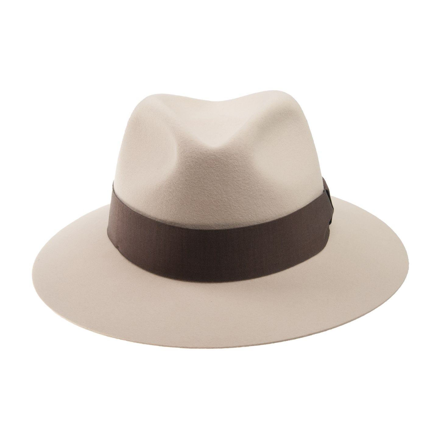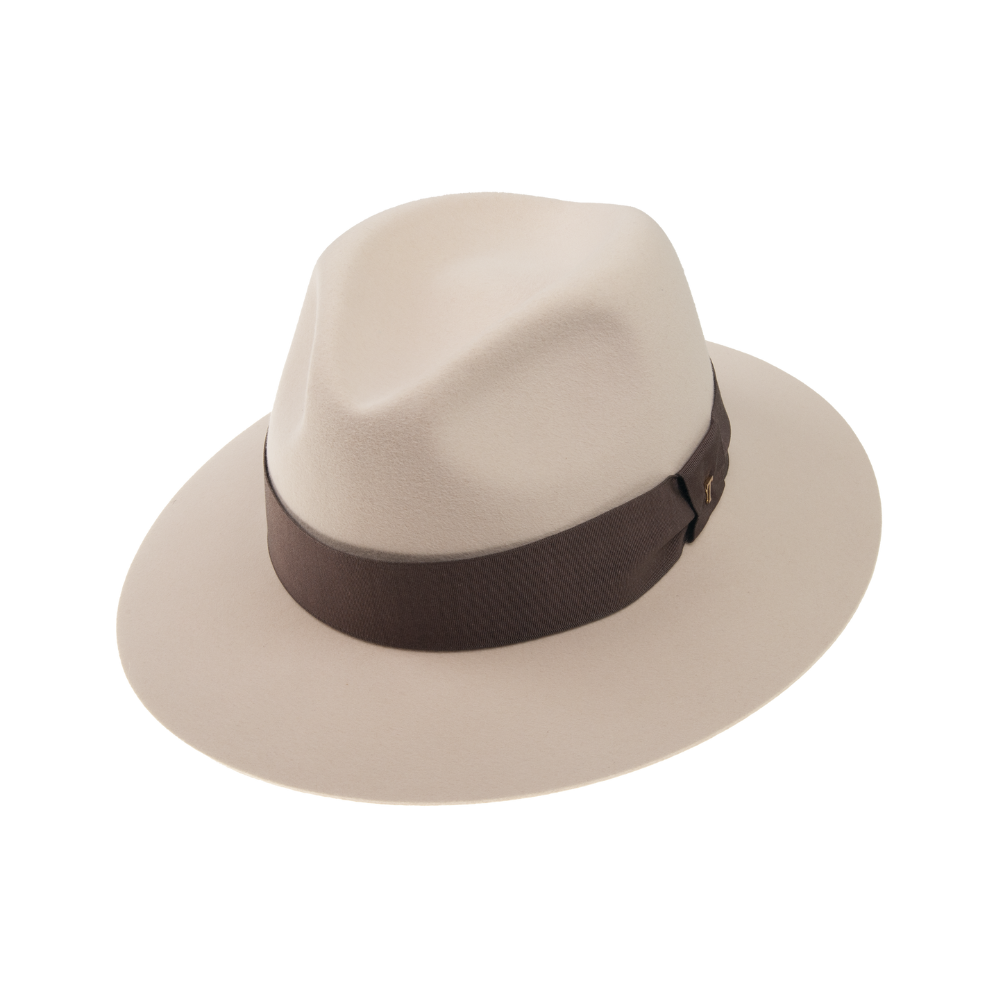 Felt hat trimmed with the dark hat ribbon. It has fabric sweat band. The width of the brim 7 cm.