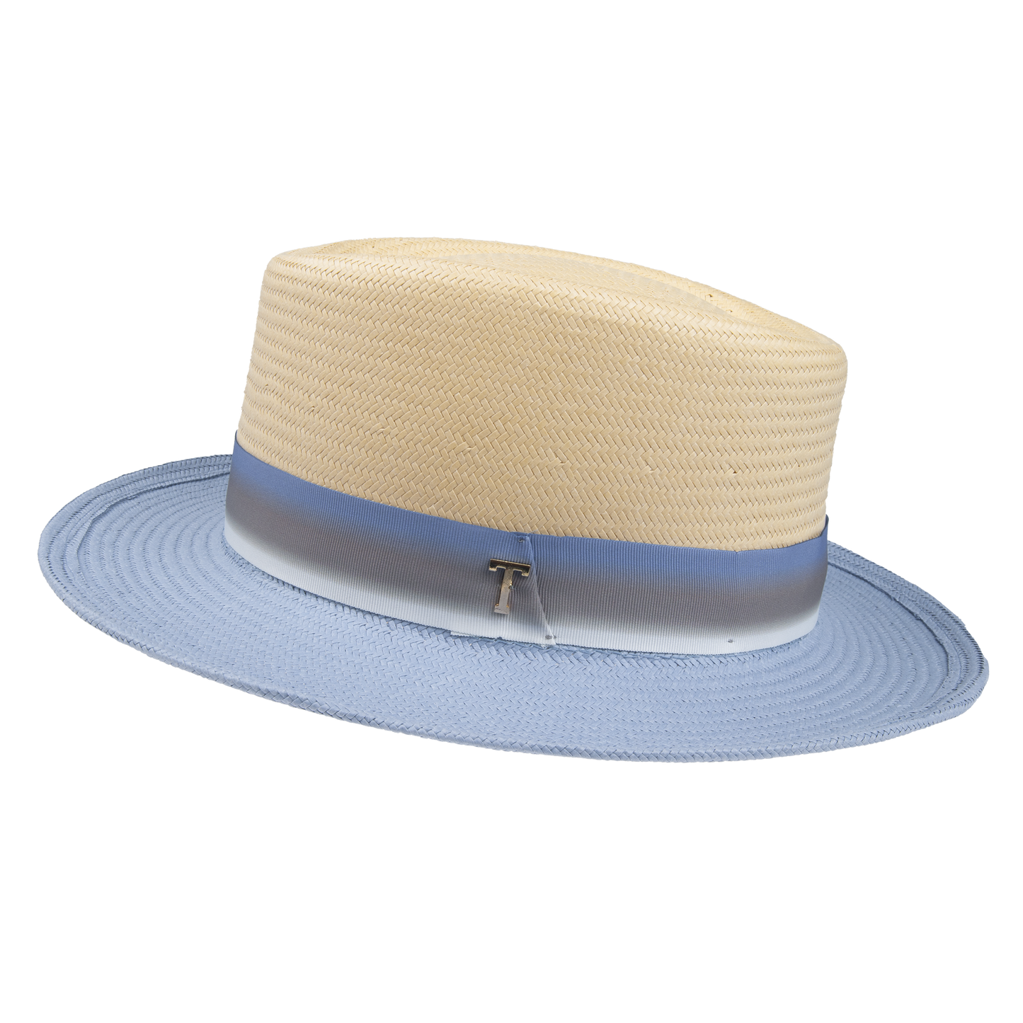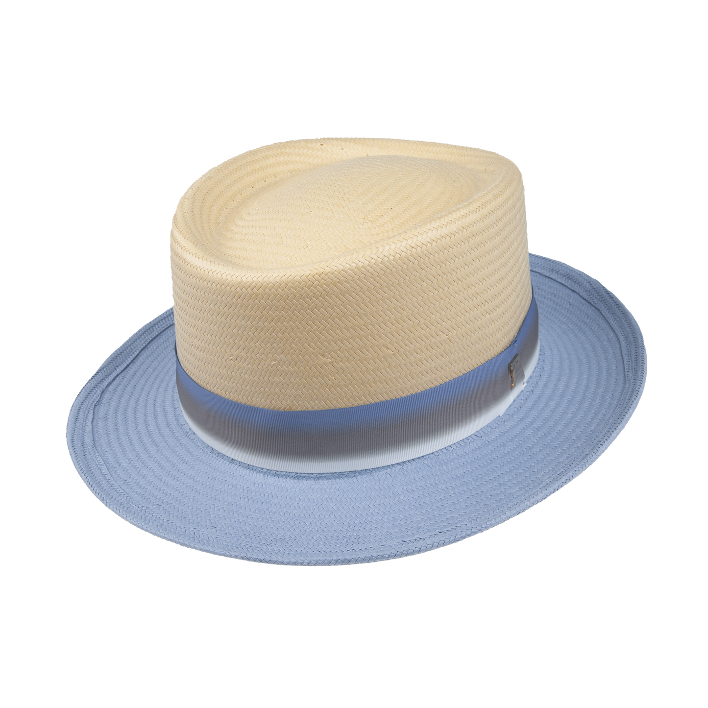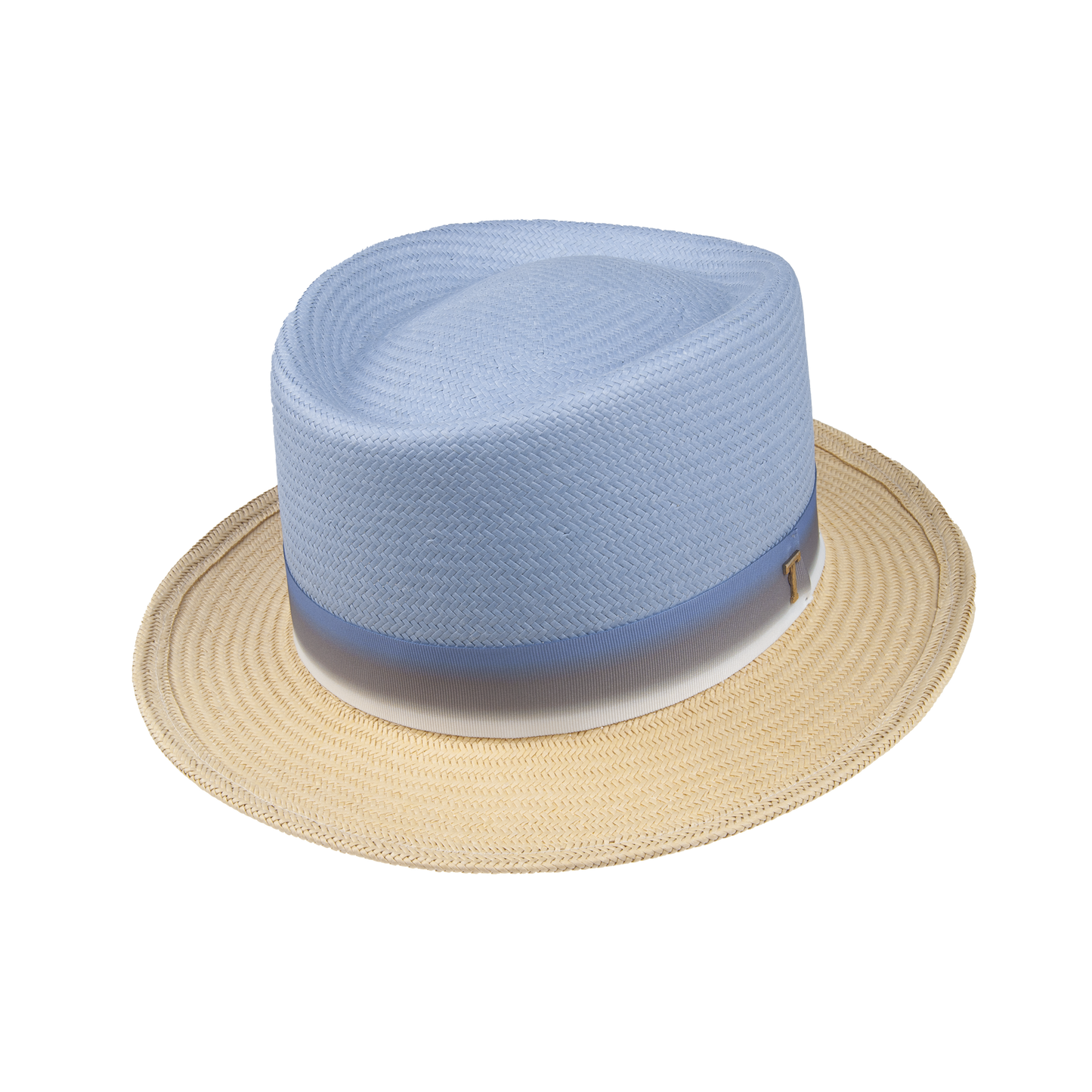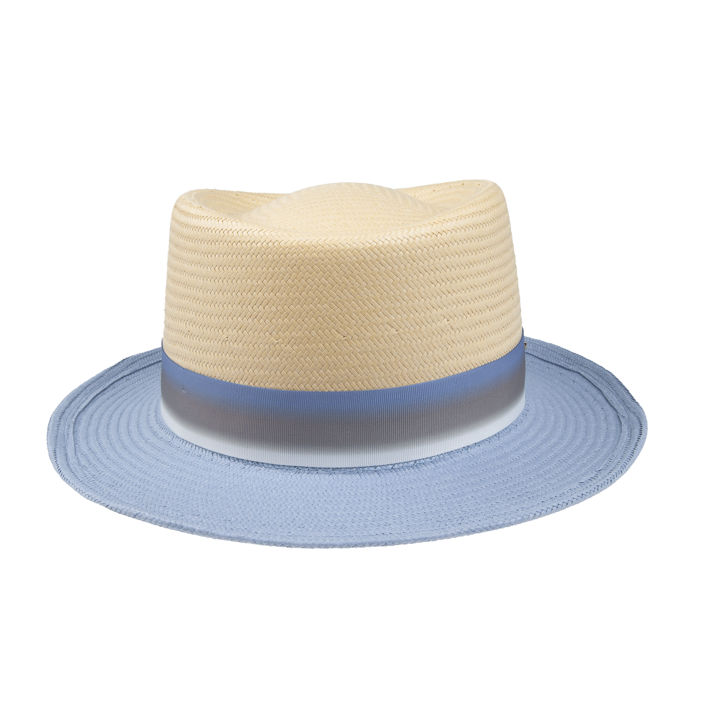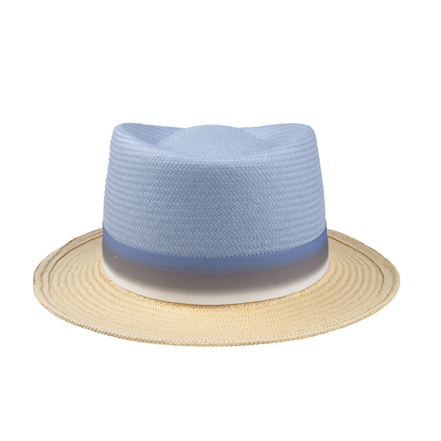The classic Porkpie made from high-quality glazed paper in original colour concept - sky blue charmingly complementing the cream shade. For a simple summer outfit, choose Porkpie Base le Ciel as the imaginary icing on your outfit; an unmissable accessory.