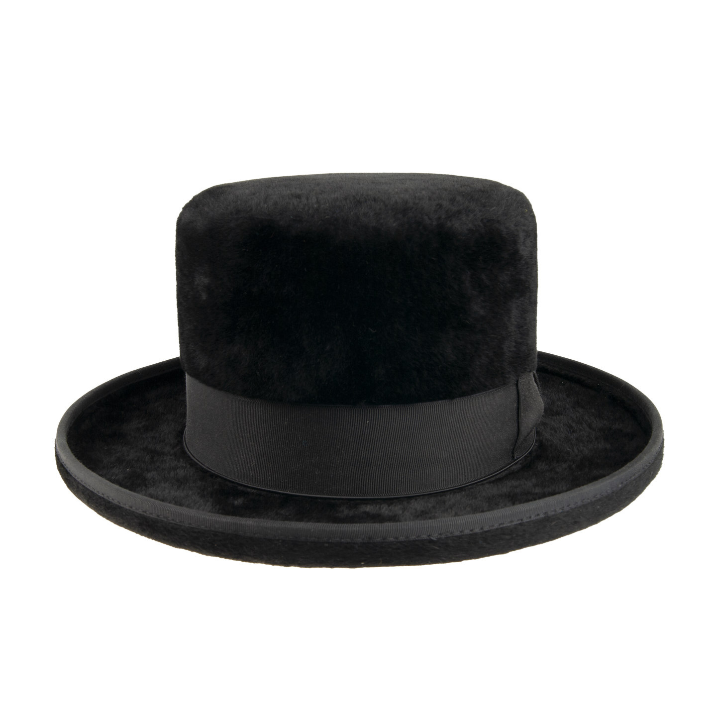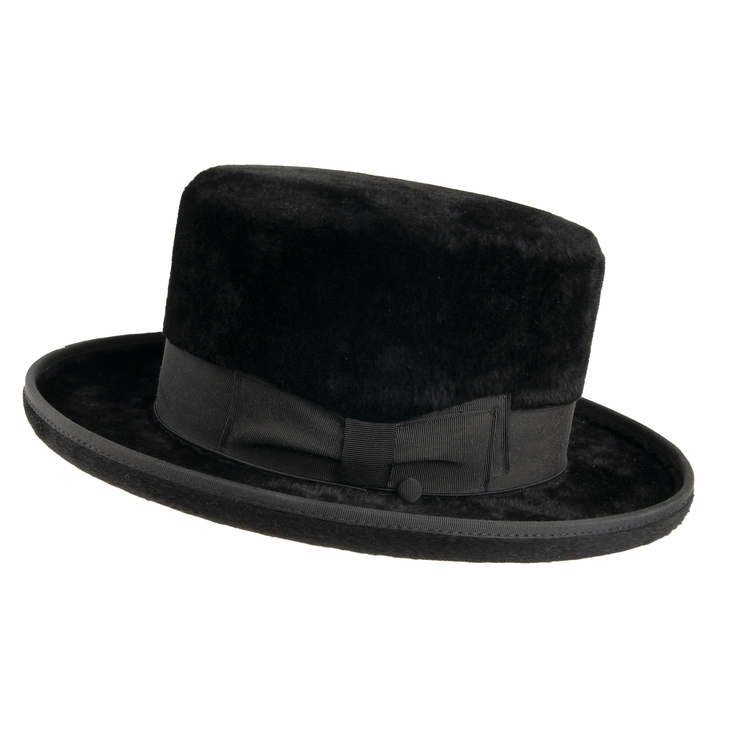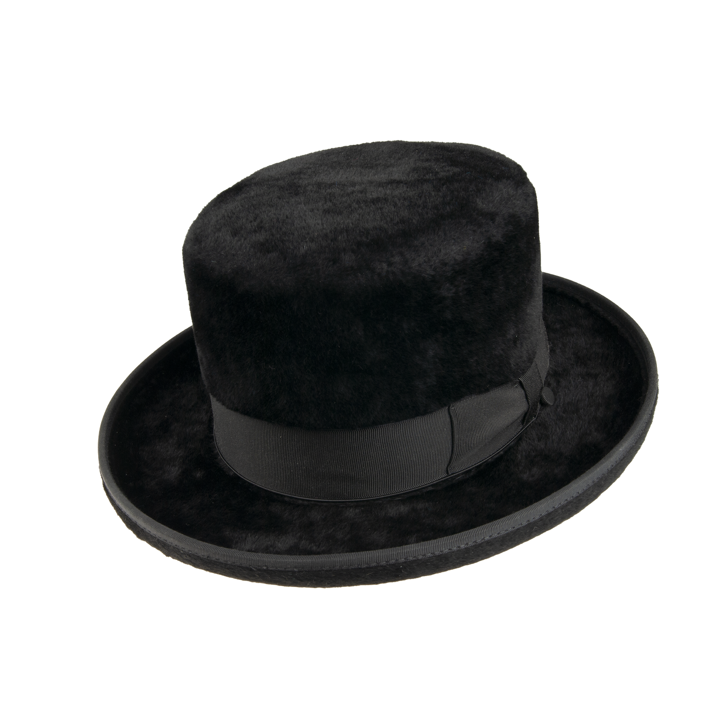 Solid jewish hat made of special velour - platino.It is trimmed with the hat ribbon, it has lining and leather sweat band. It contains non-textile parts of animal origin.