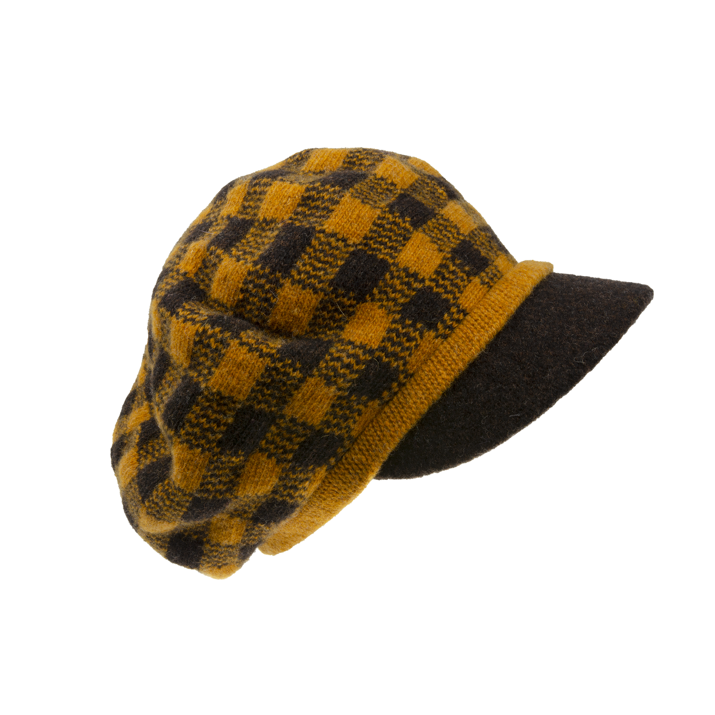 Retro peak caps with geometric pattern are back in fashion. Perfect with jeans high heels and leather jackets. Be stylish and unmistakable.