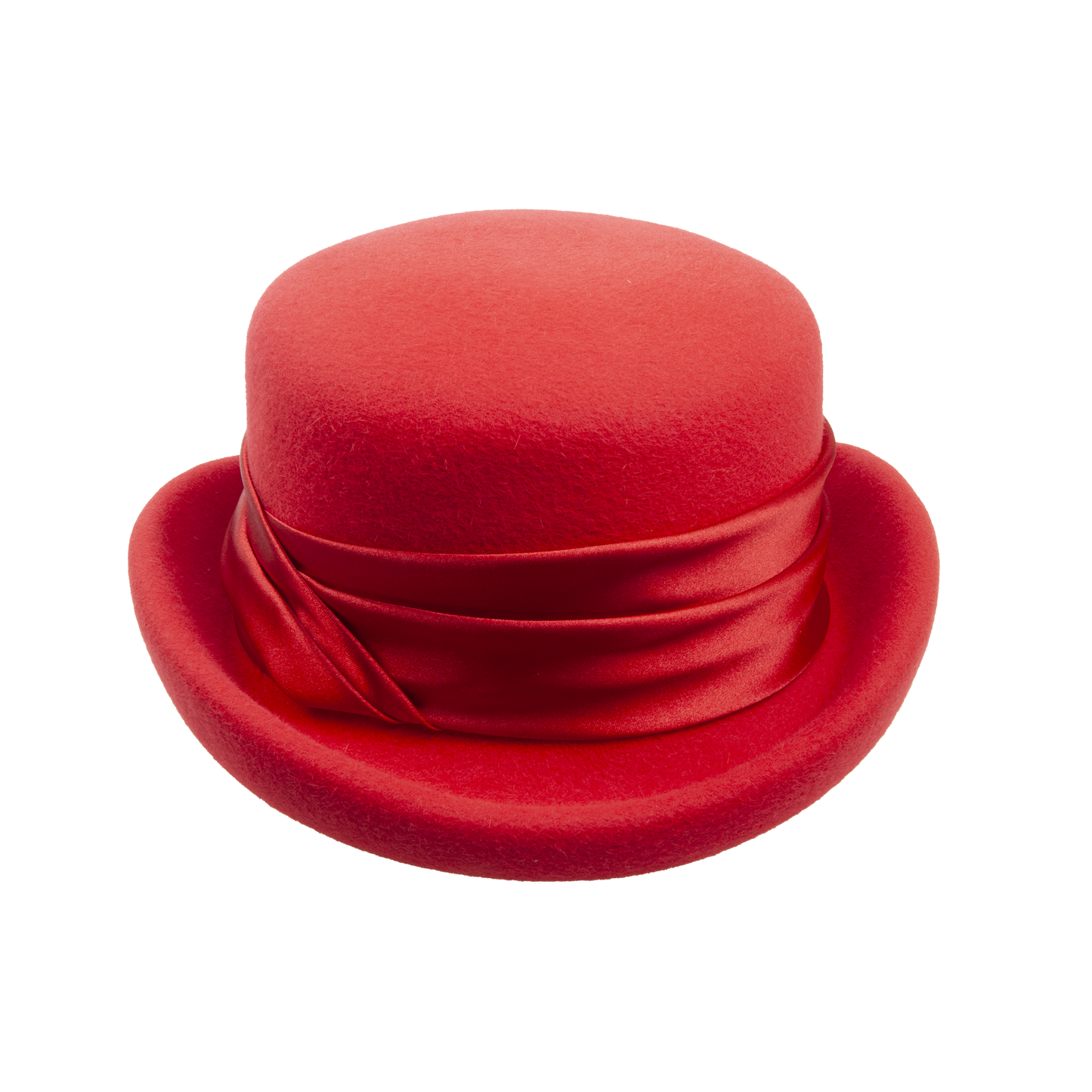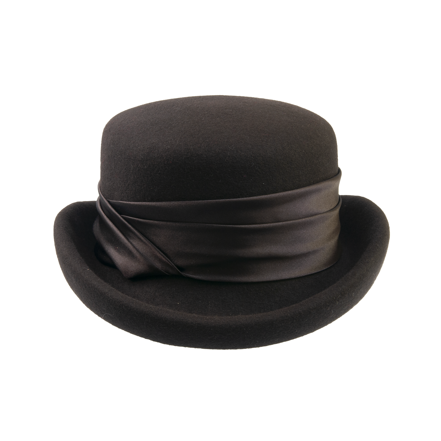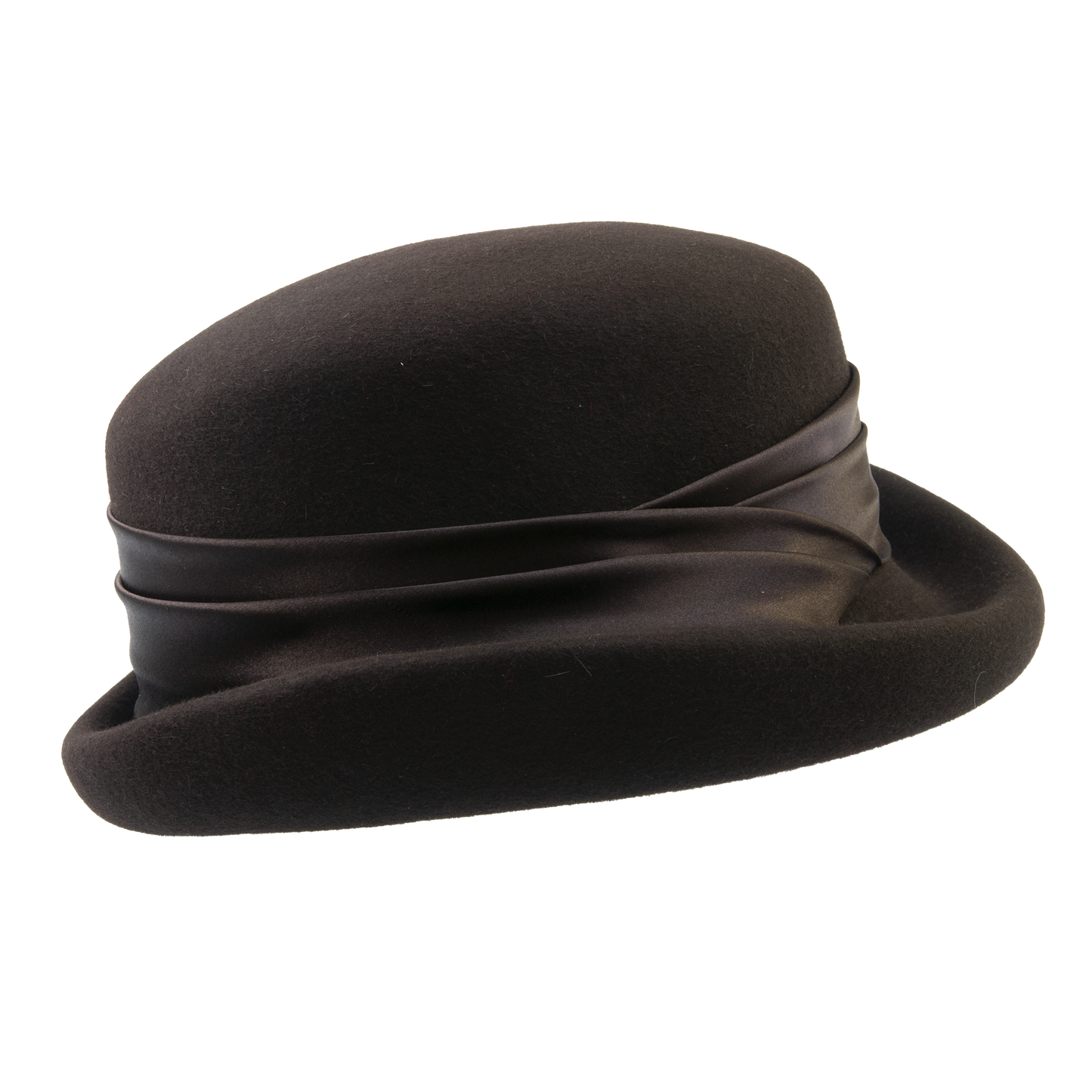 Ladies felt hat with stretch sweatband. The hat is decorated with satin ribbon.