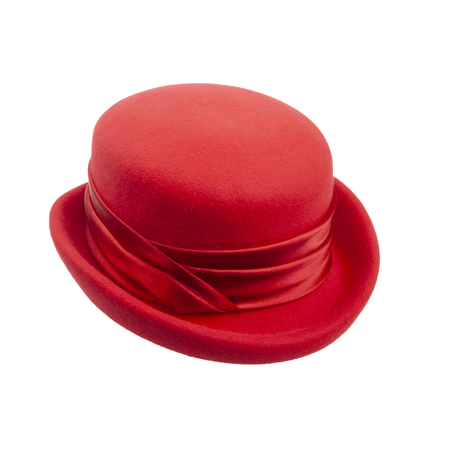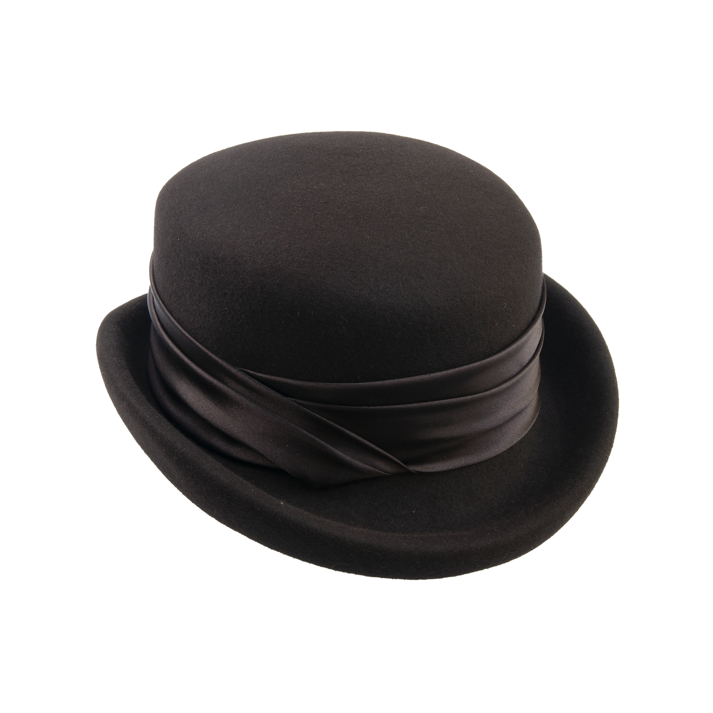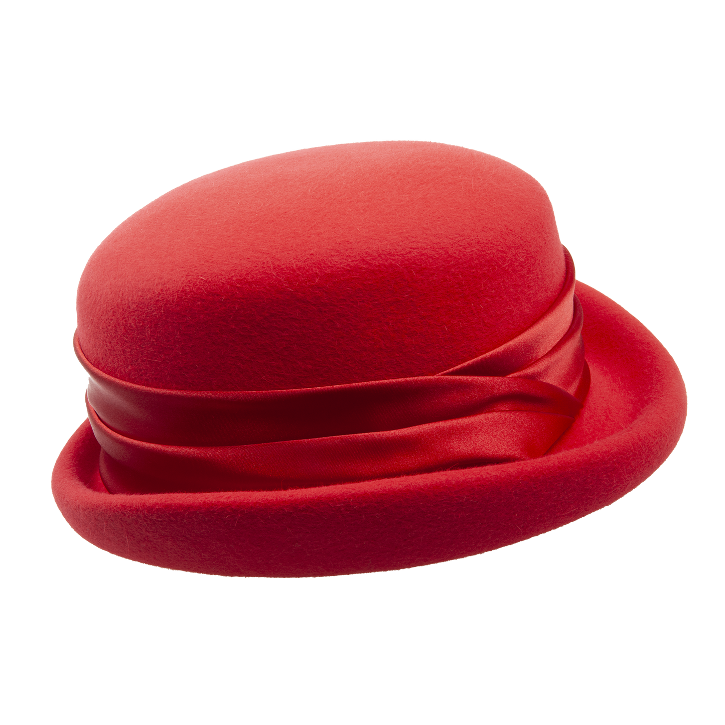 Ladies felt hat with stretch sweatband. The hat is decorated with satin ribbon.