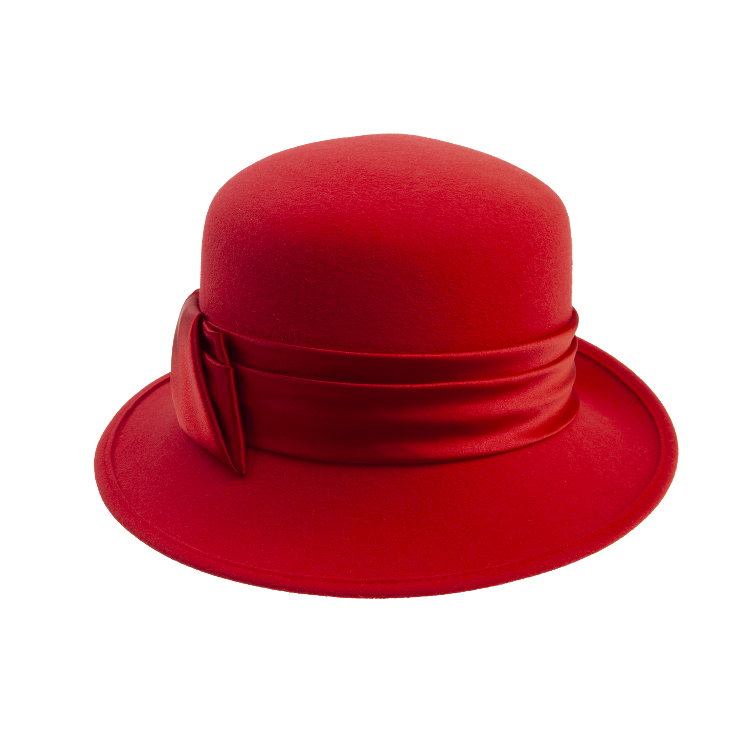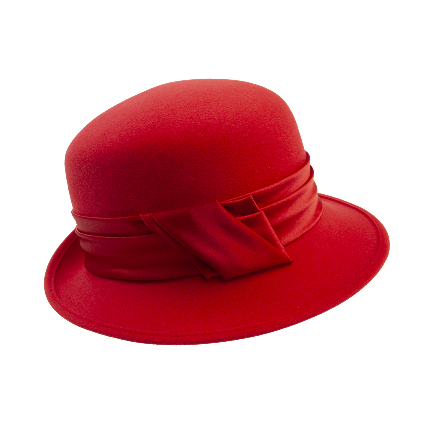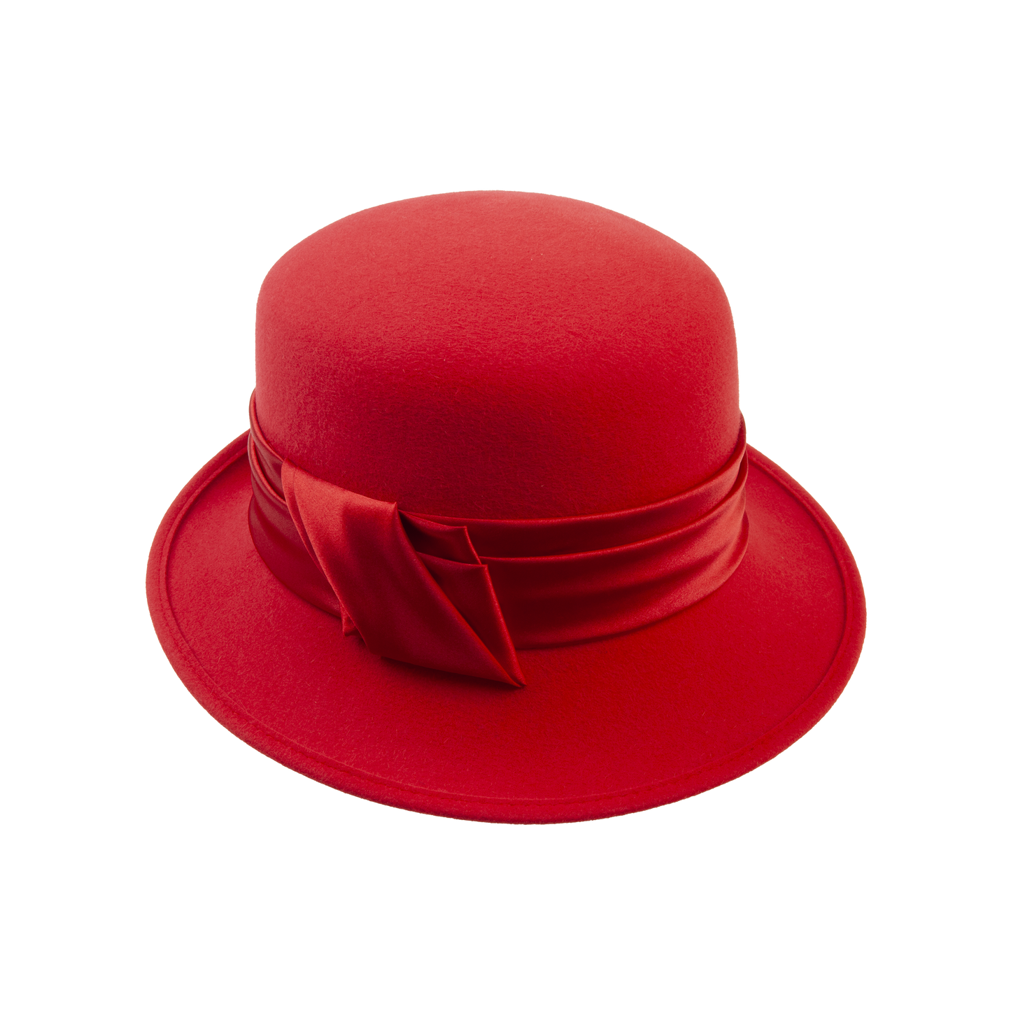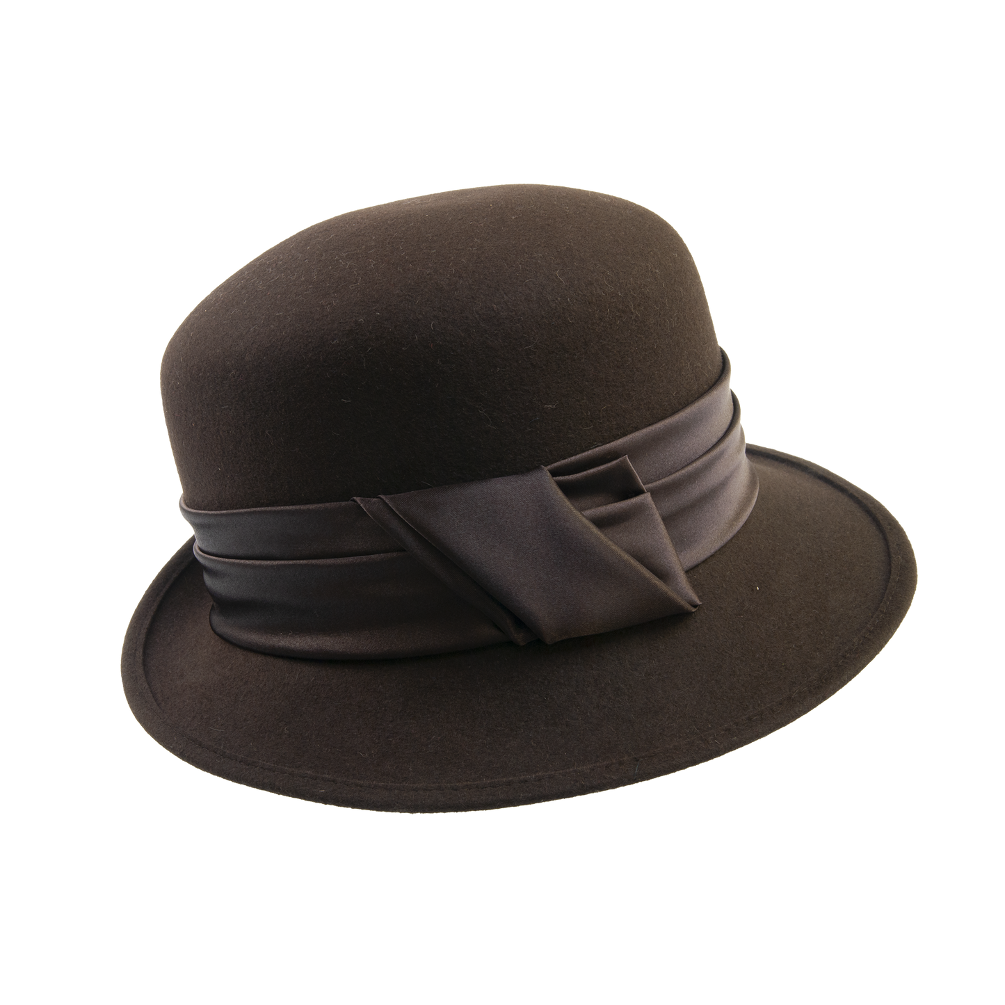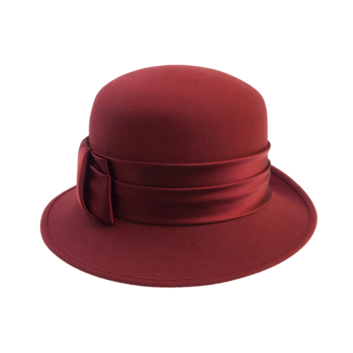 Ladies felt hat with stretch sweatband. The hat is decorated with satin ribbon.