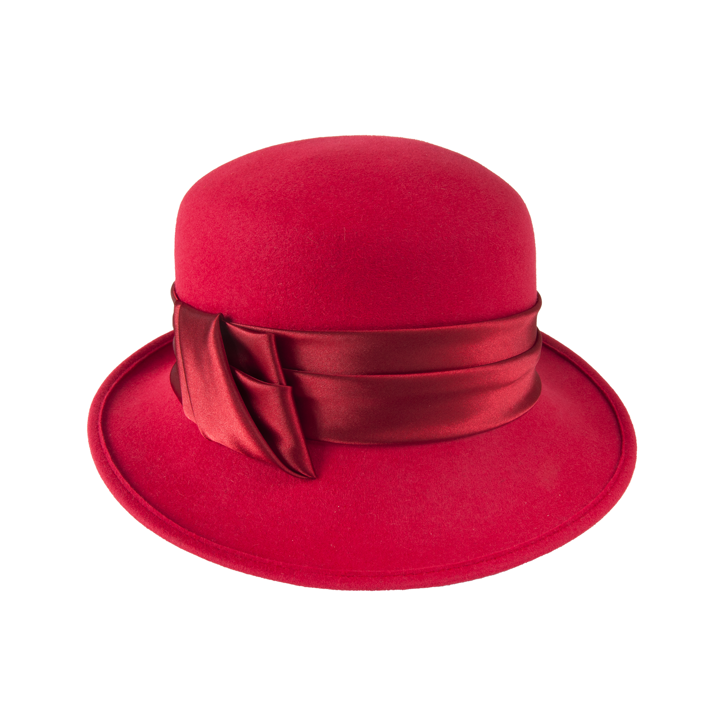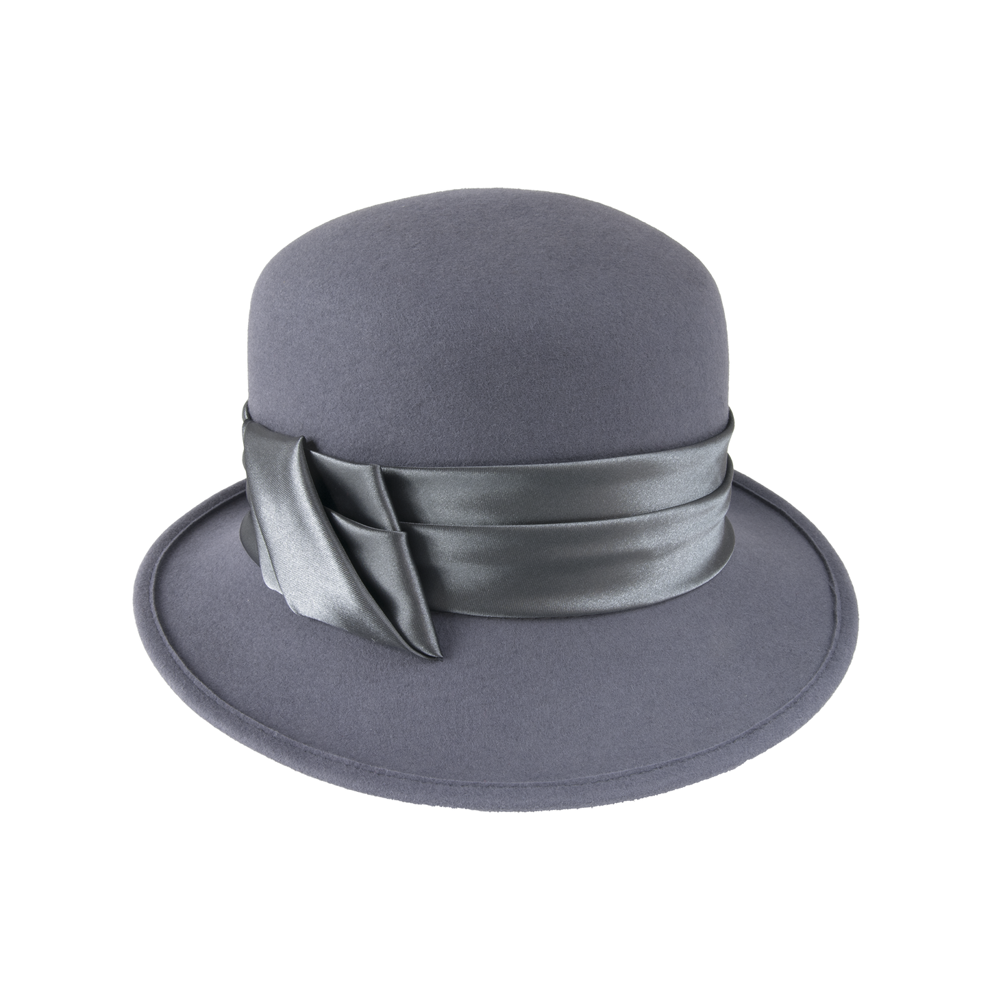 Ladies felt hat with the stretch sweatband. The hat is trimmed with satin ribbon.