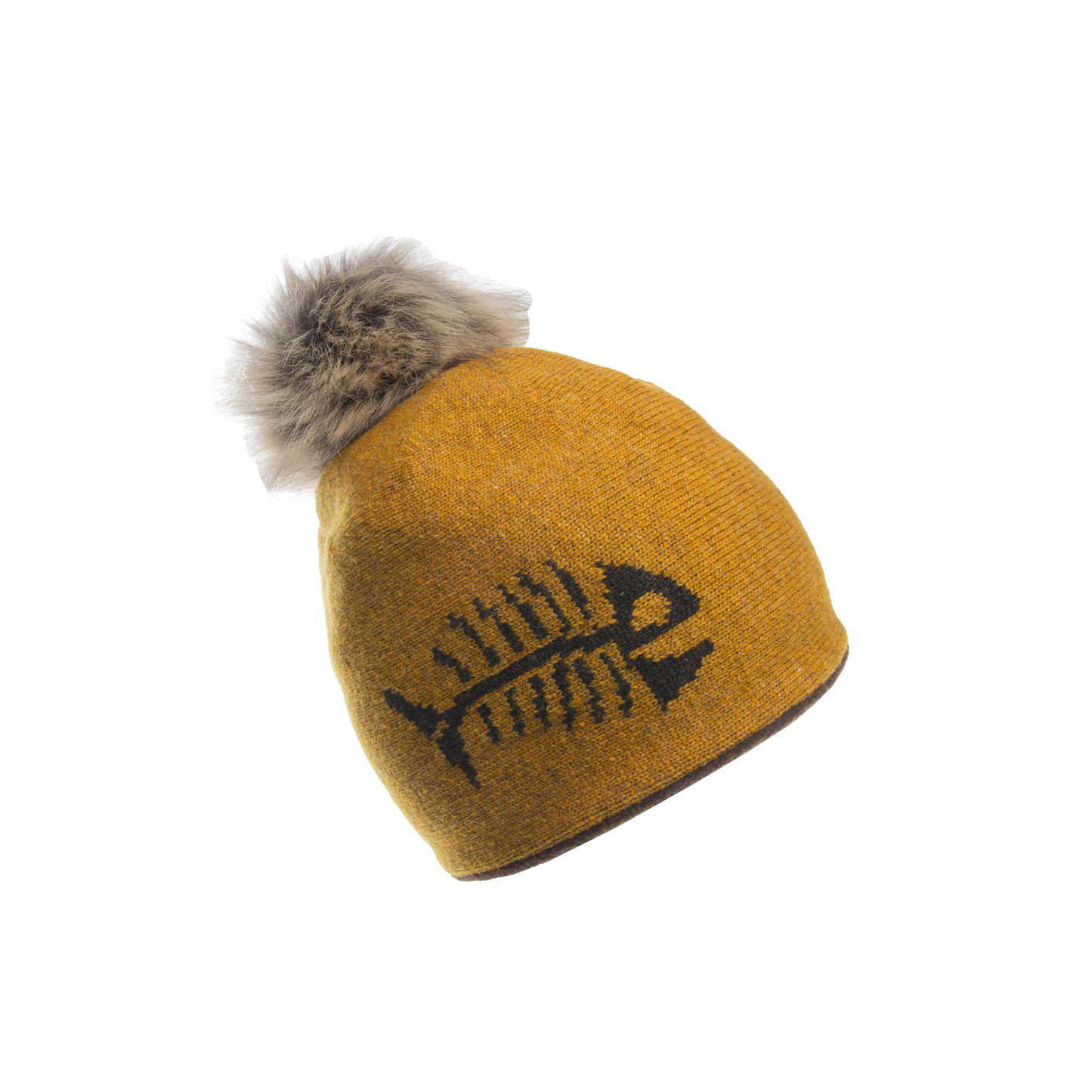 Cap featuring fish motif decorated with big pompon with fleece lining.