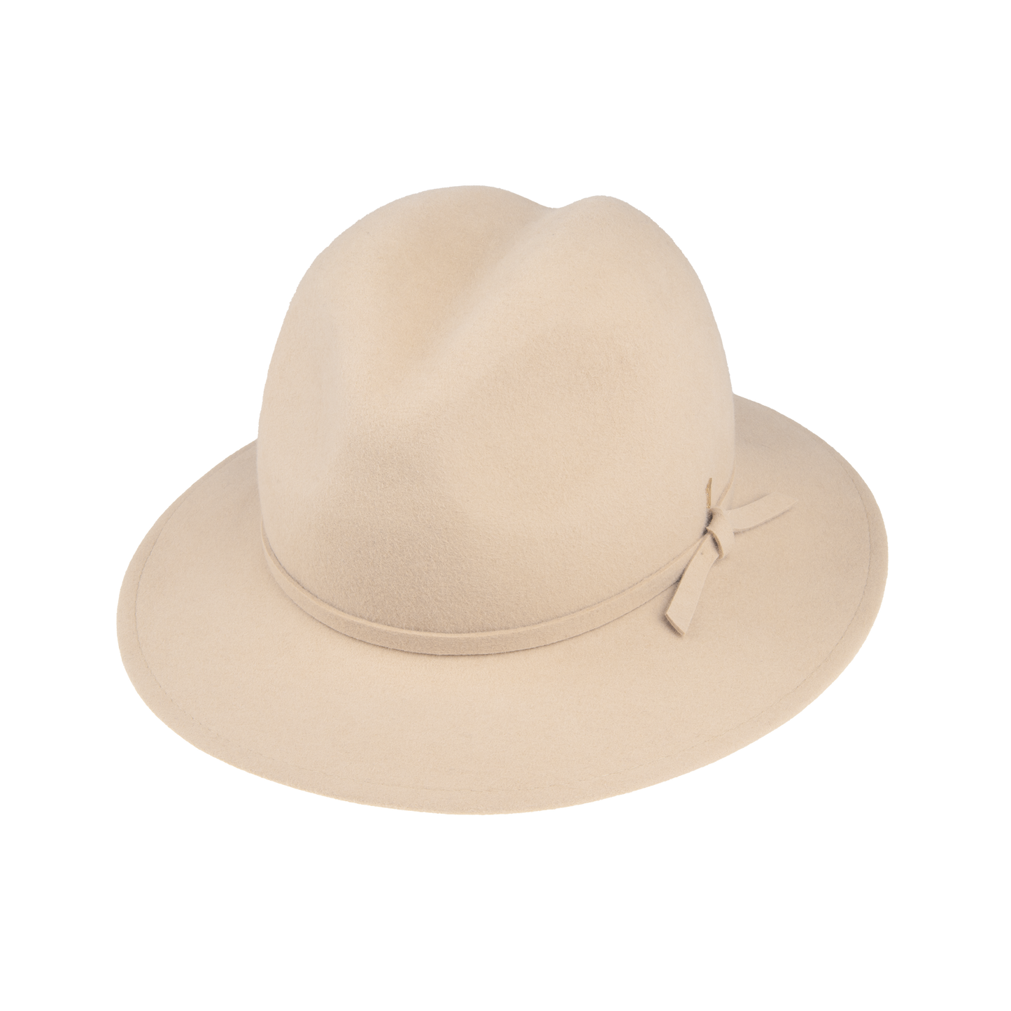 The Fedora Bella women's casual hat is one of the most popular hats among our customers because of its easy combinability with elegantly casual outfits. Decorated with a felt band in the same colour shade, the hat has a brim width of 6-6,5 cm and is equipped with an elastic sweatband.