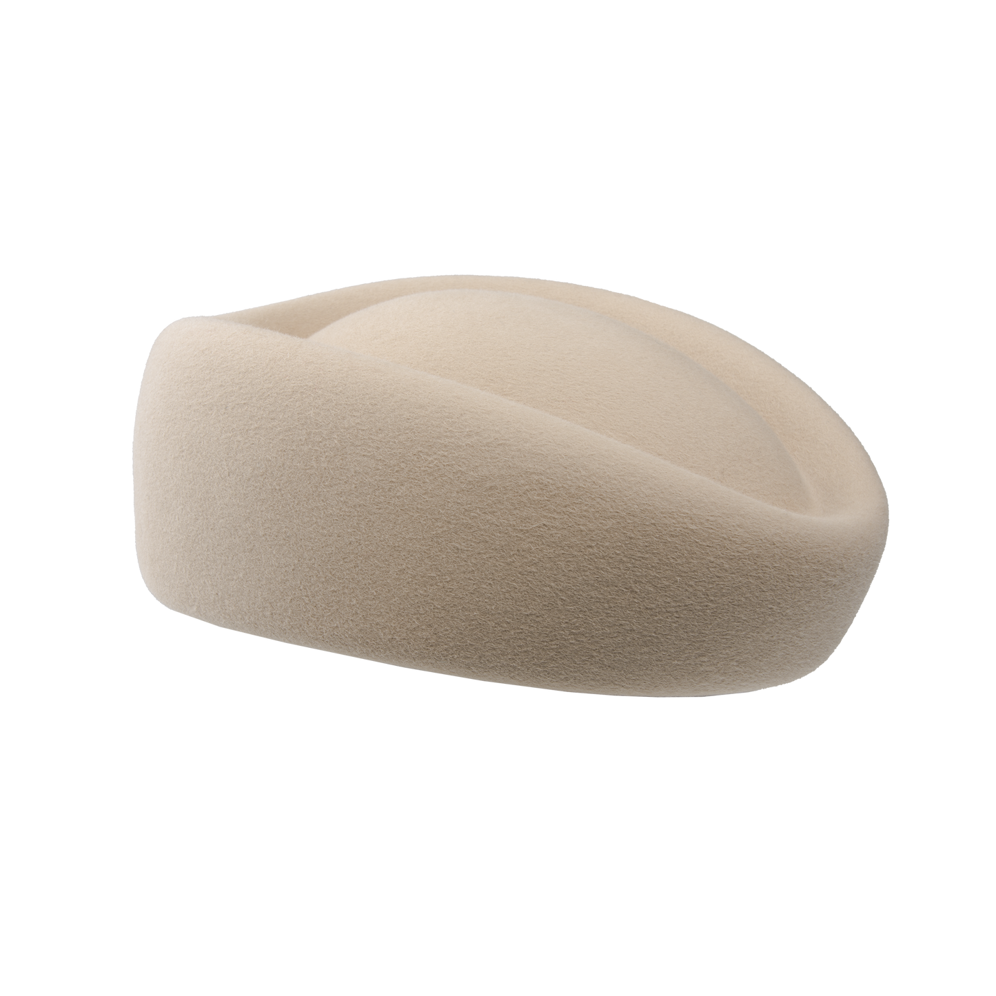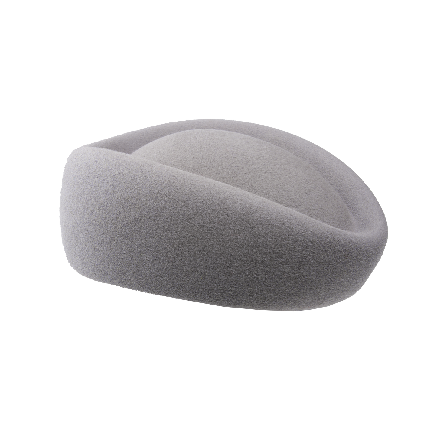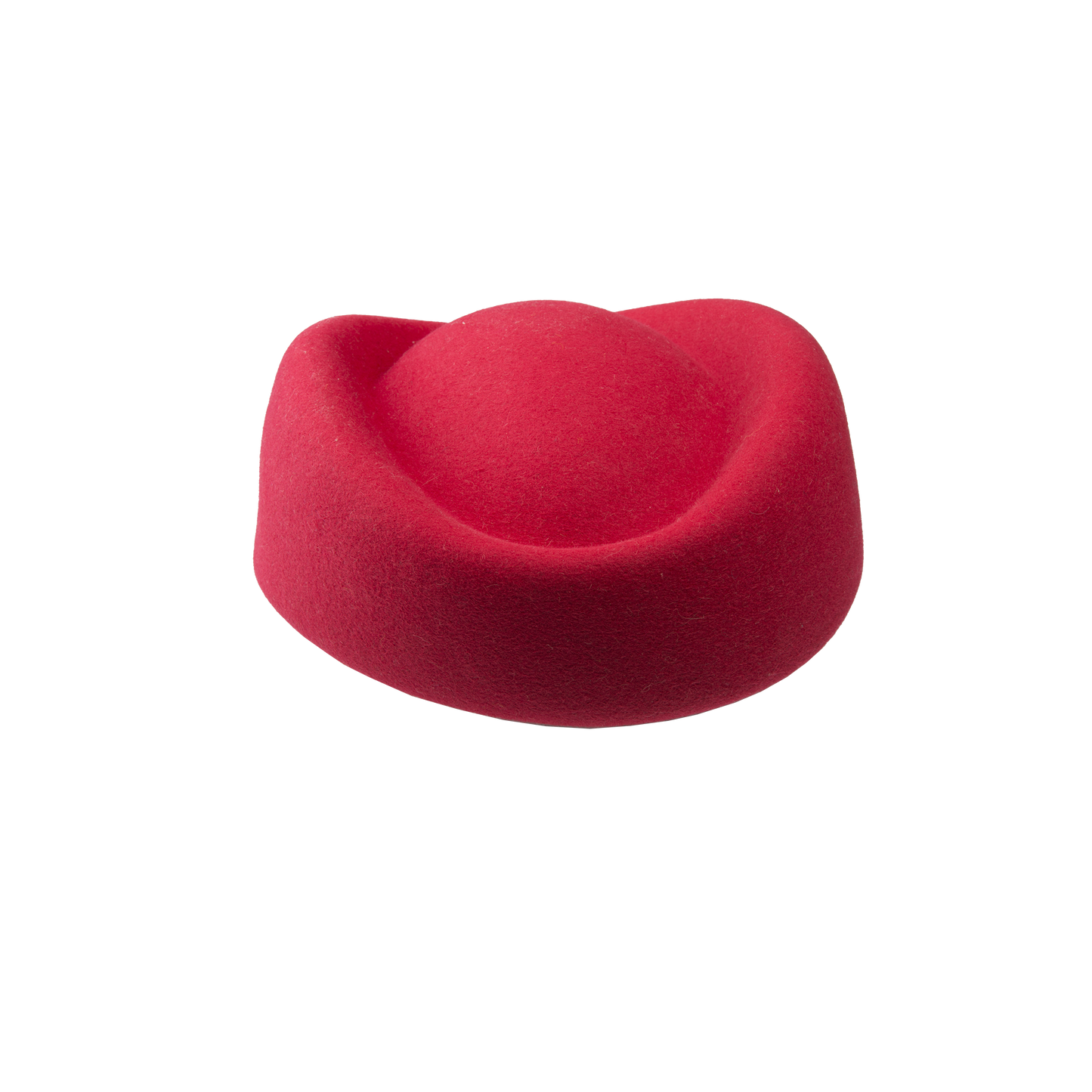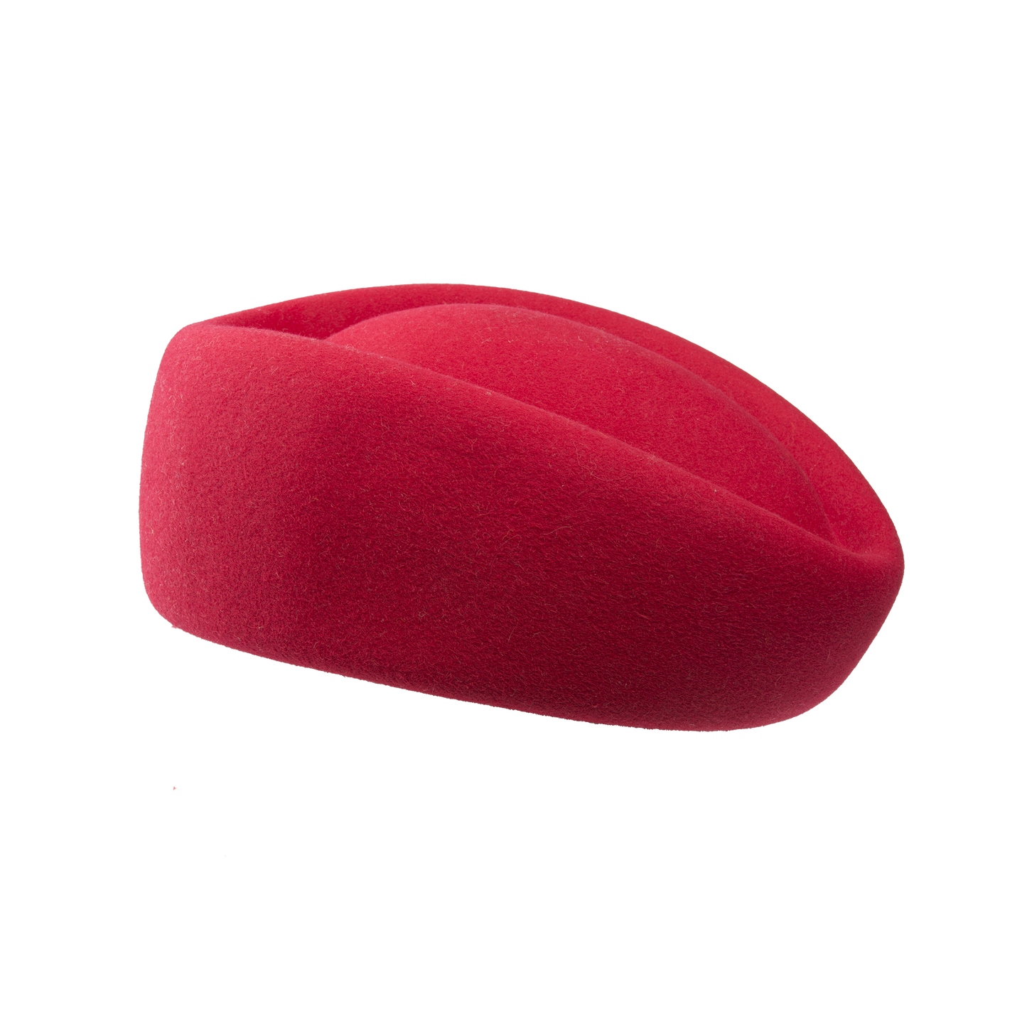 Ladies felt air hostess cap trimmed with crease. The hat has the stretch sweat band.