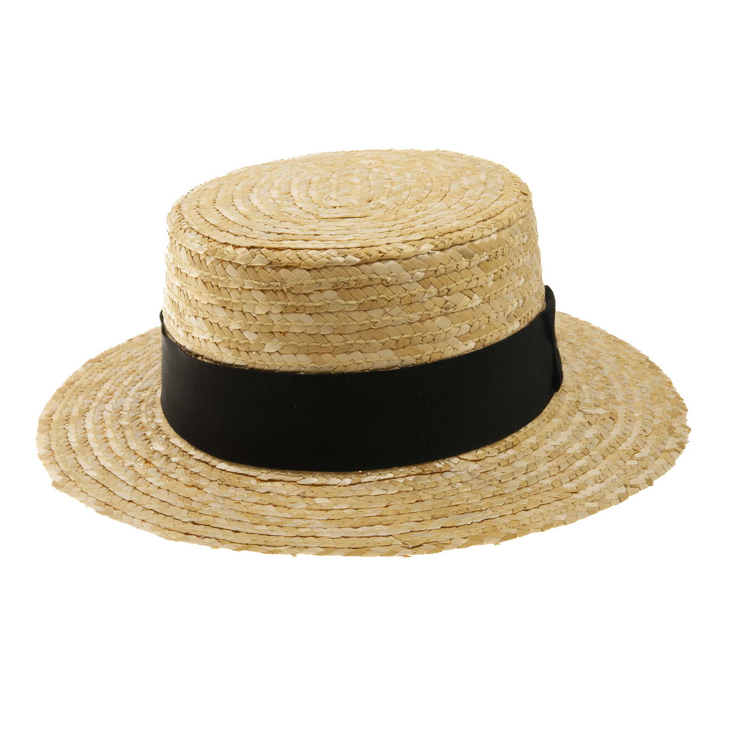 Slaměný klobouk "žirarďák" zdobený černou kloboukovou stuhou. Klobouk je vybaven strečovým potním páskem. Šířka krempy 5,5 - 6 cm.