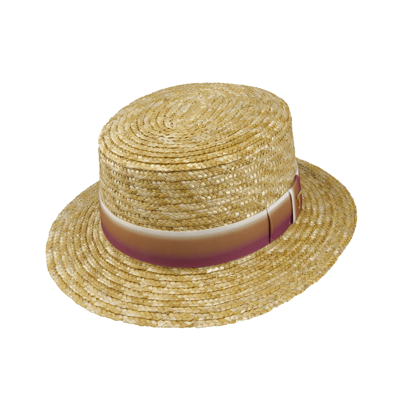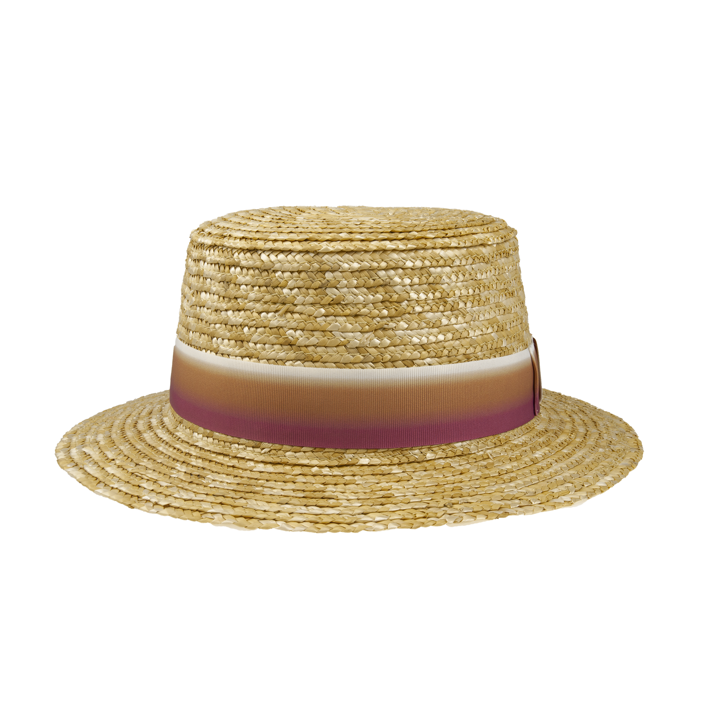 Oblíbený tvar letního klobouku Boater Sense Colore ze 100% slámy doplňuje výrazná duhová stuha s blankytným nádechem. Zdobení dodává jinak minimalistickému tvaru klobouku svěží nádech letních dní a nepochybně se pro Vás stane skvělým doplňkem nejen na dovolenou.