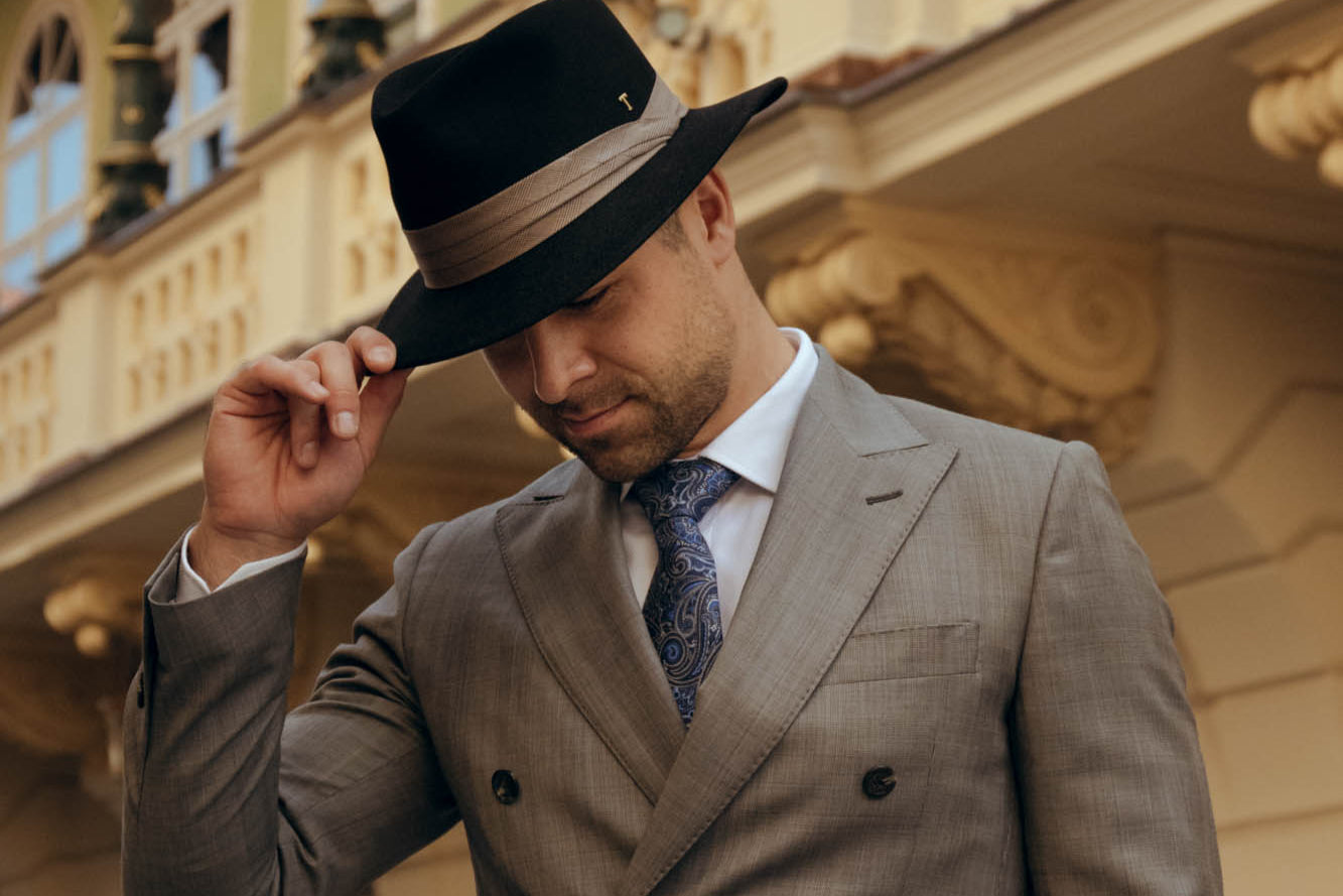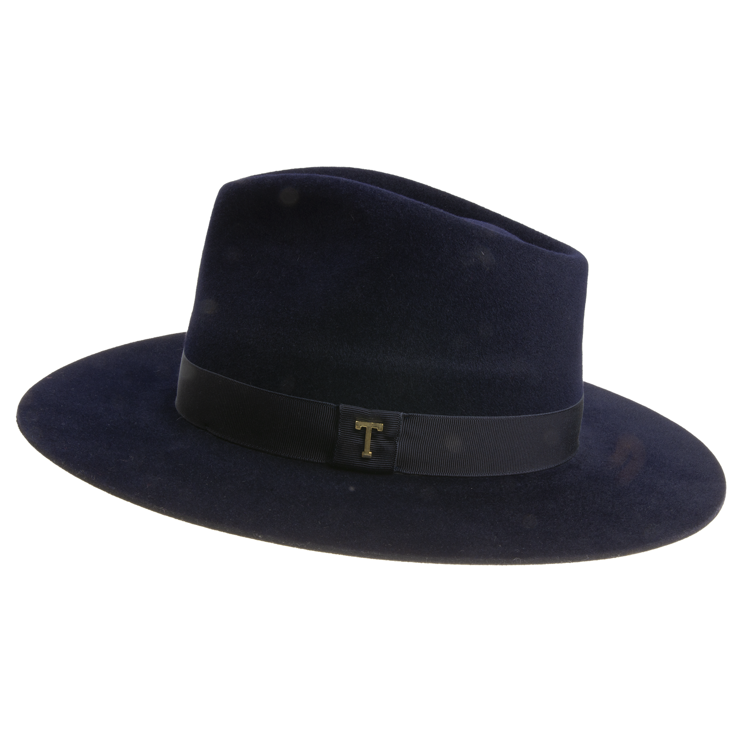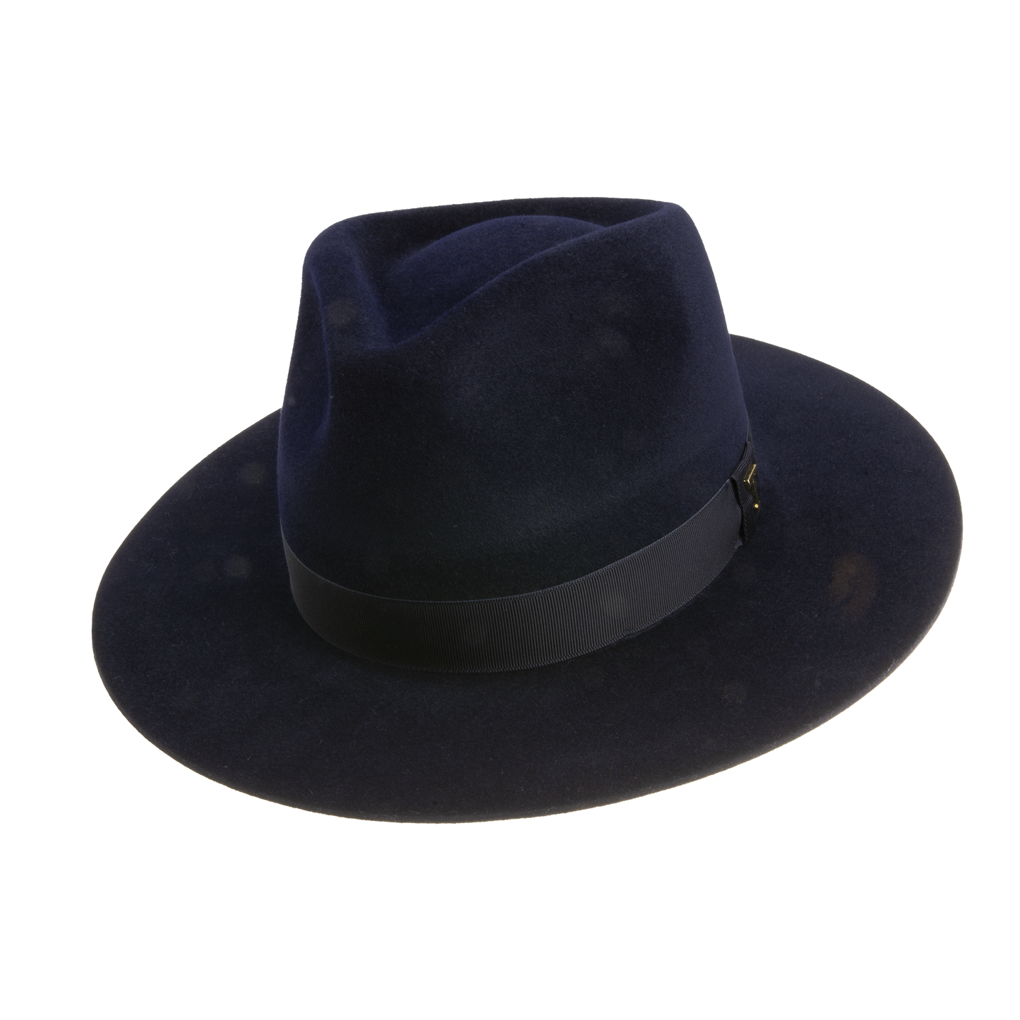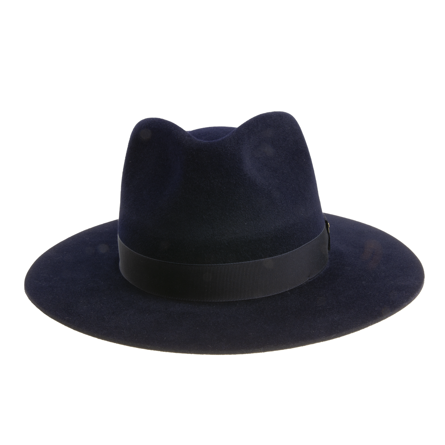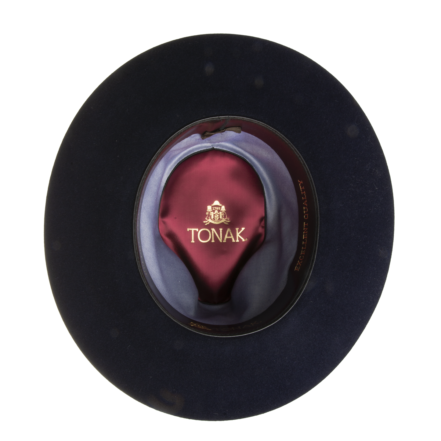 Fedora Uomo Spirito je krásný elegantní klobouk, který pozvedne outfit každého gentlemana. Temně modrá barva se stuhou tón v tónu a nepřehlédnutelný pin v podobě písmene T dělá z klobouku luxusní módní doplněk. Klobouk má krempu širokou 7,5 cm.