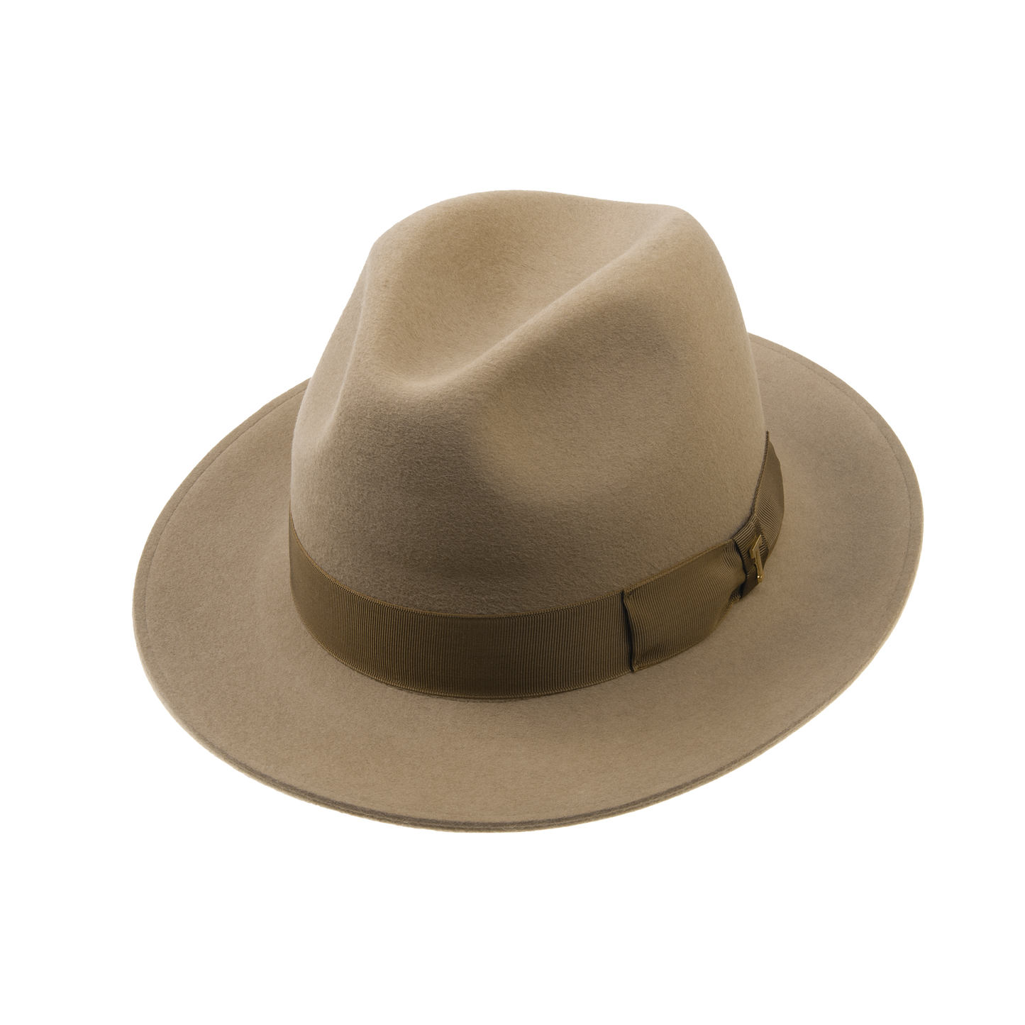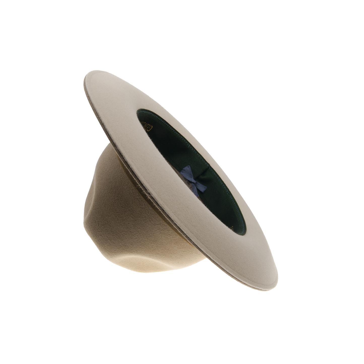 Luxusní kombinovaný klobouk v odlišném barevném provedení vnitří a vnější strany zdobený kloboukovou stuhou. Klobouk je vybaven strečovým potním páskem, šířka krempy 6-6,5 cm.