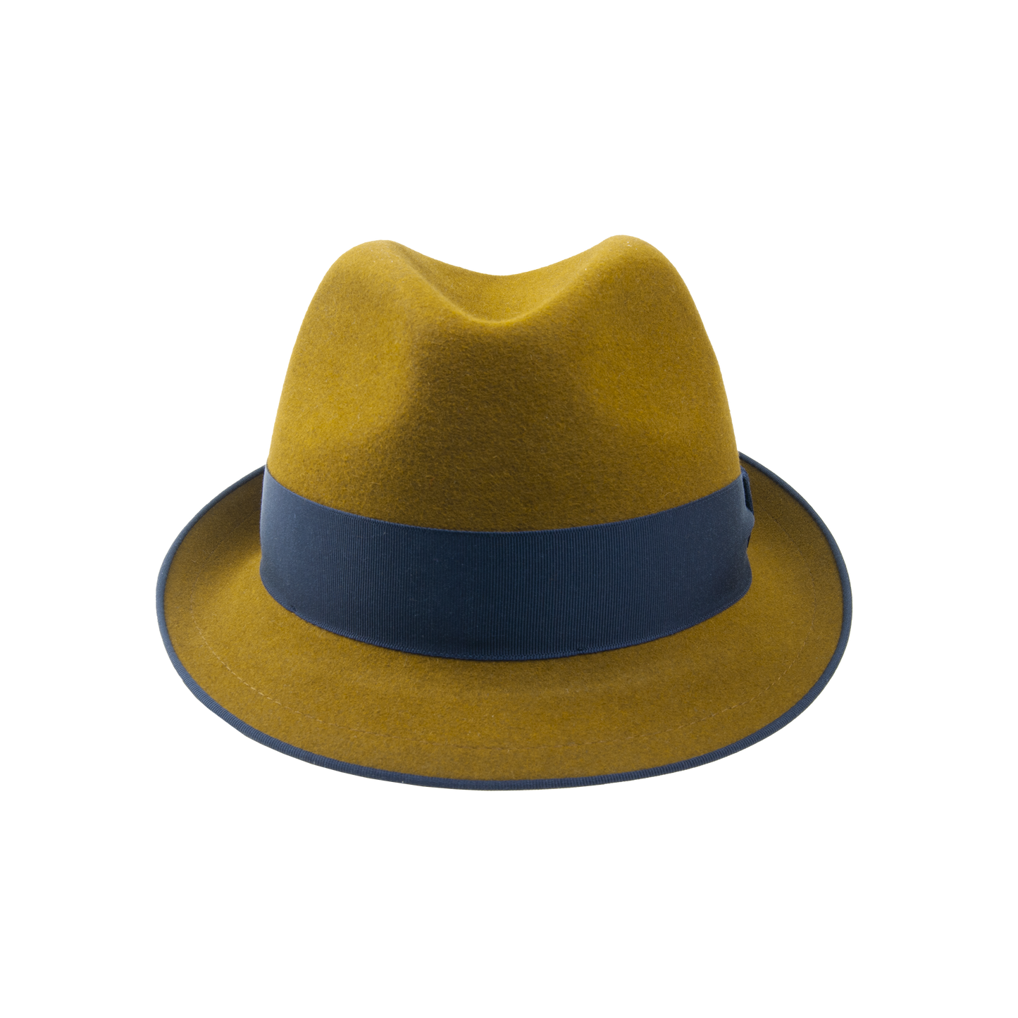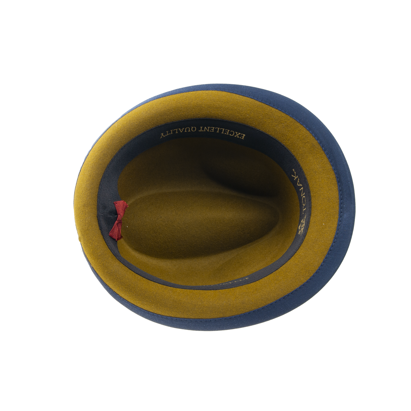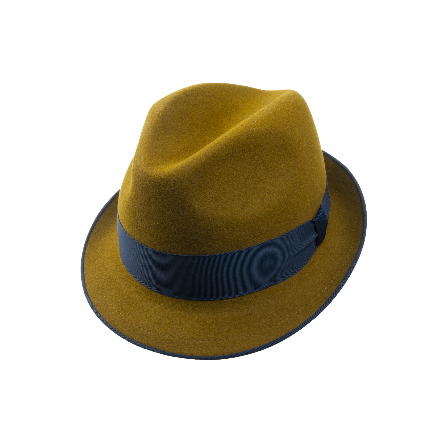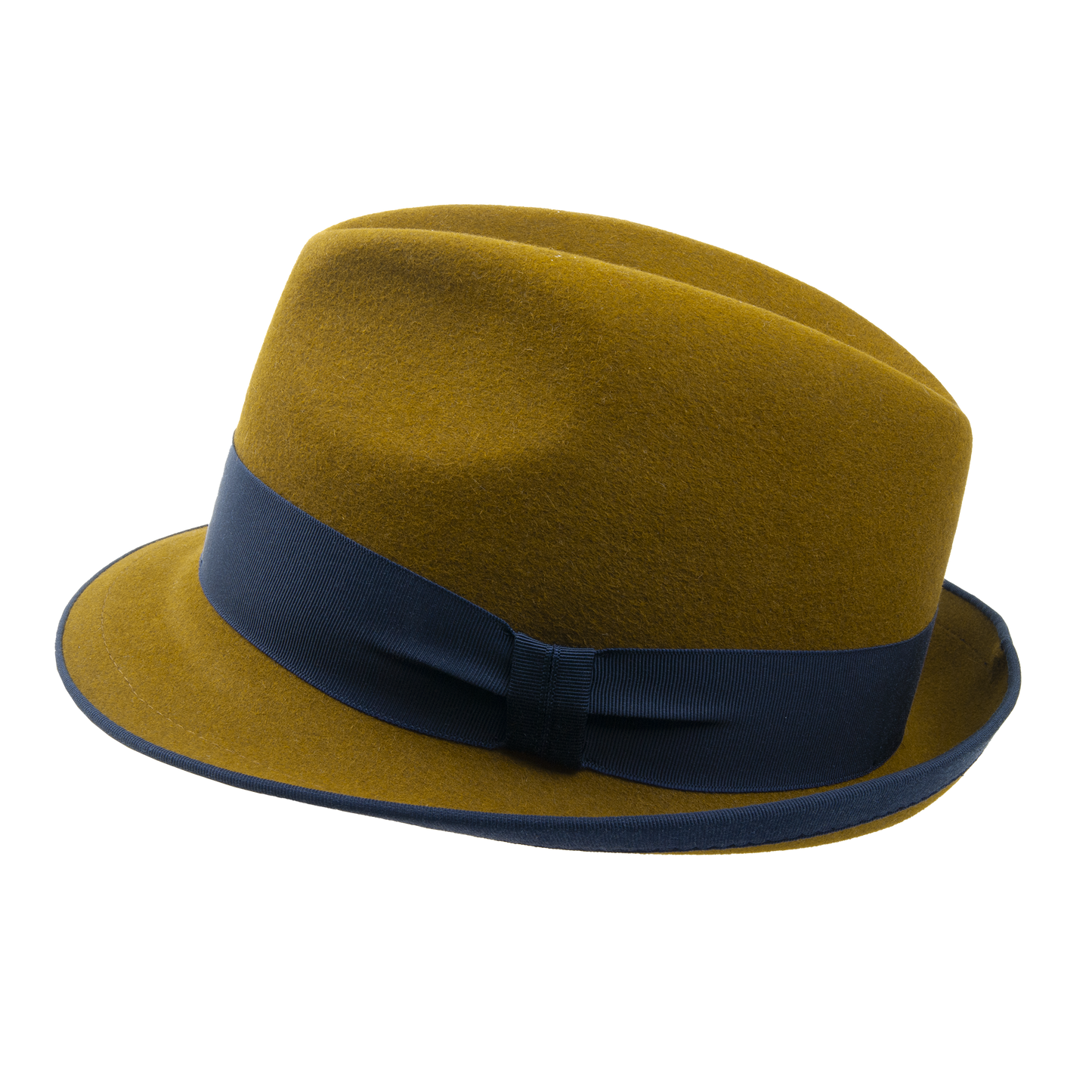 Plstěný klobouk se strečovým potním páskem zdobený kloboukovou stuhou.